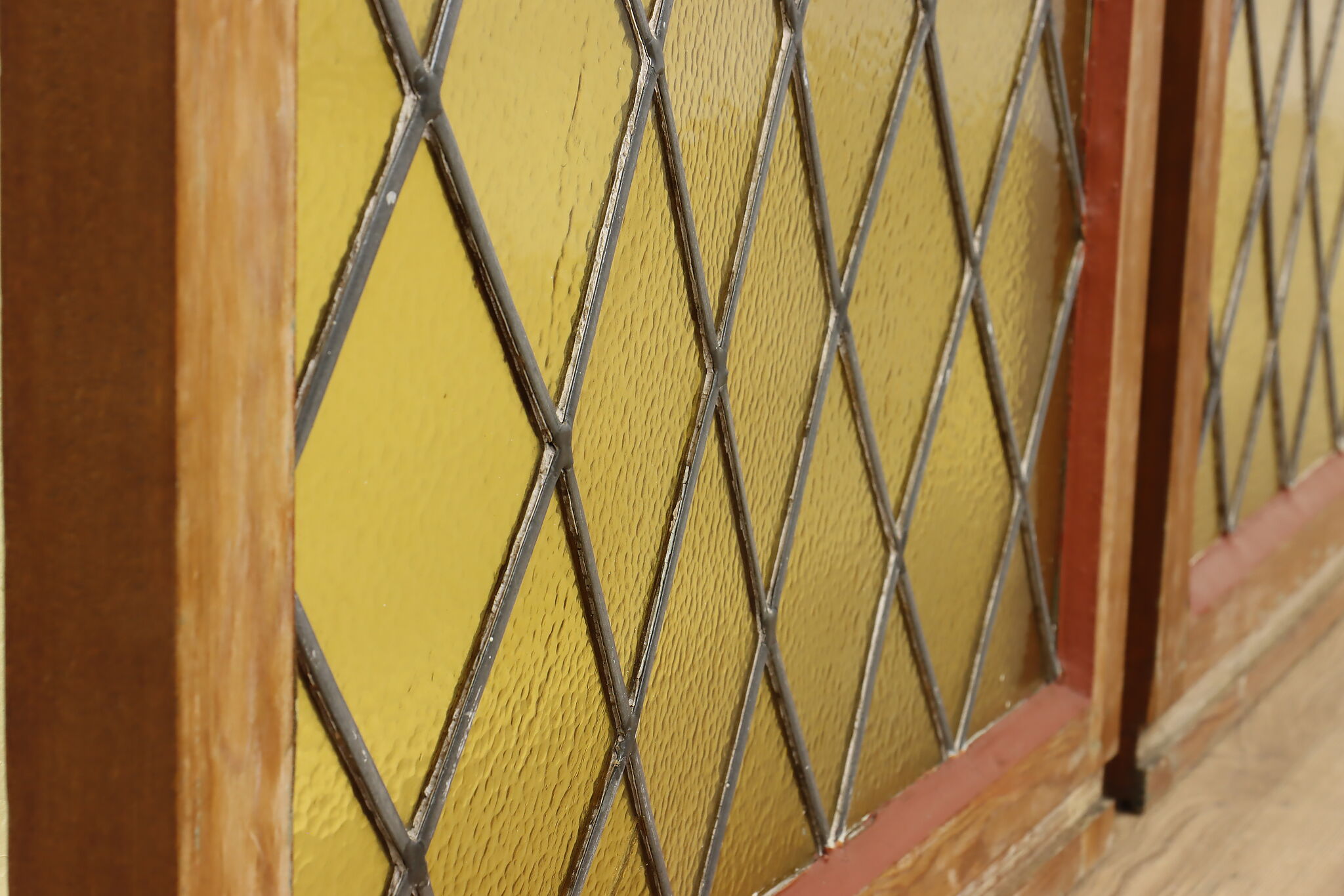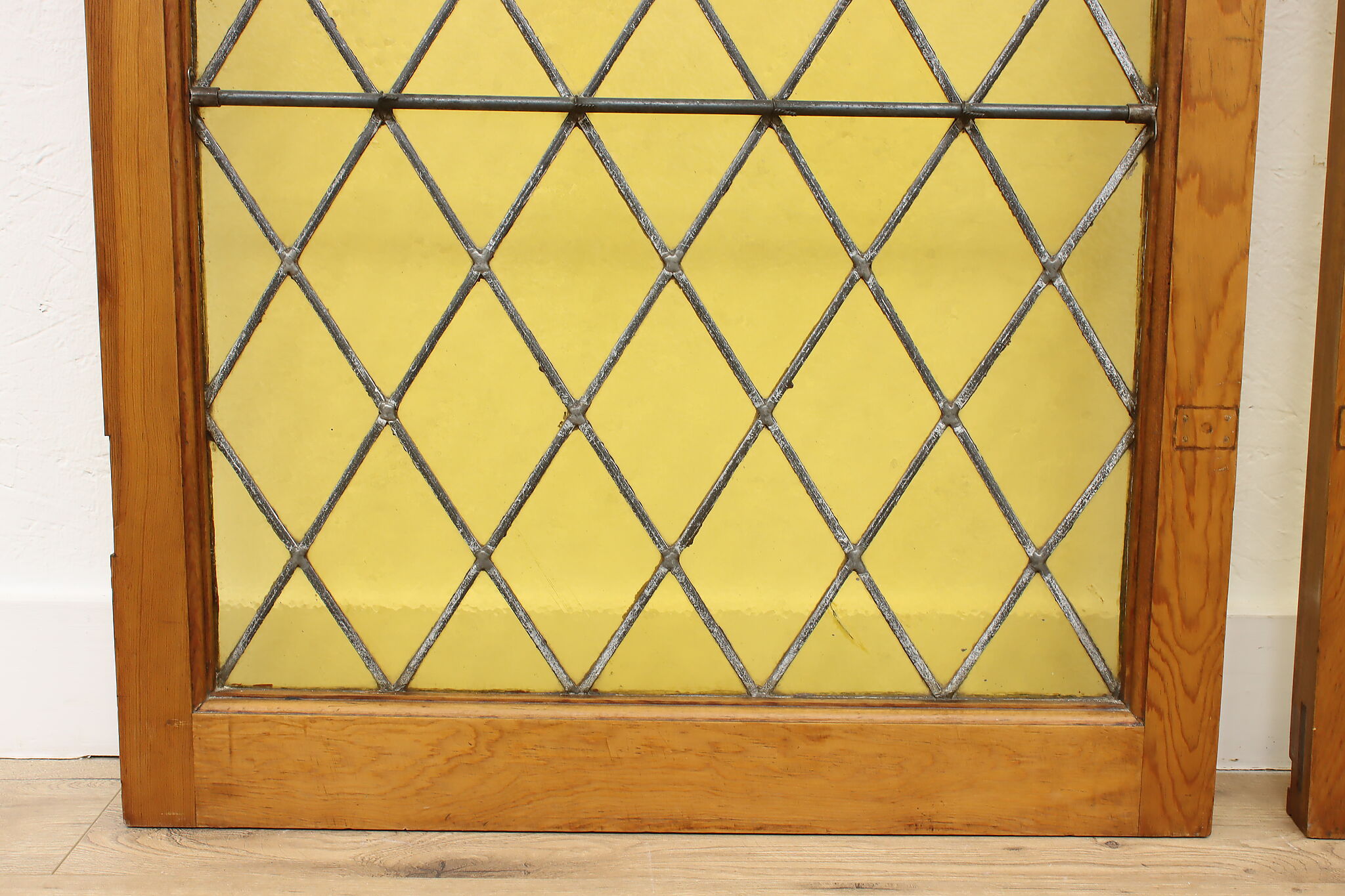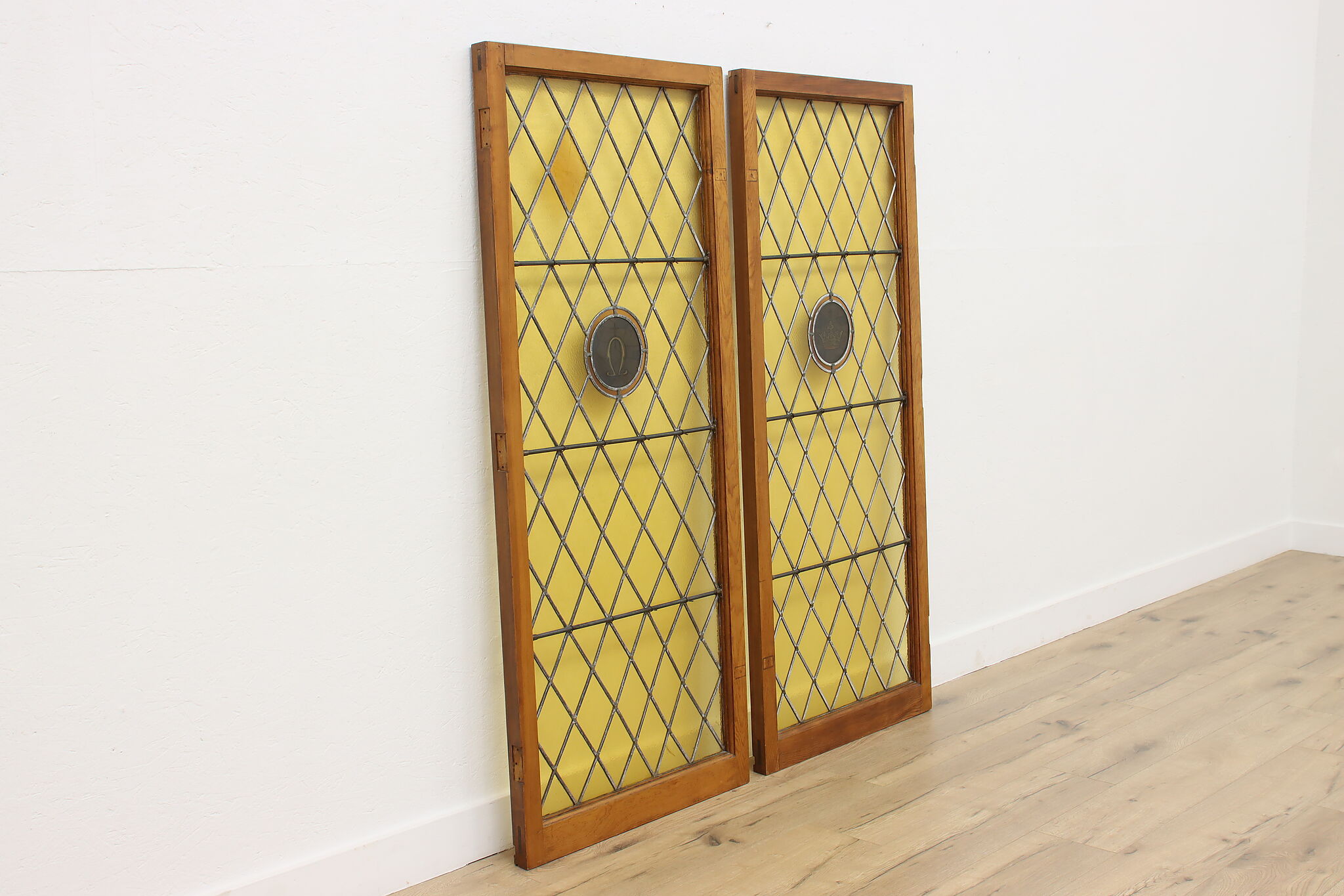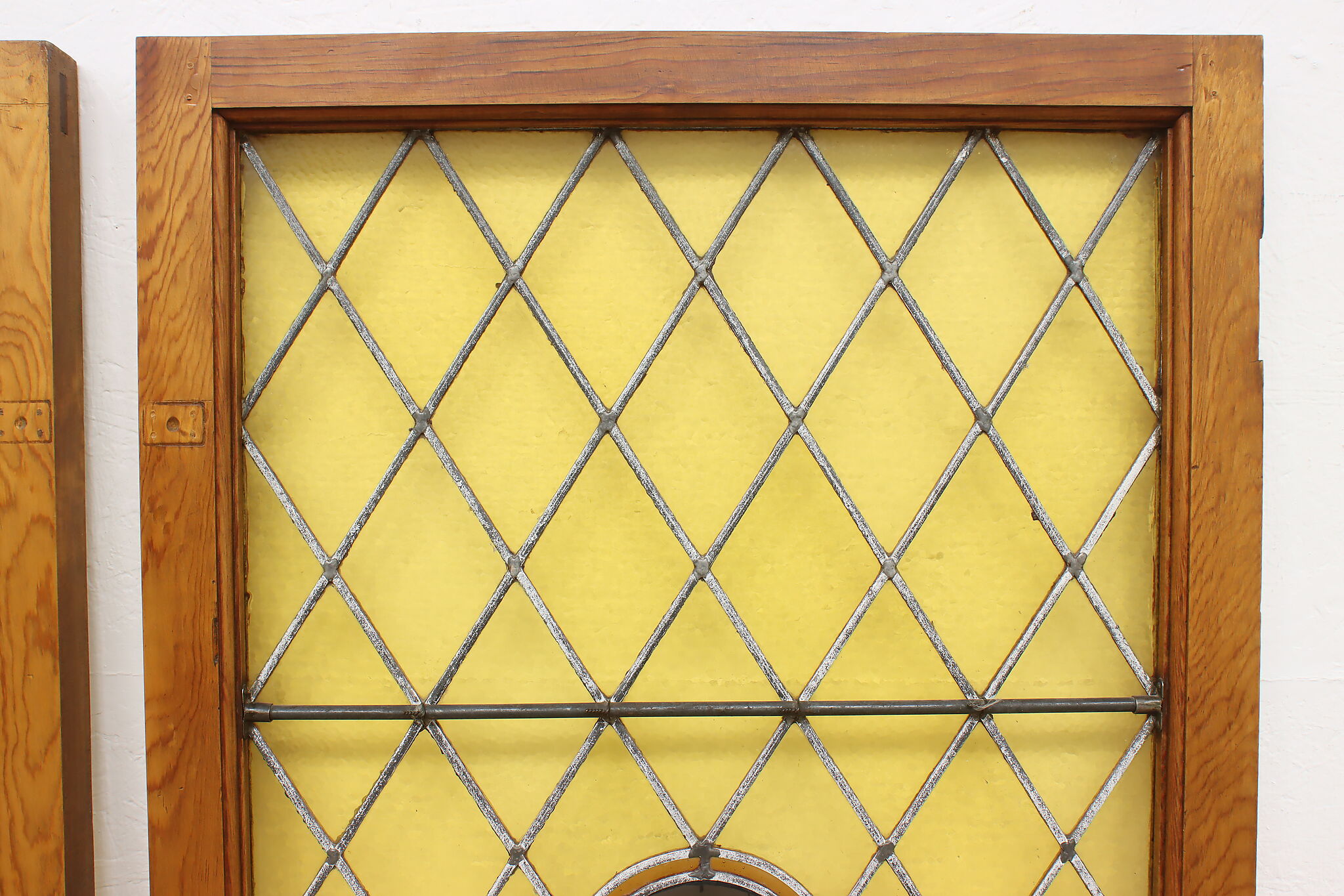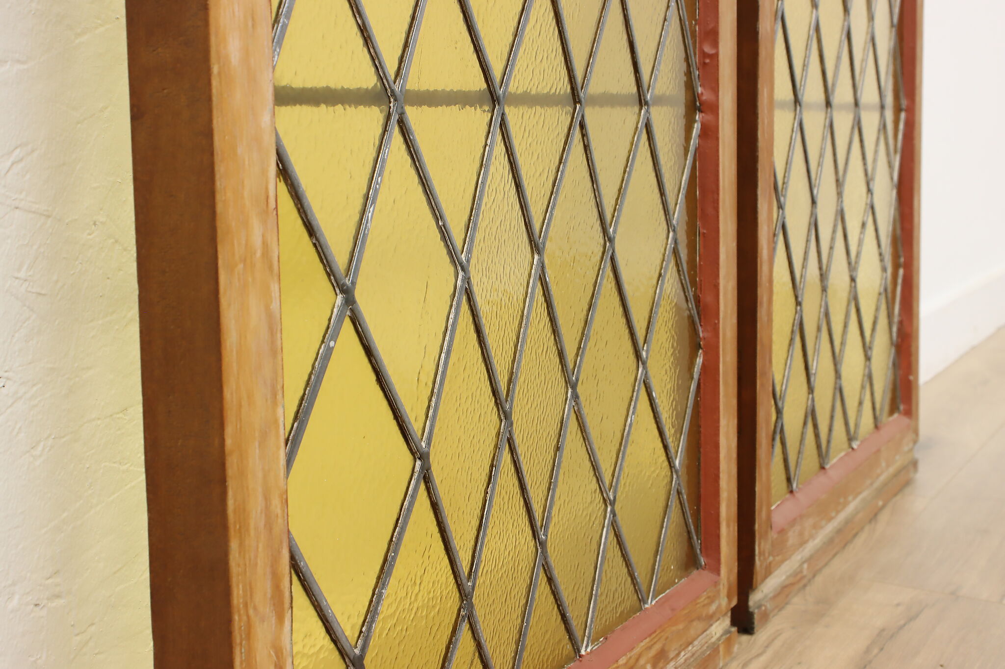 Salvaged from an Arts and Crafts period home, this pair of Craftsman windows or doors have beautiful textured hand leaded amber stained glass panes.