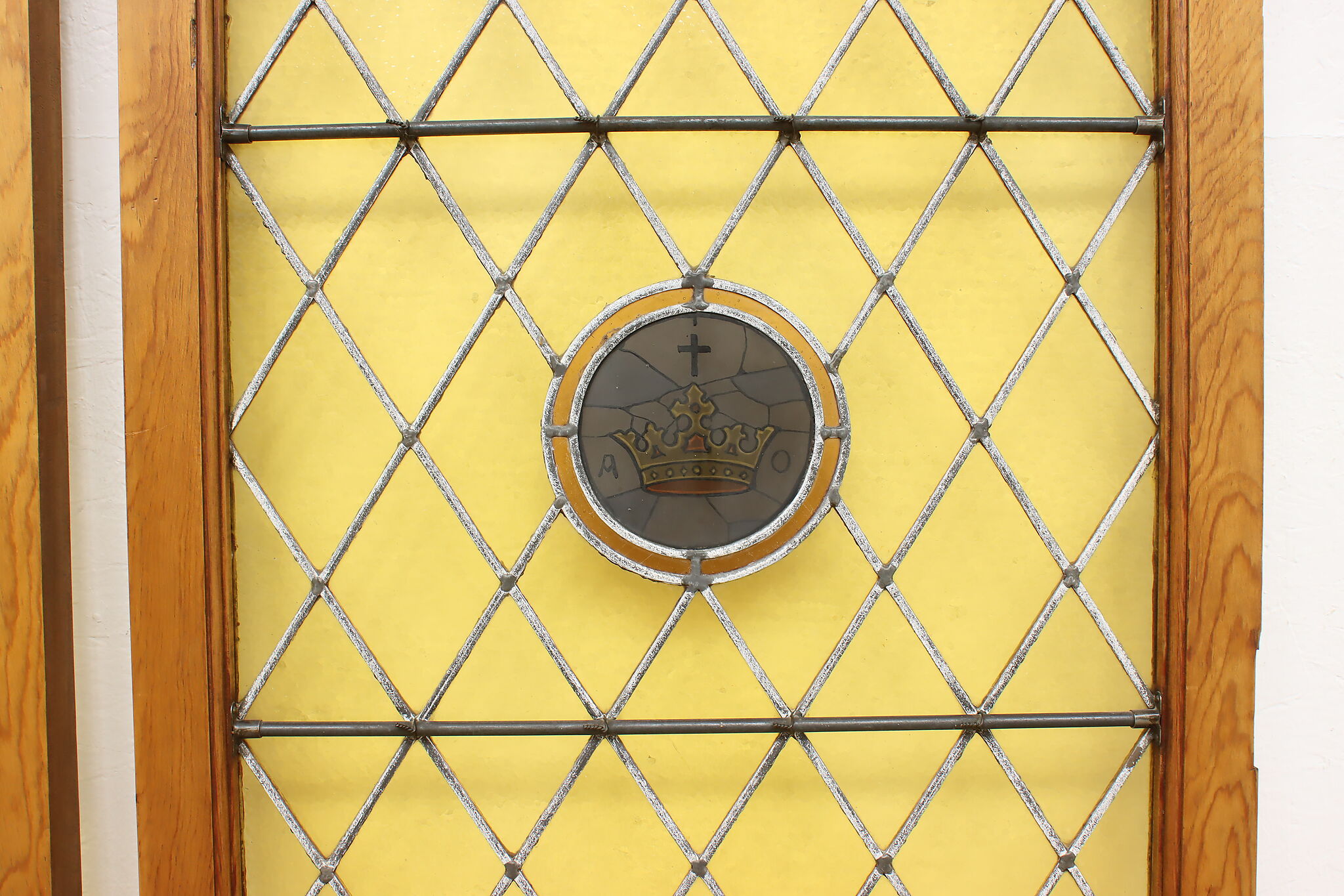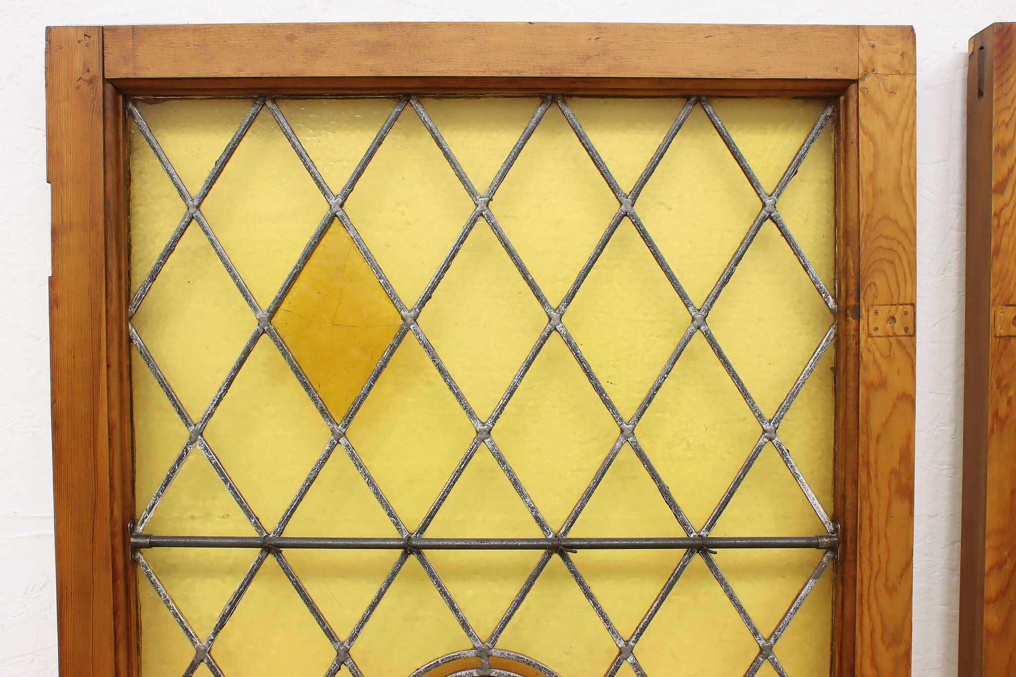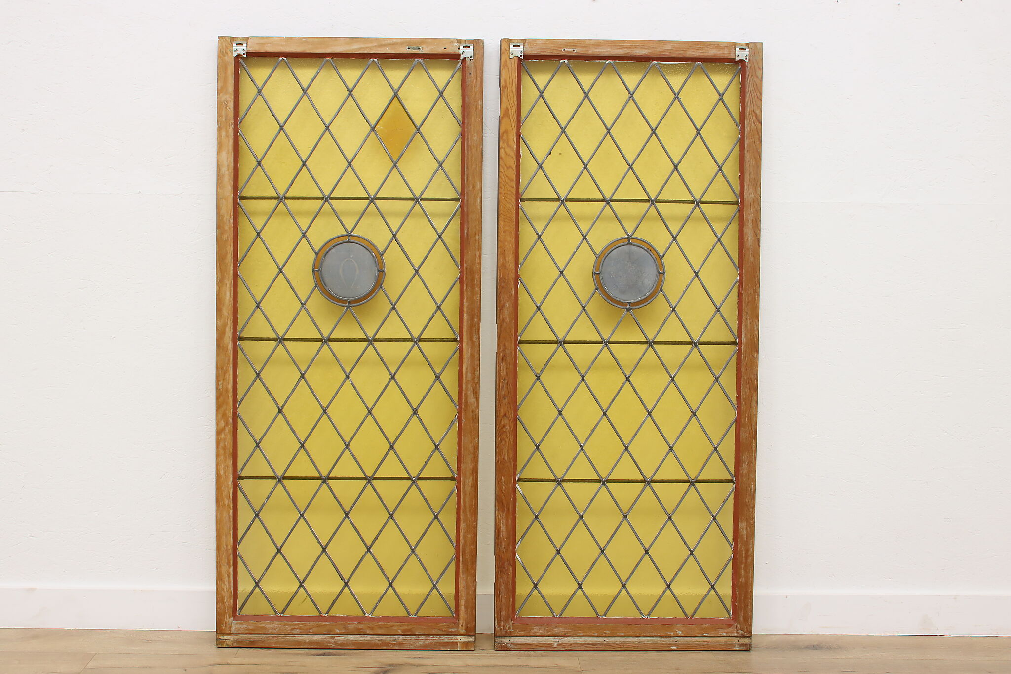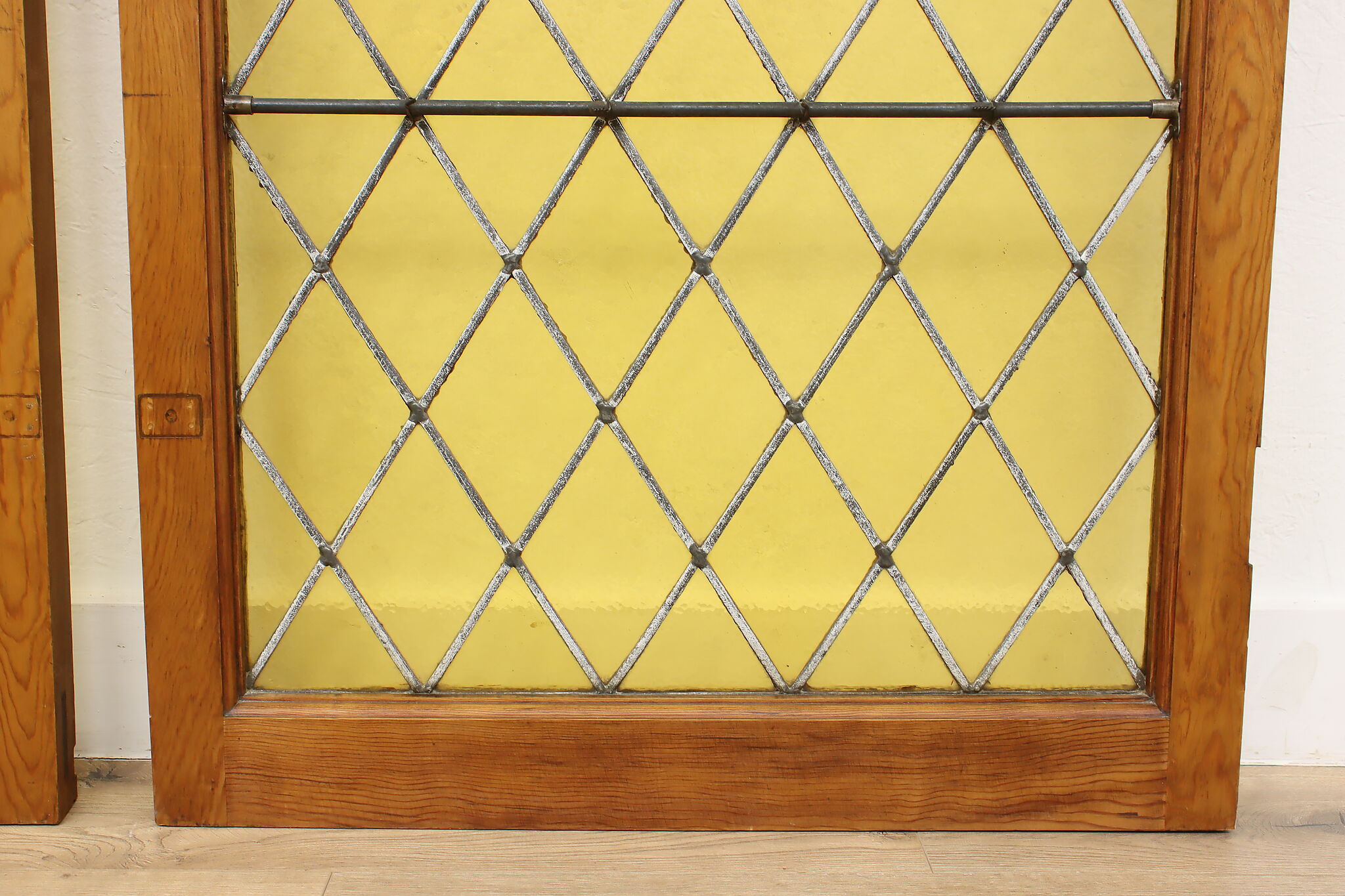 Salvaged from an Arts and Crafts period home, this pair of Craftsman windows or doors have beautiful textured hand leaded amber stained glass panes.