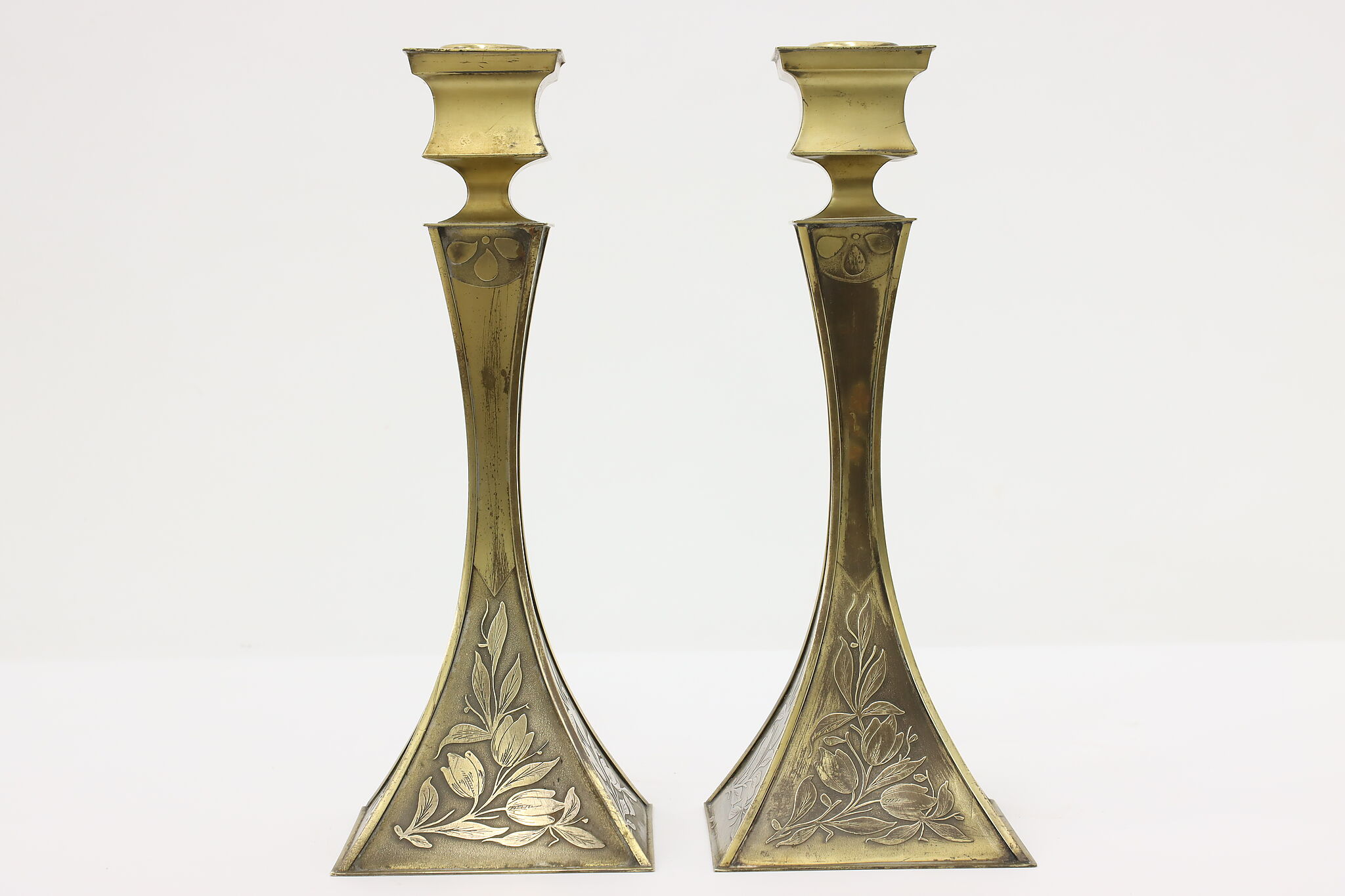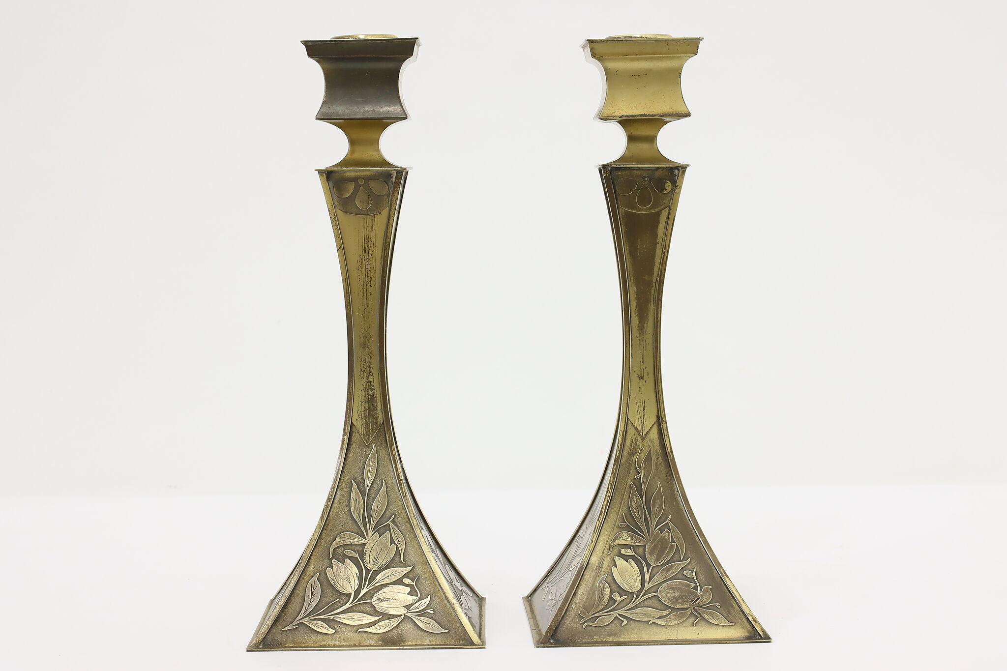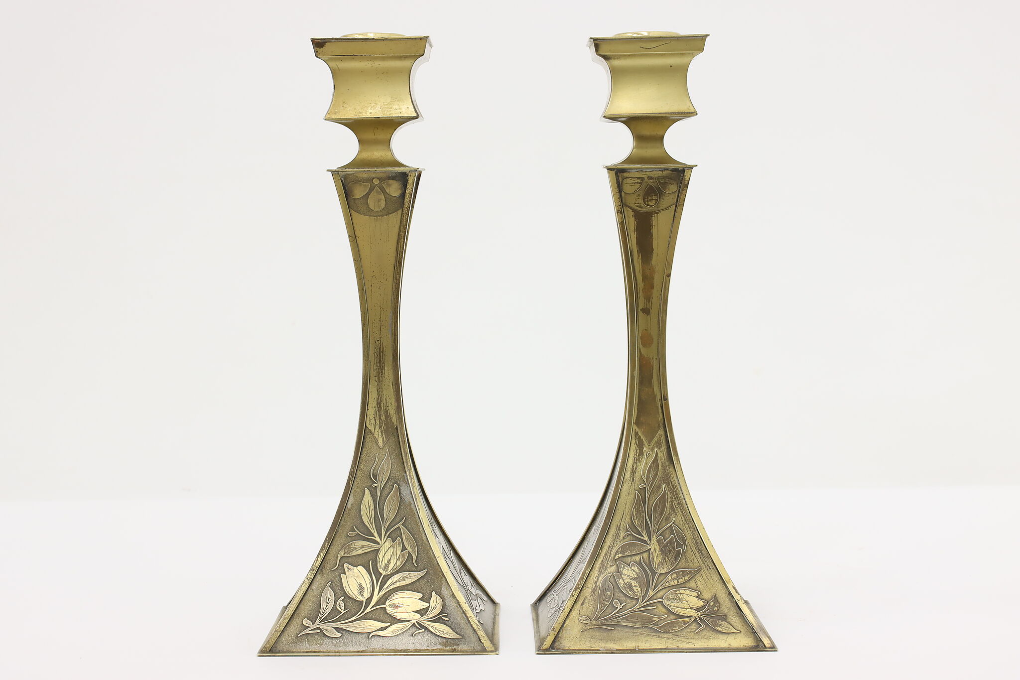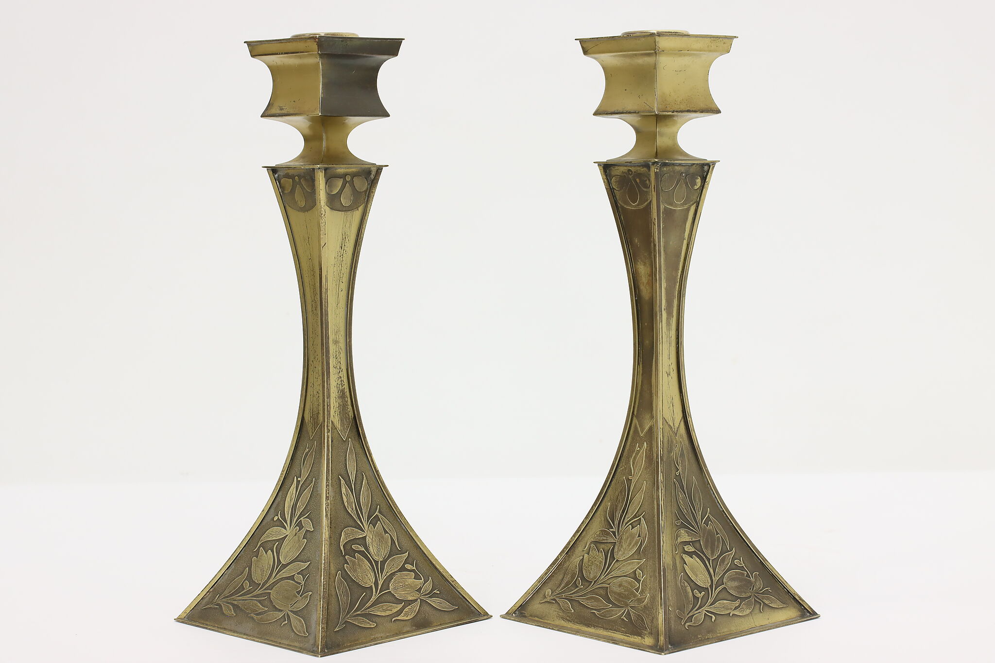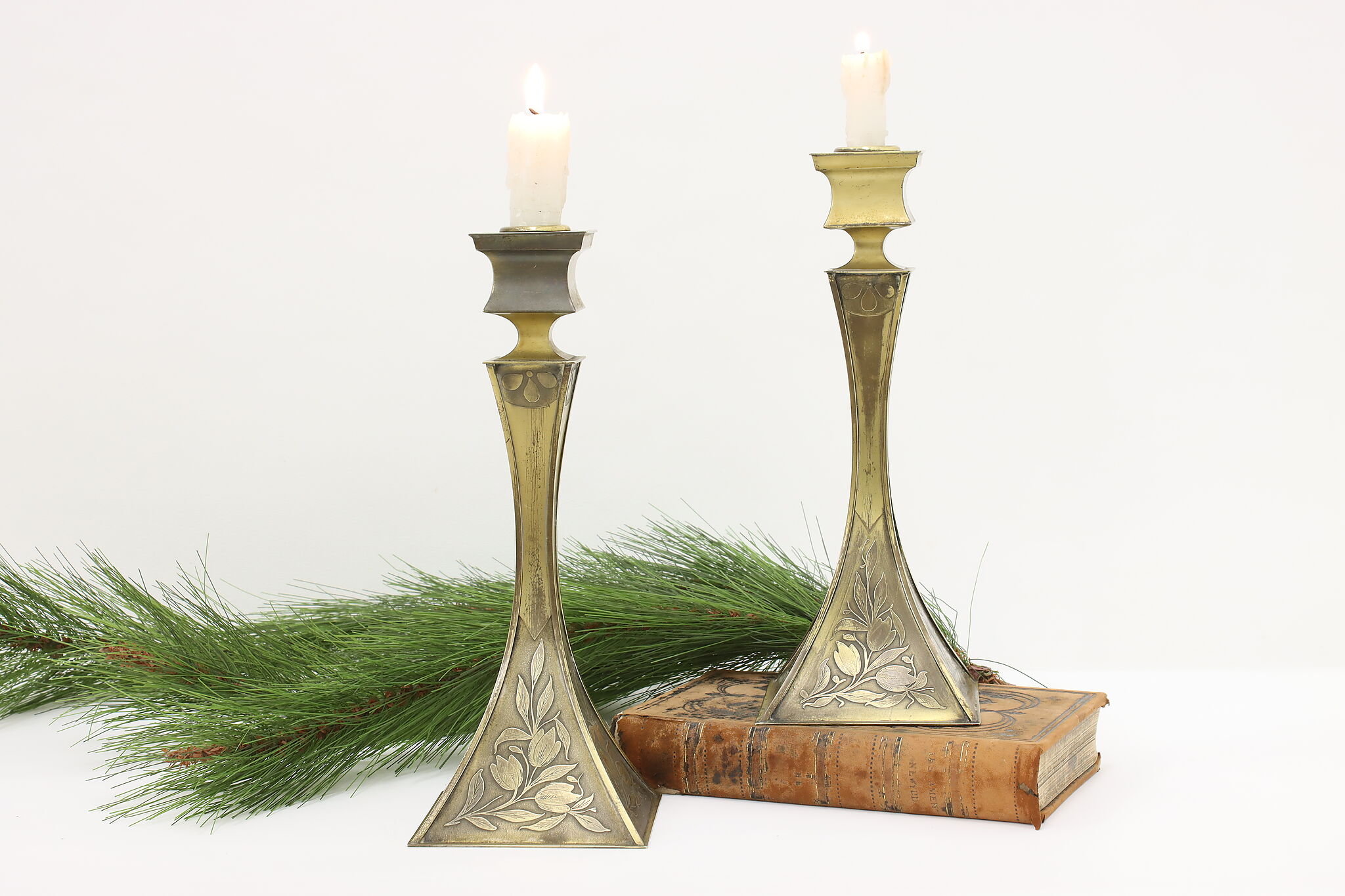 A fabulous pair of Art Nouveau candlesticks or candle holders would be beautiful on a fireplace mantel.