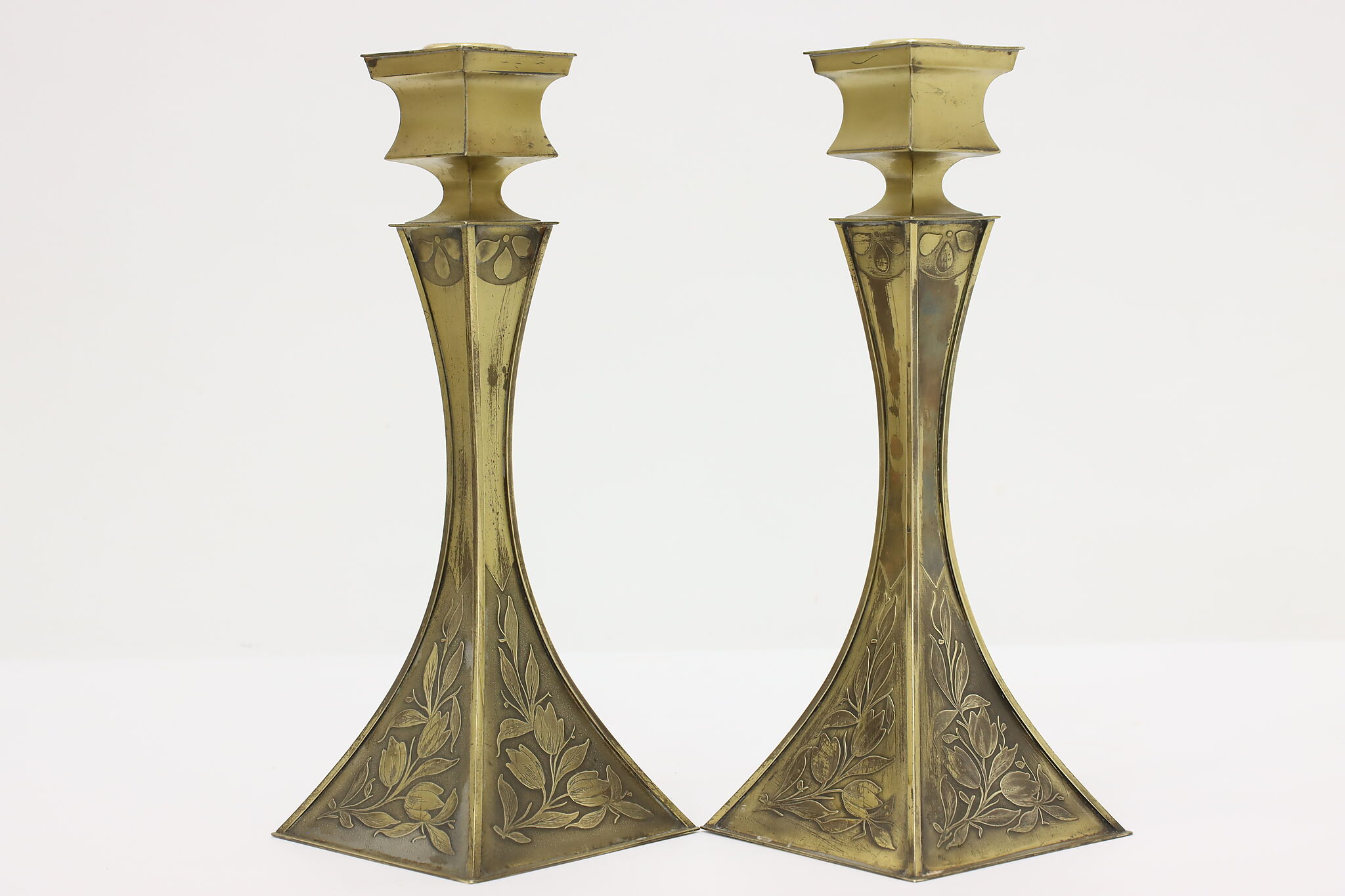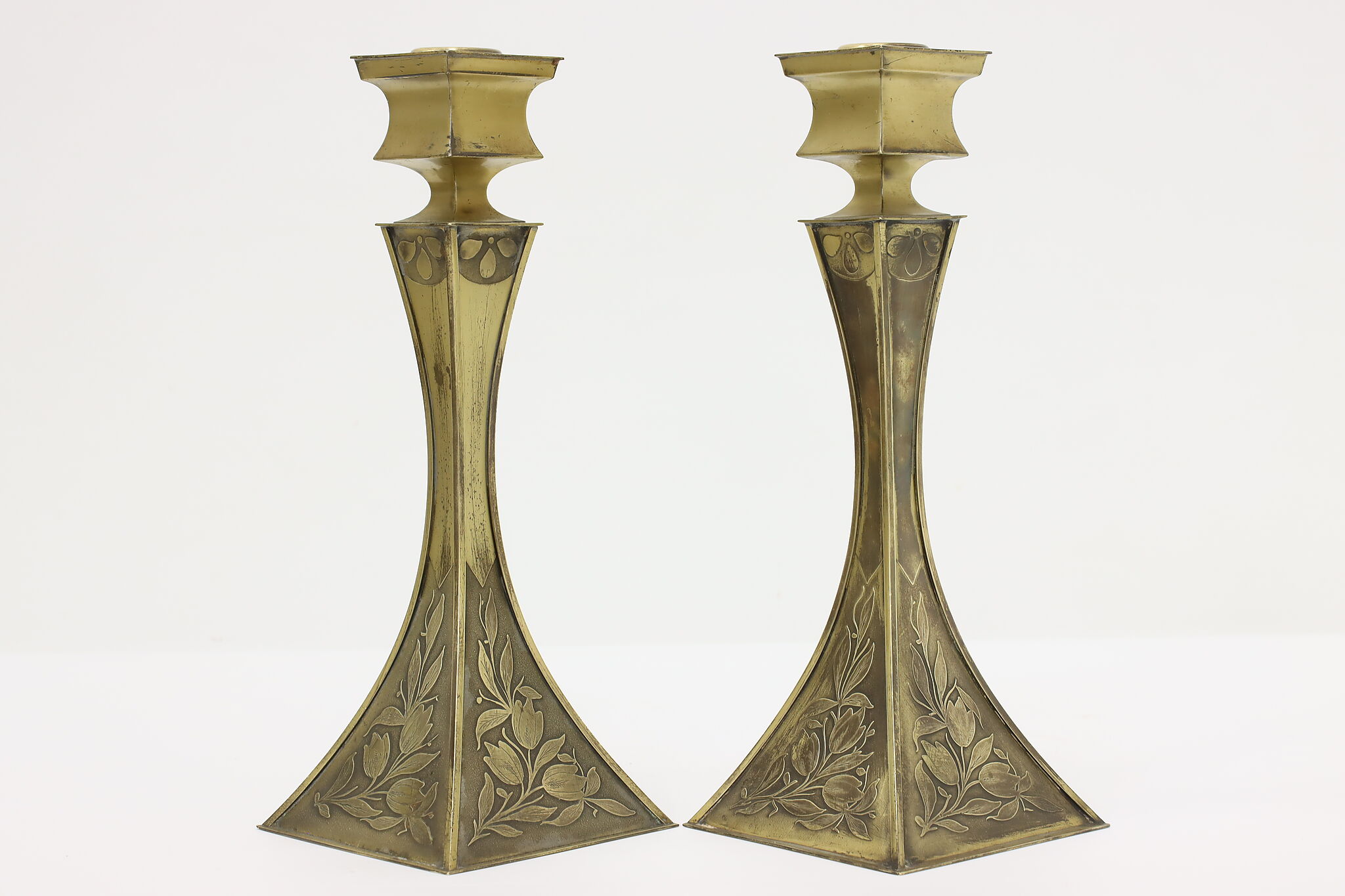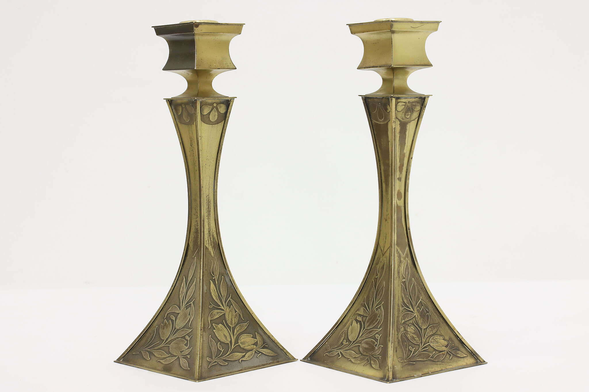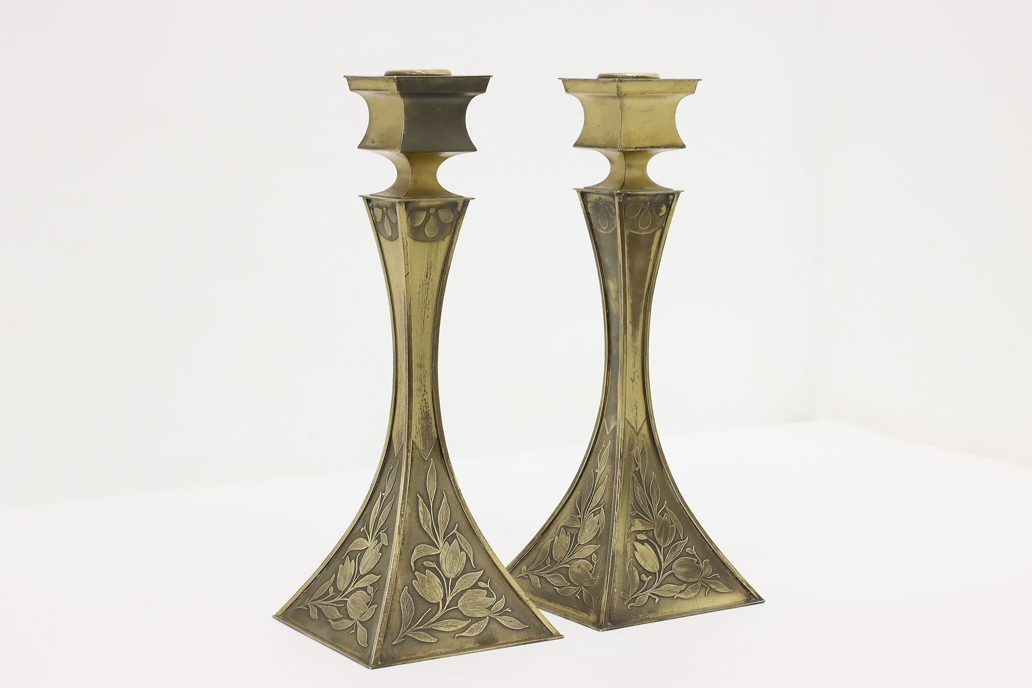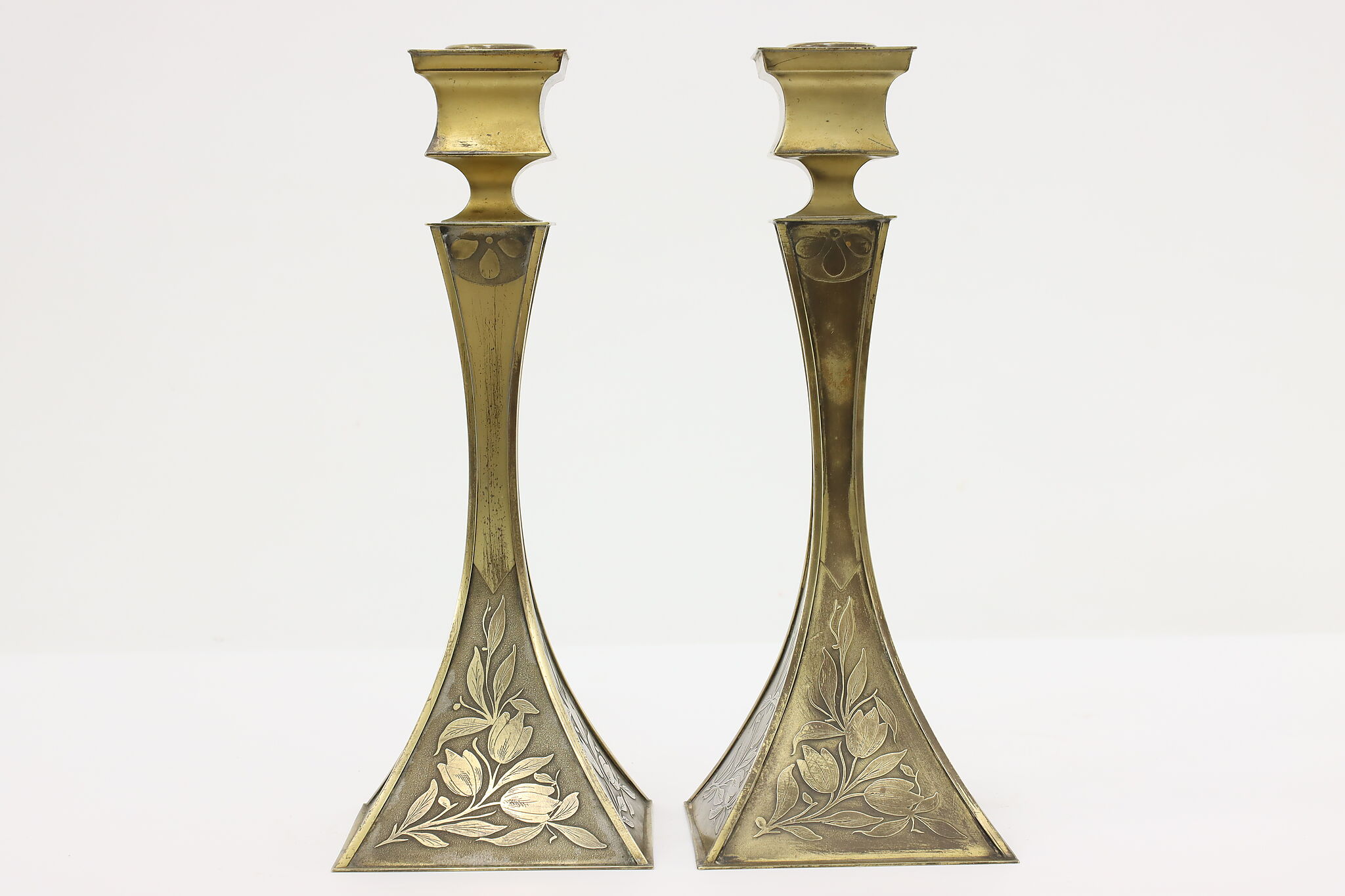 A fabulous pair of Art Nouveau candlesticks or candle holders would be beautiful on a fireplace mantel.