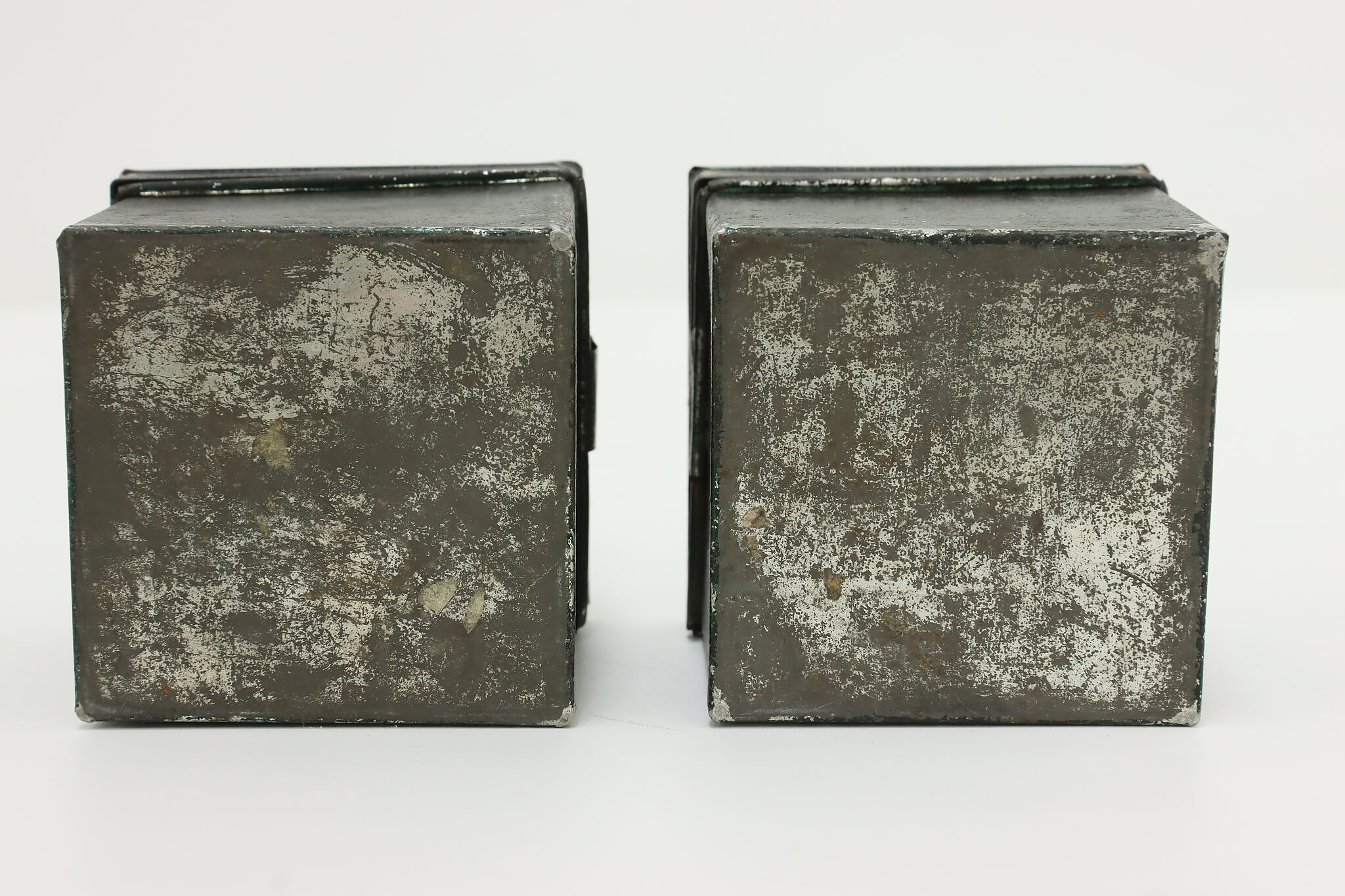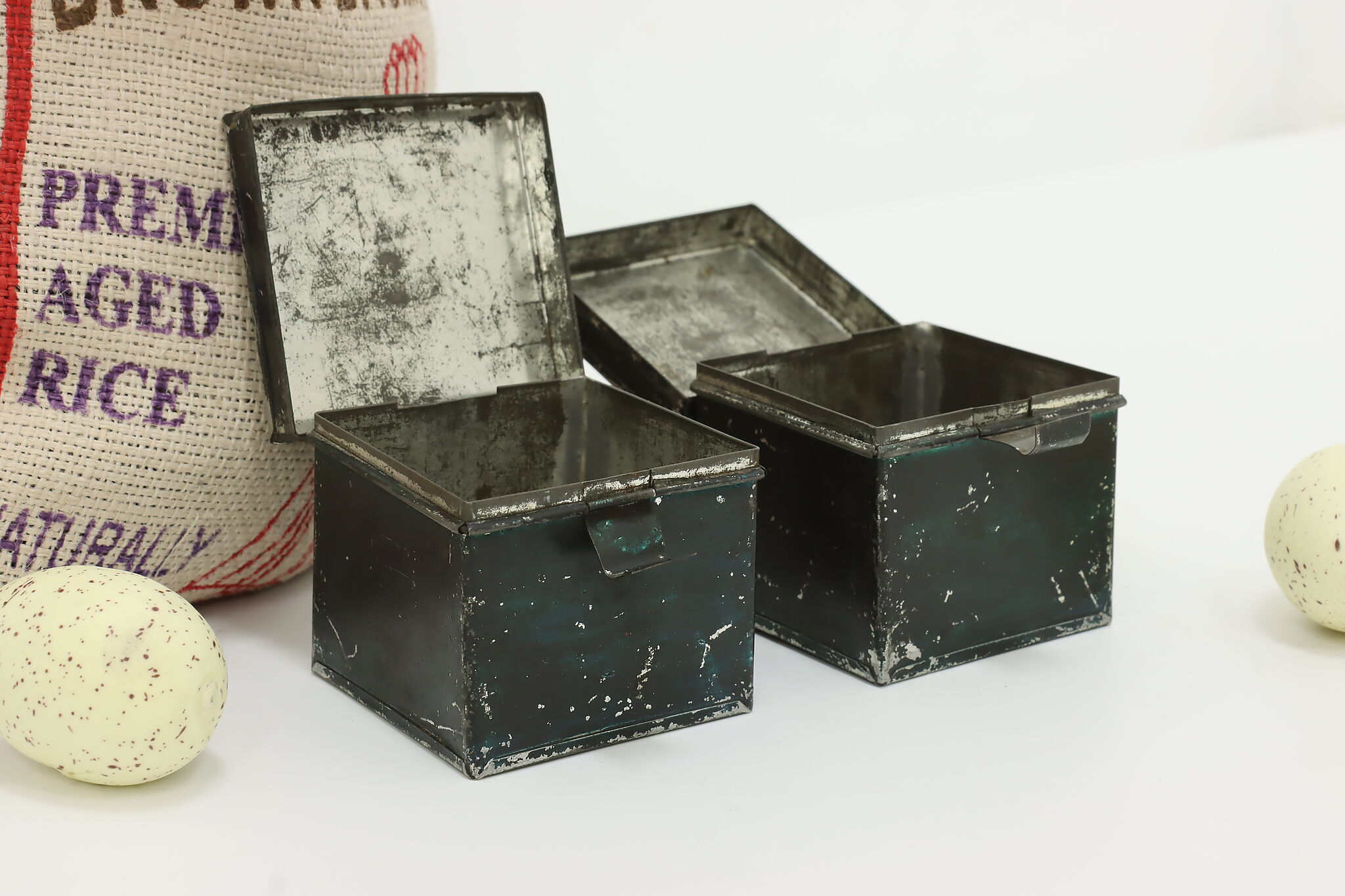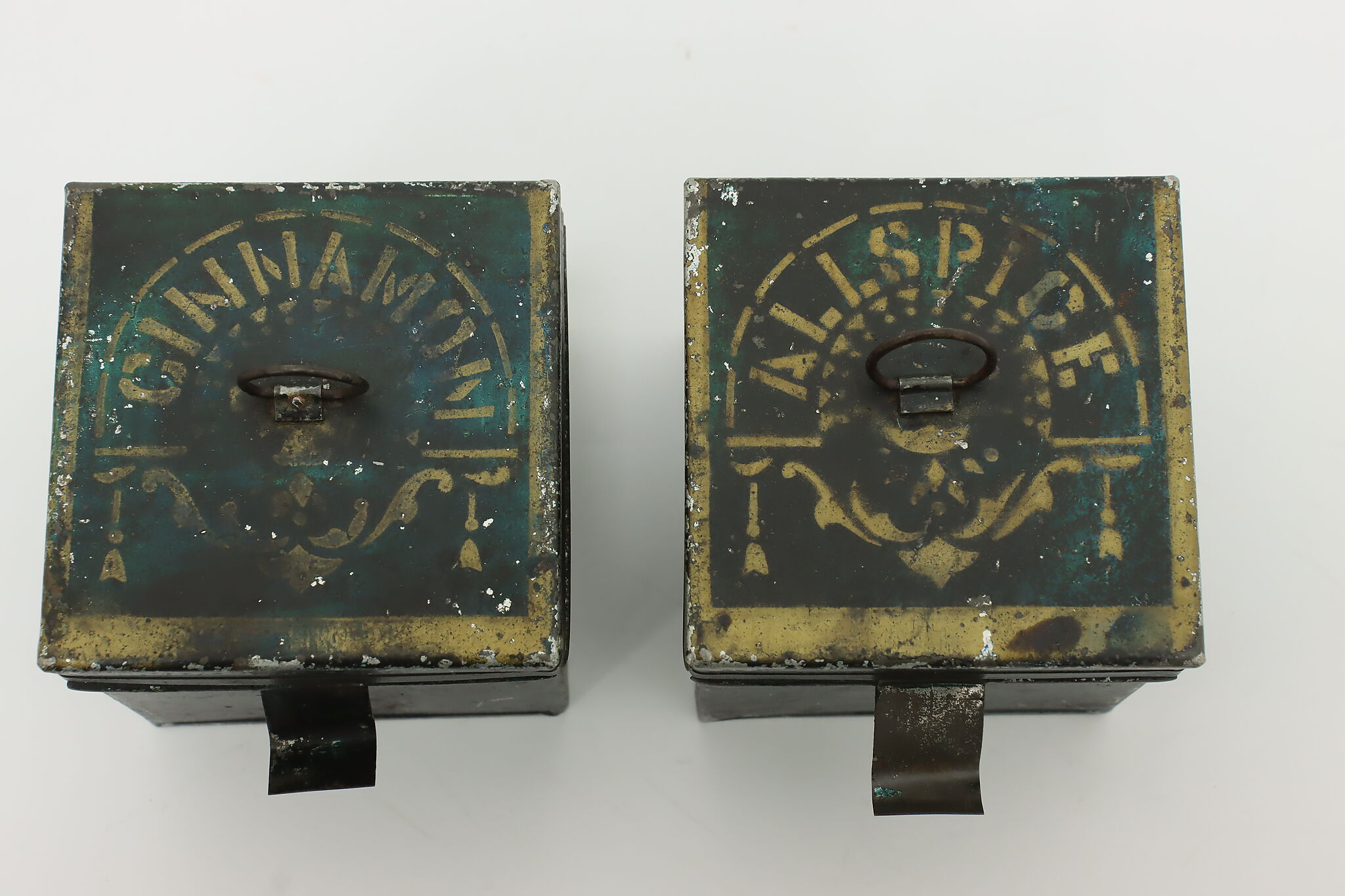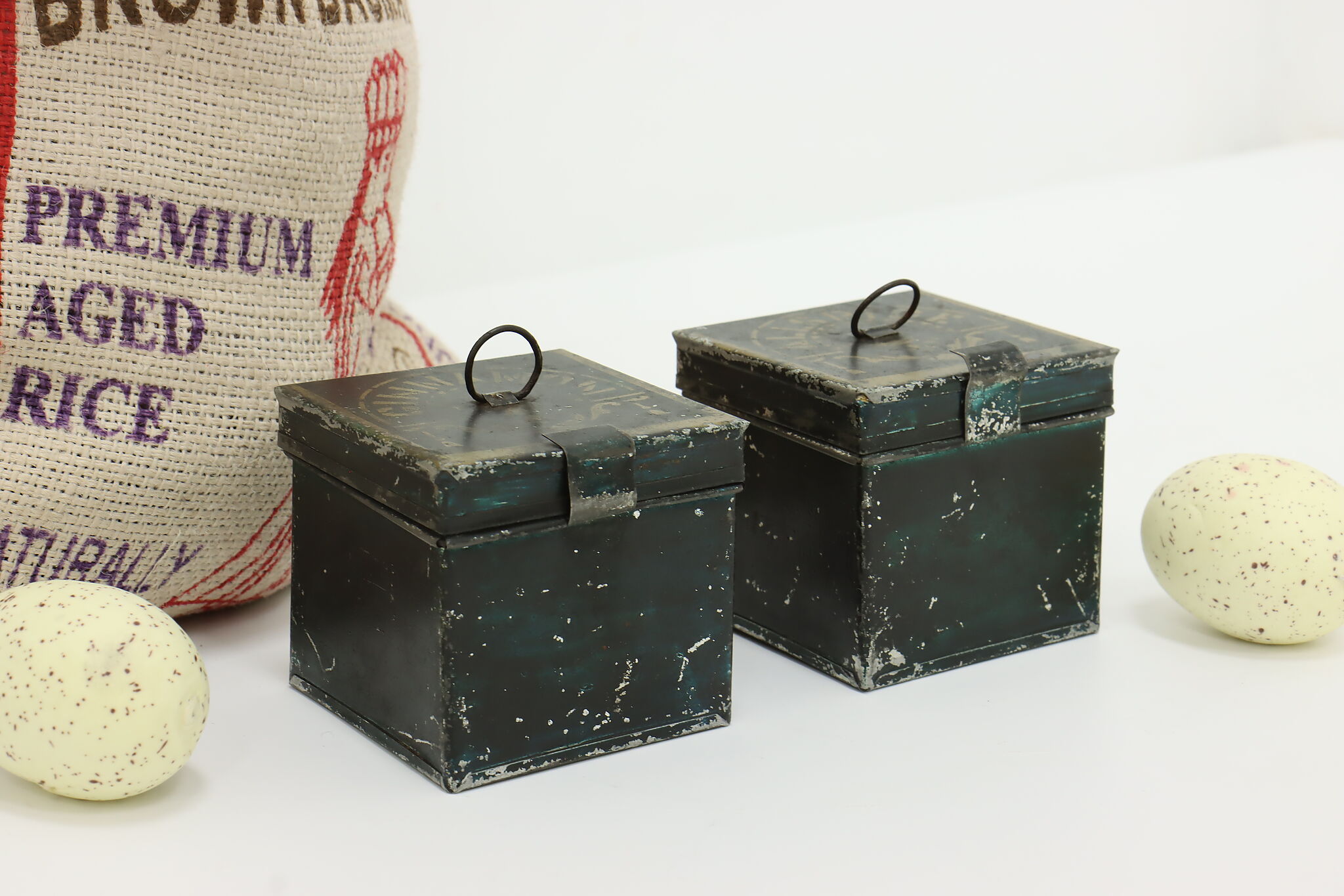 While this pair of spice containers may not be useable for spices anymore, they make great rustic kitchen decor!