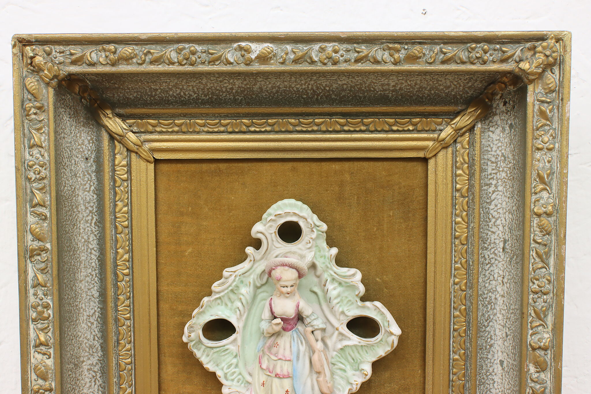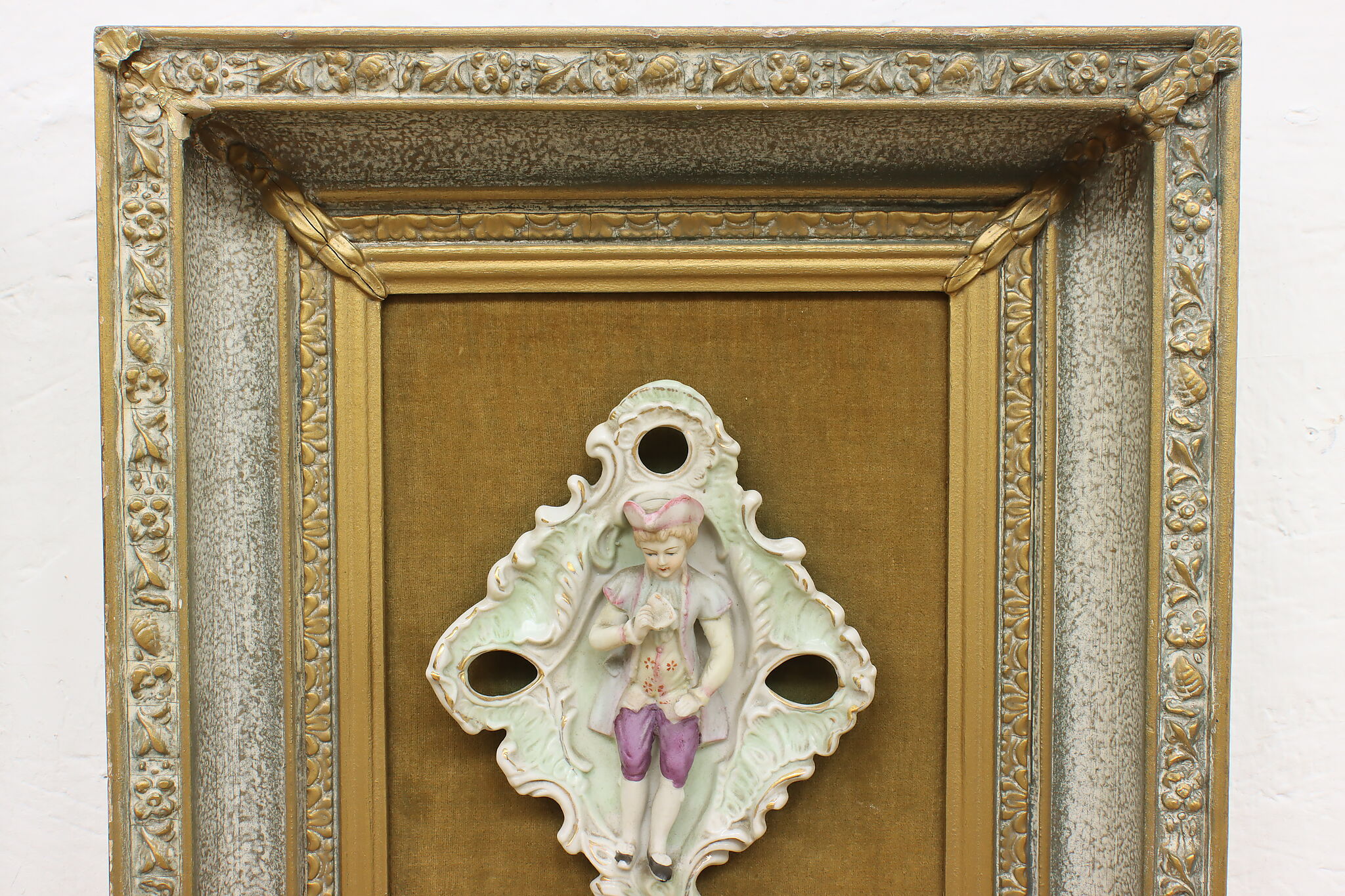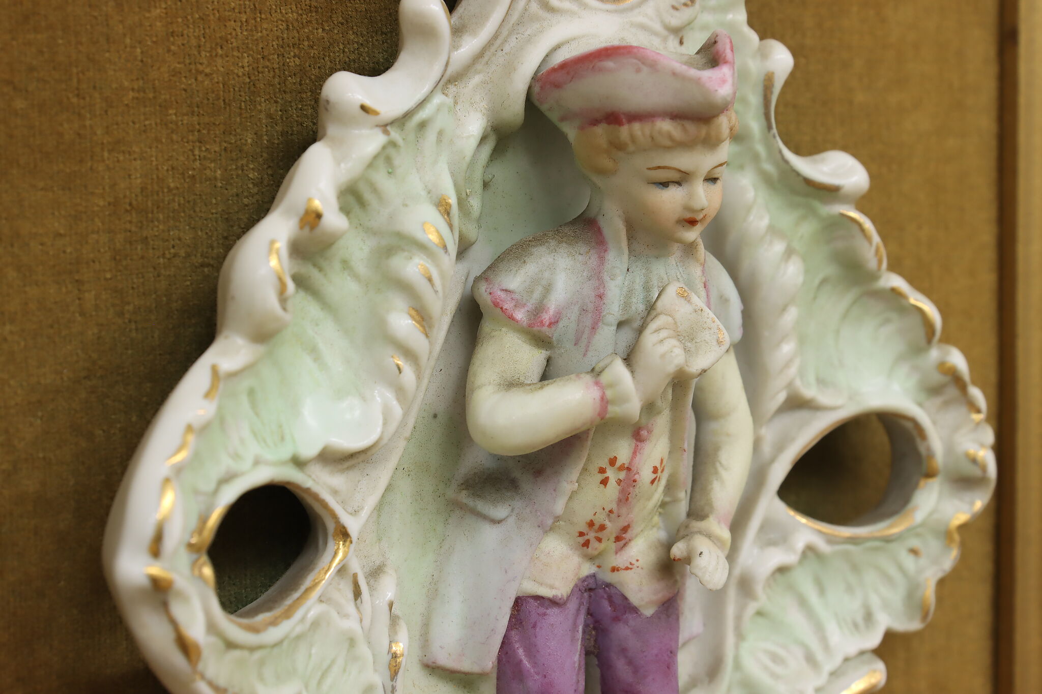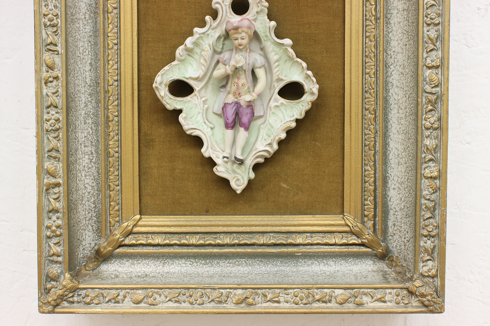 This charming pair of framed porcelain reliefs are of a French couple, with the woman bringing her violin to serenade her lover.