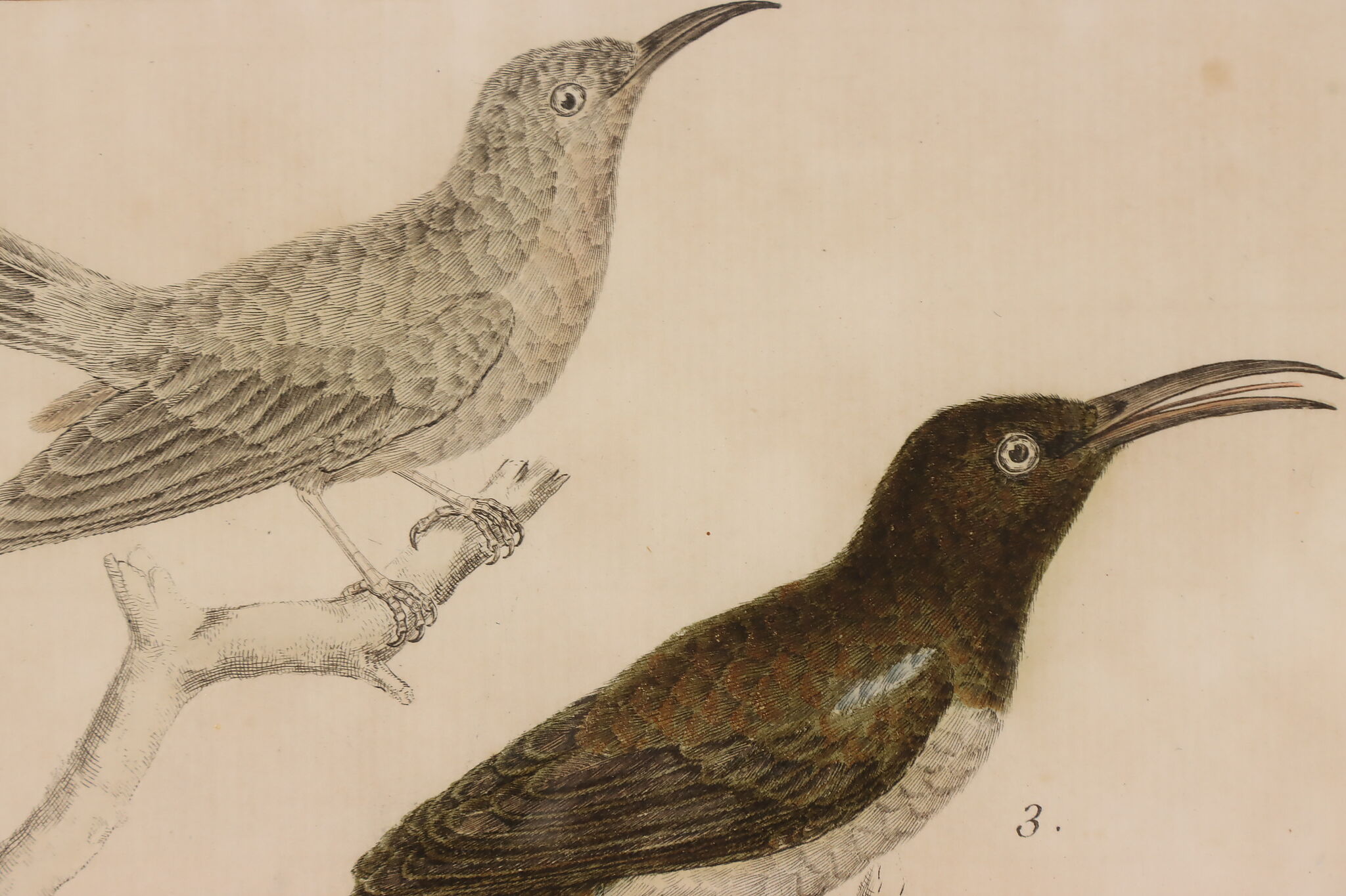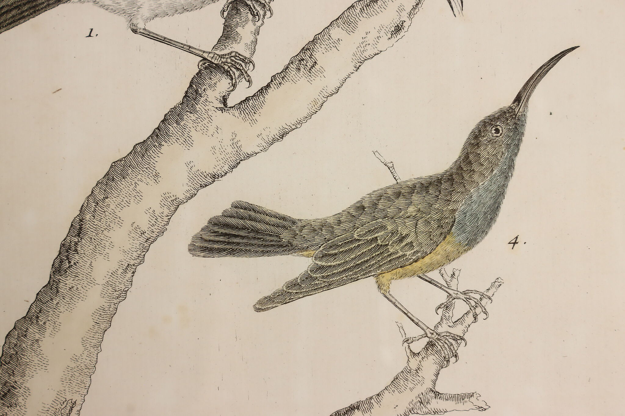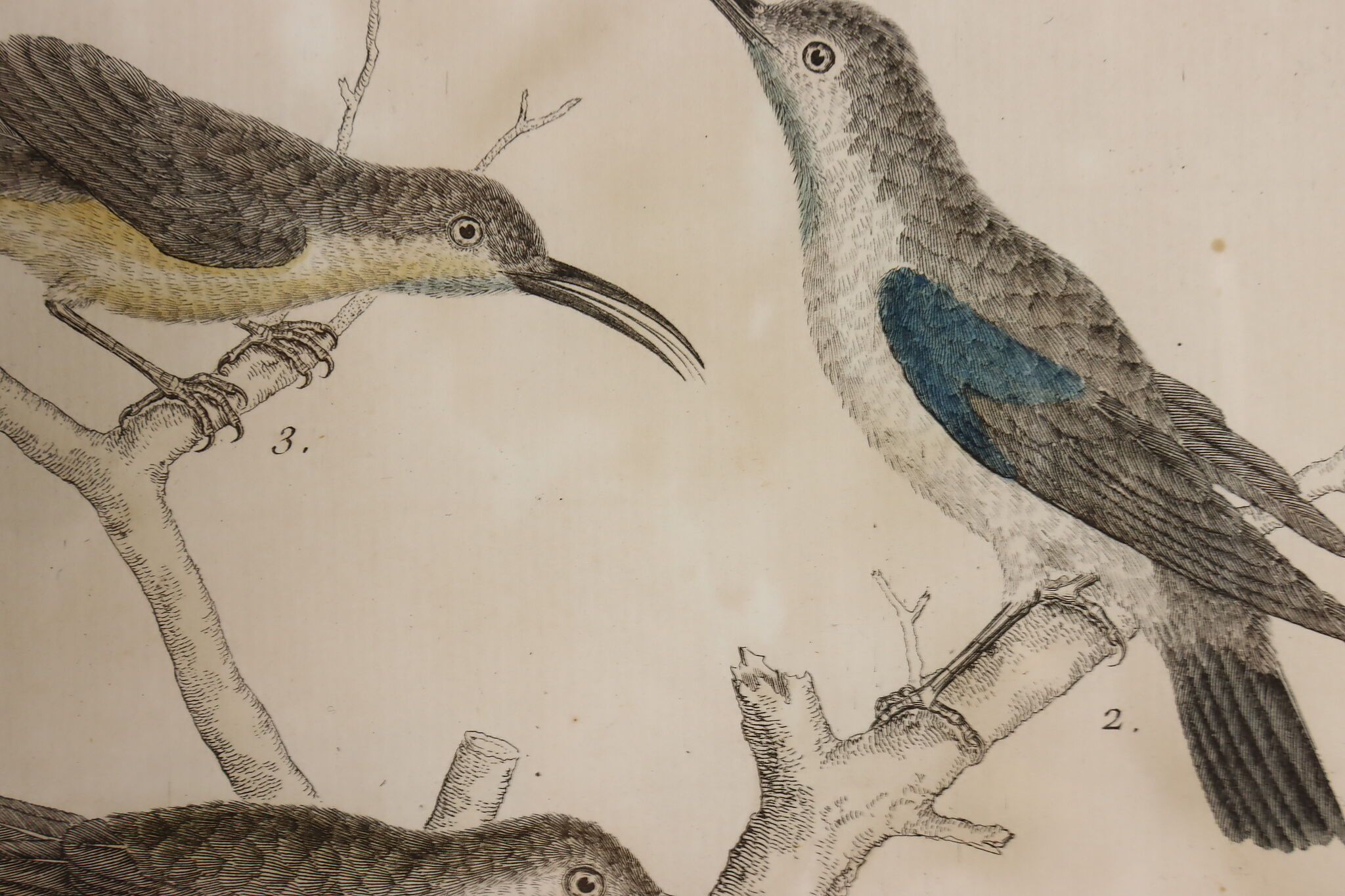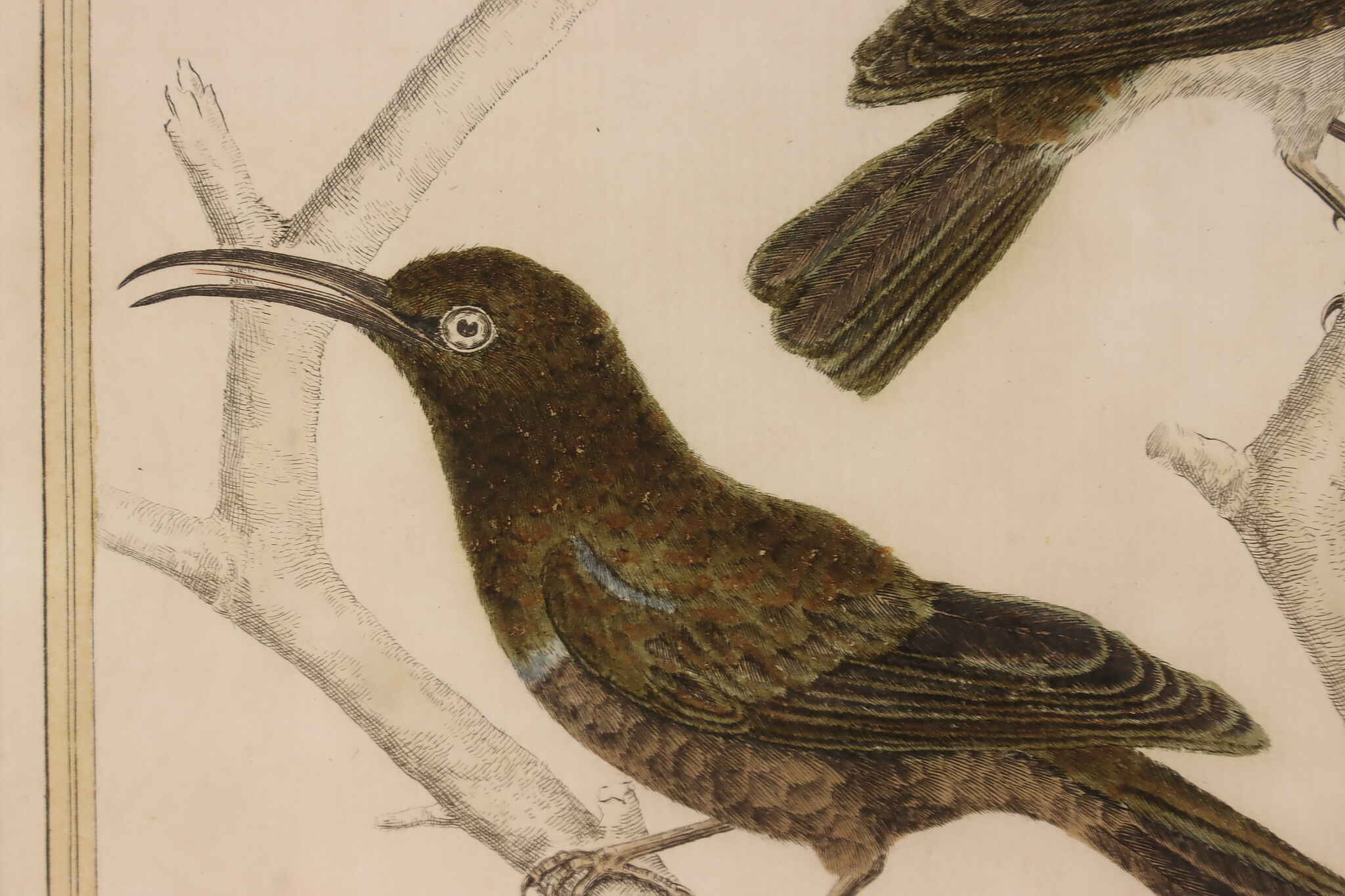 A fantastic set of hand-colored engravings of exotic birds are by French artist, François Nicolas Martinet, an engraver who helped illustrate the 18th century French encyclopedia, "Histoire Naturelle."