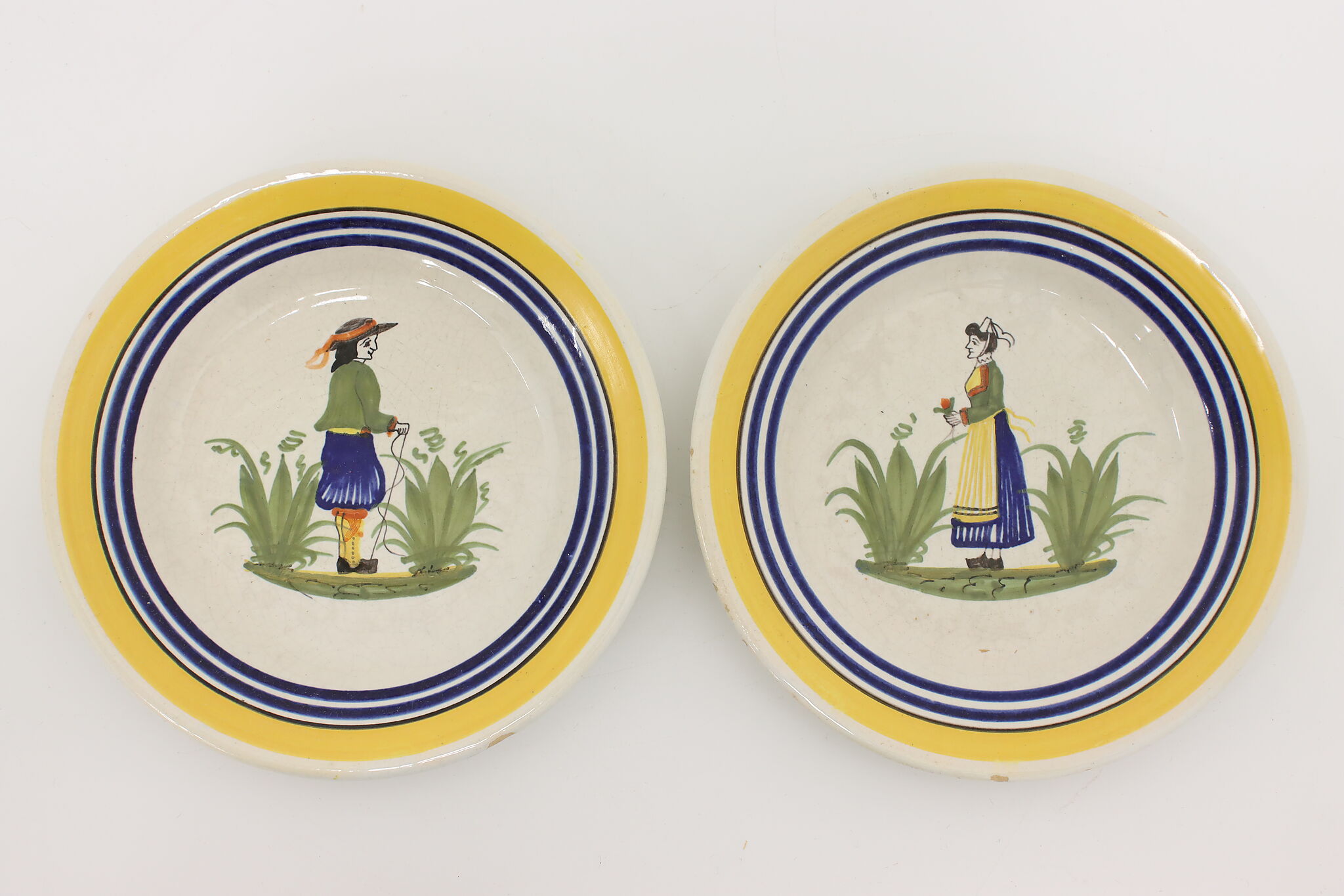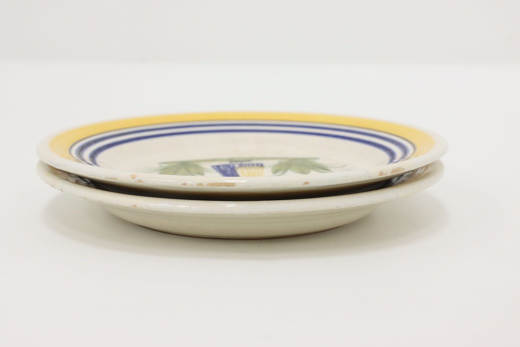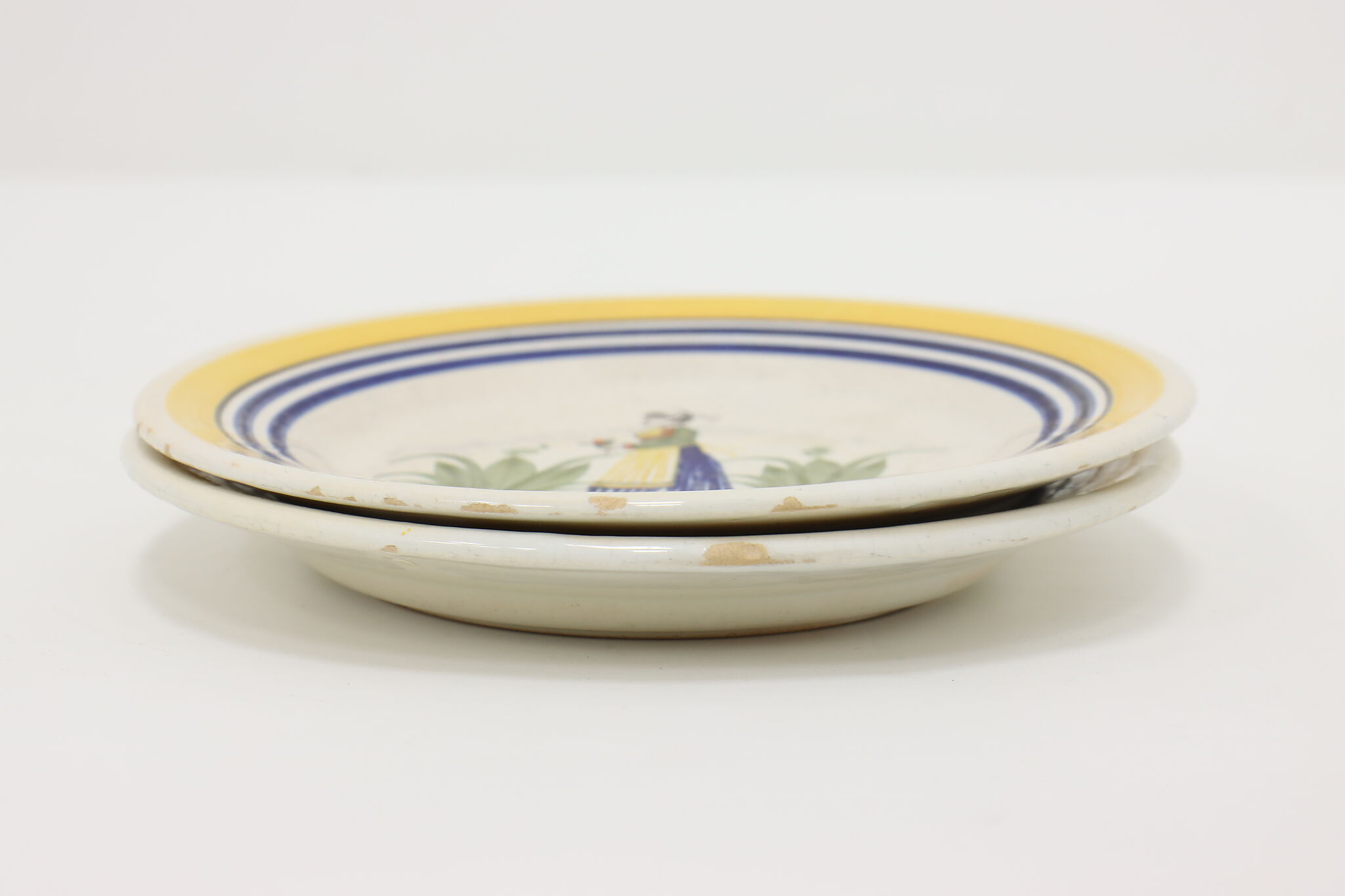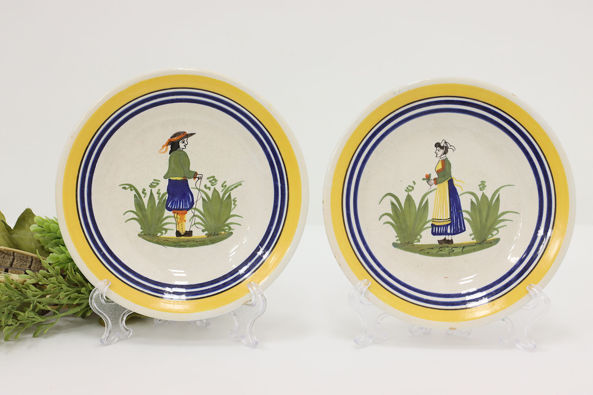 A pair of small dessert plates were handcrafted in Brittany, France.