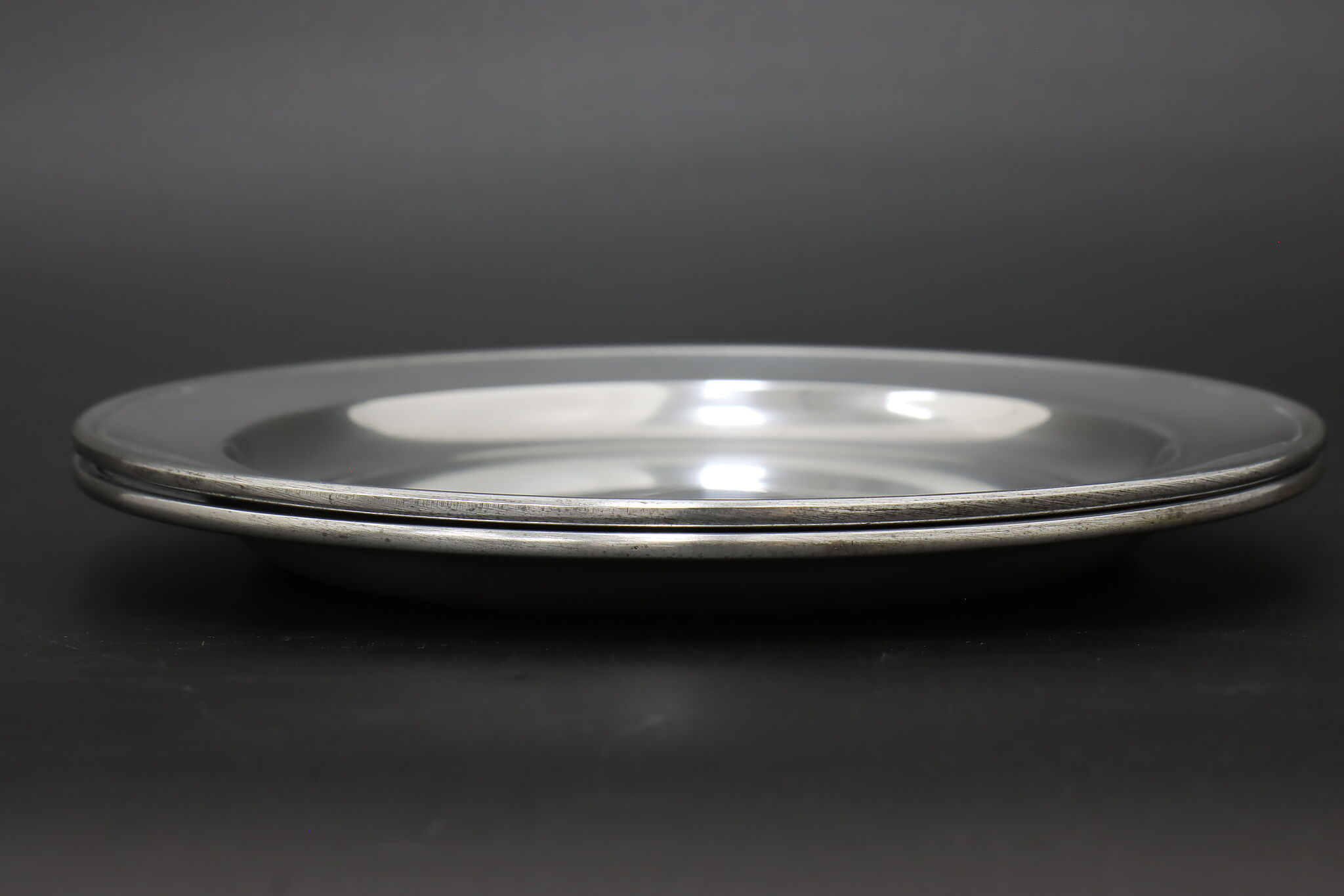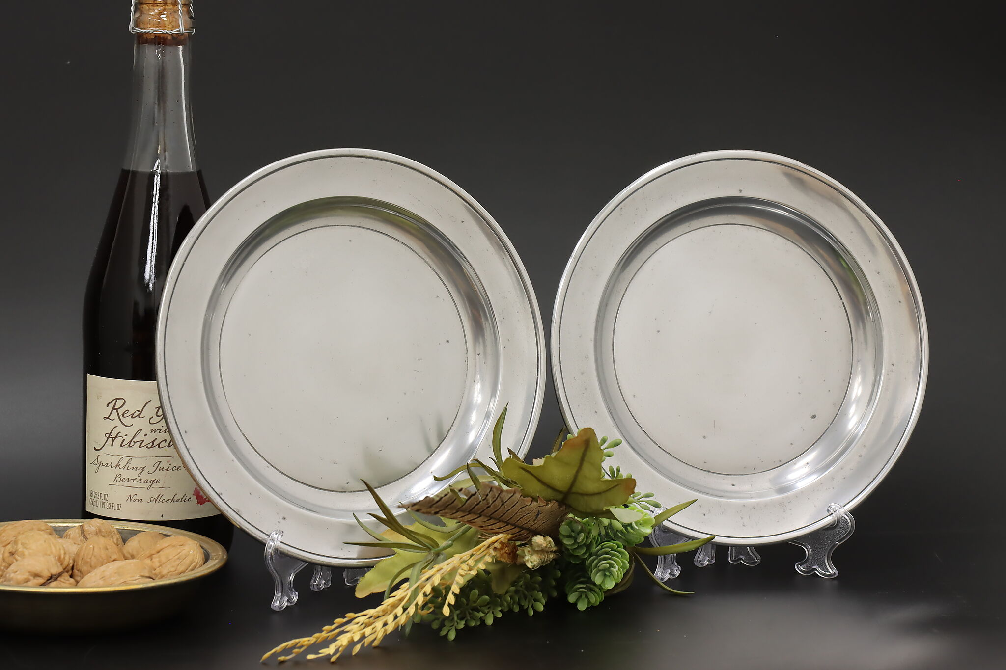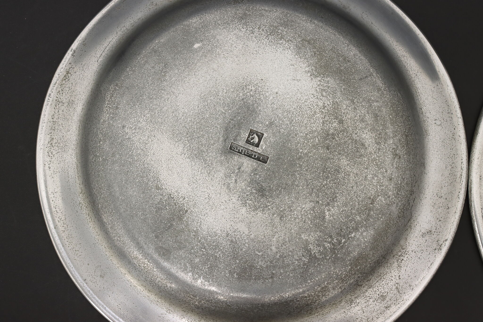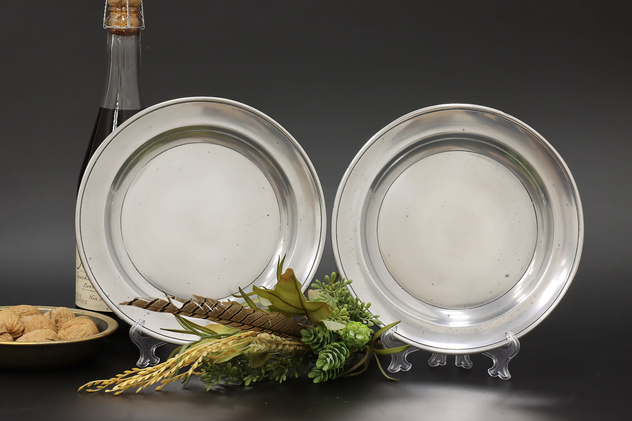 A delightful pair of pewter farmhouse plates were crafted in Germany.