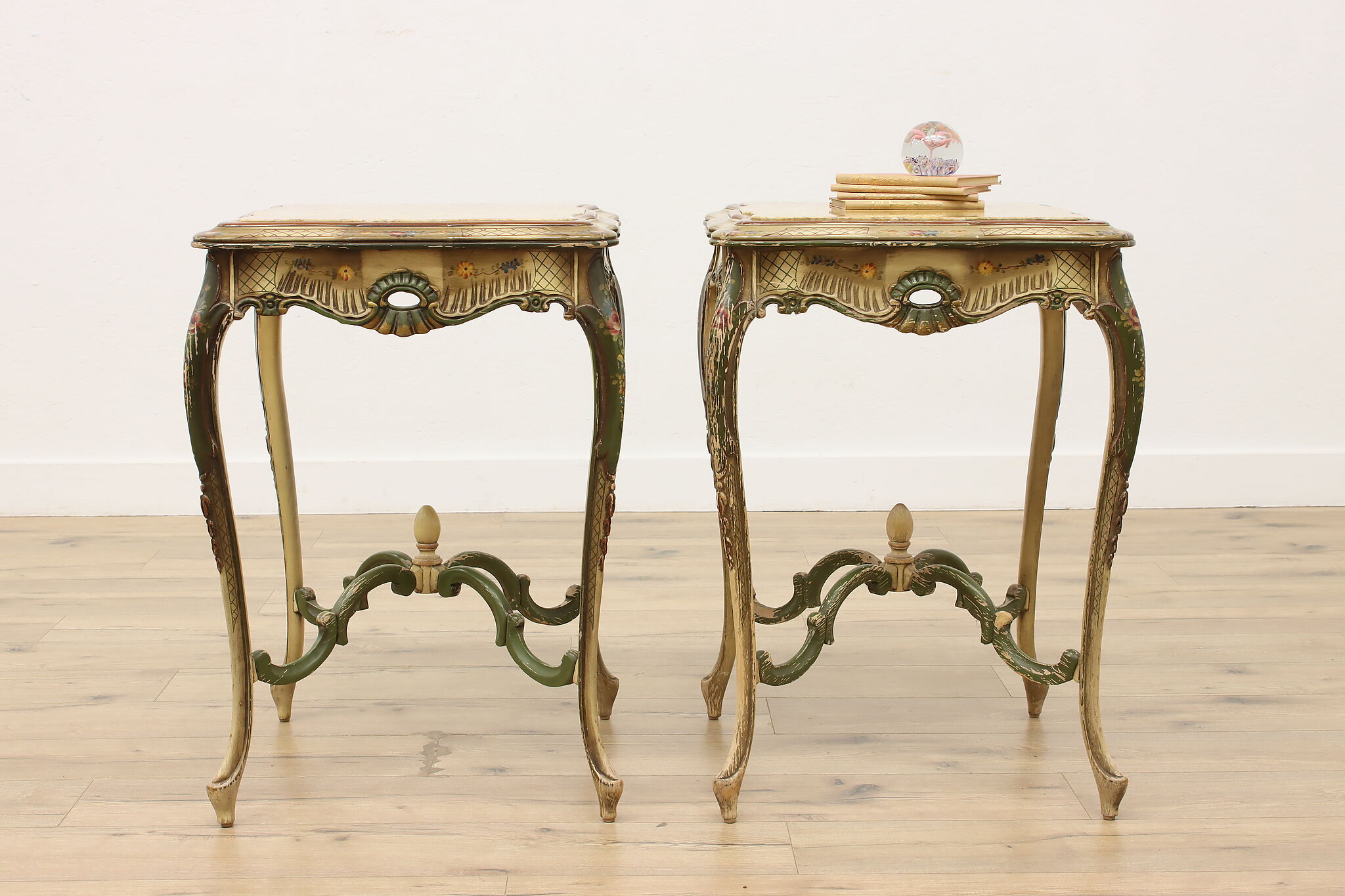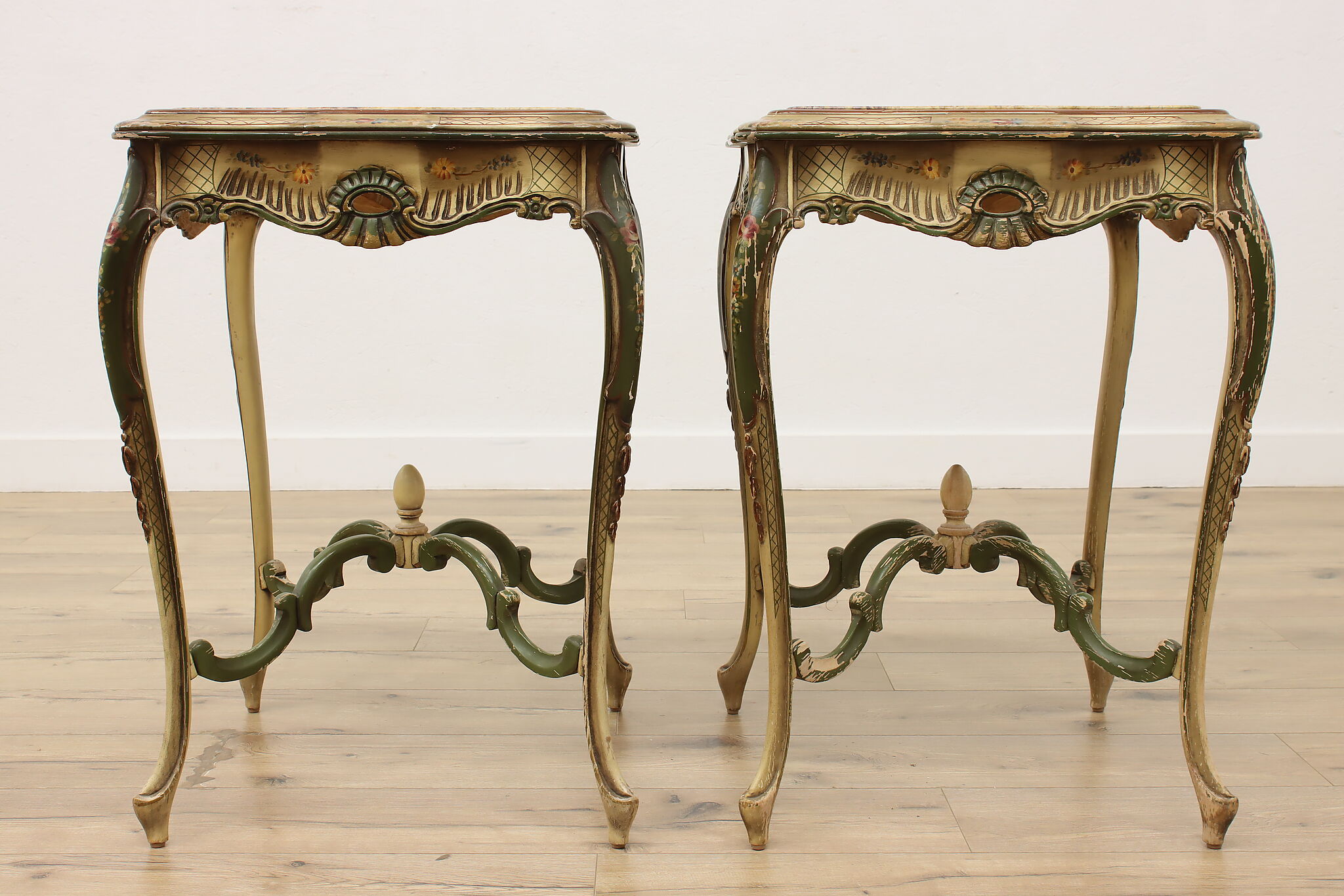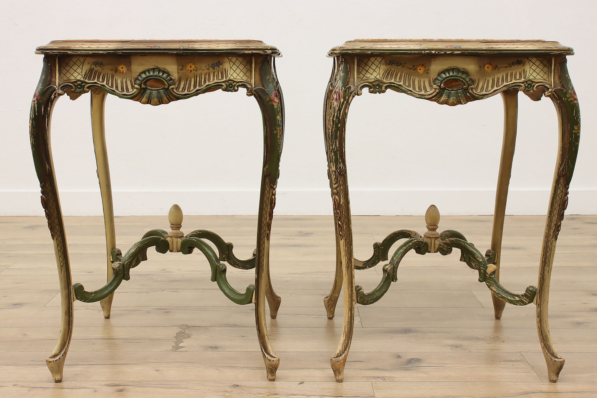 This pair of side or end tables have charmingly well worn painted finishes, giving them a fantastic "antique" look.