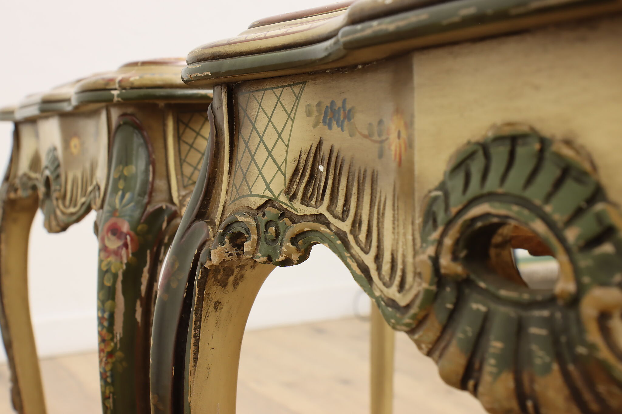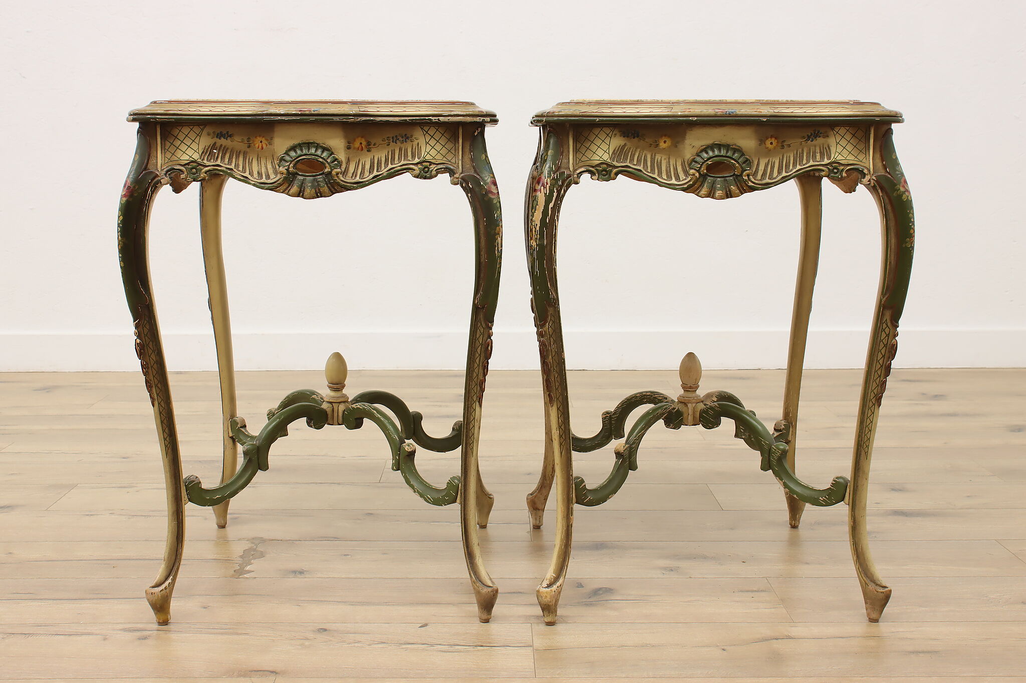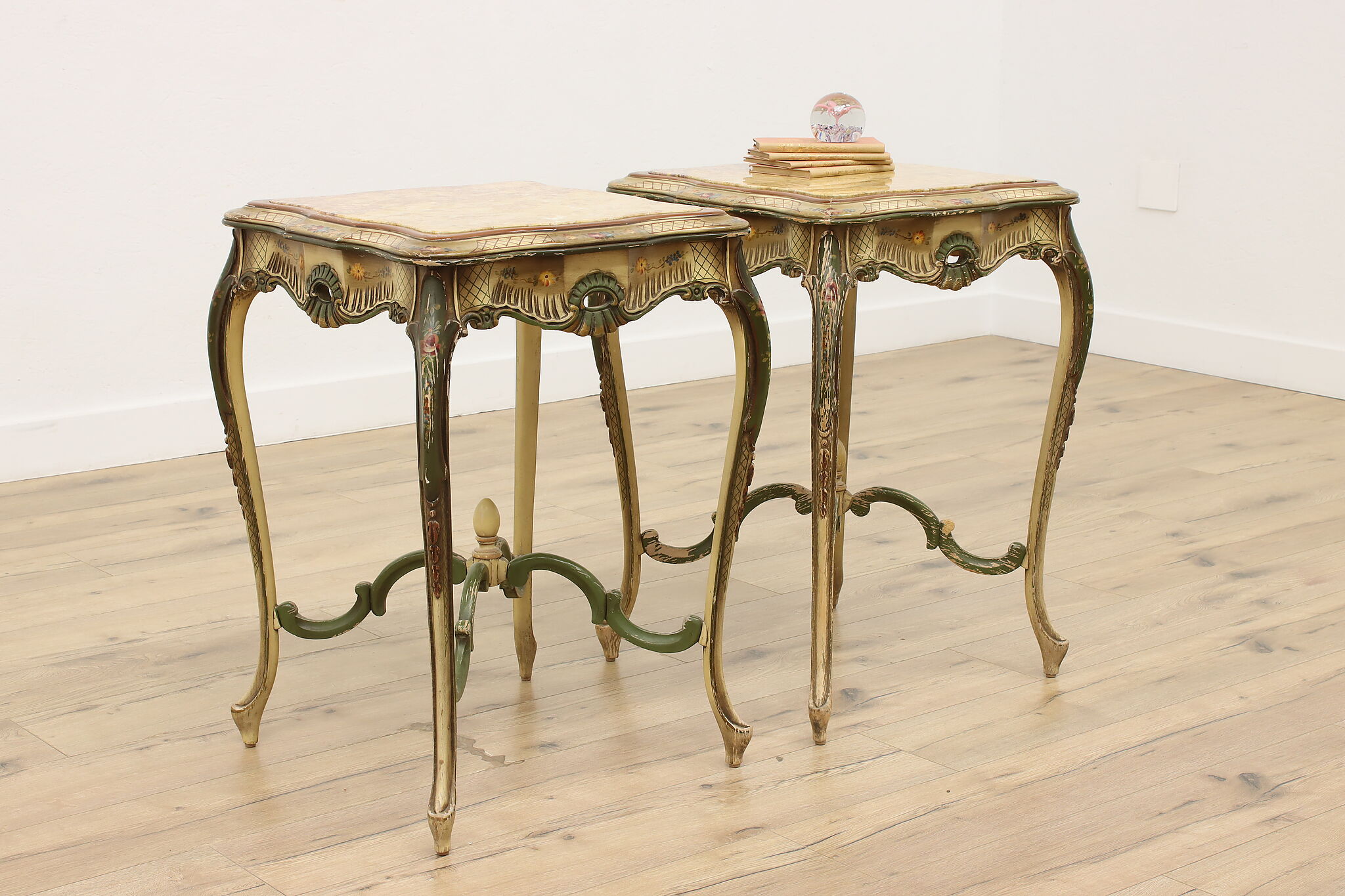 This pair of side or end tables have charmingly well worn painted finishes, giving them a fantastic "antique" look.