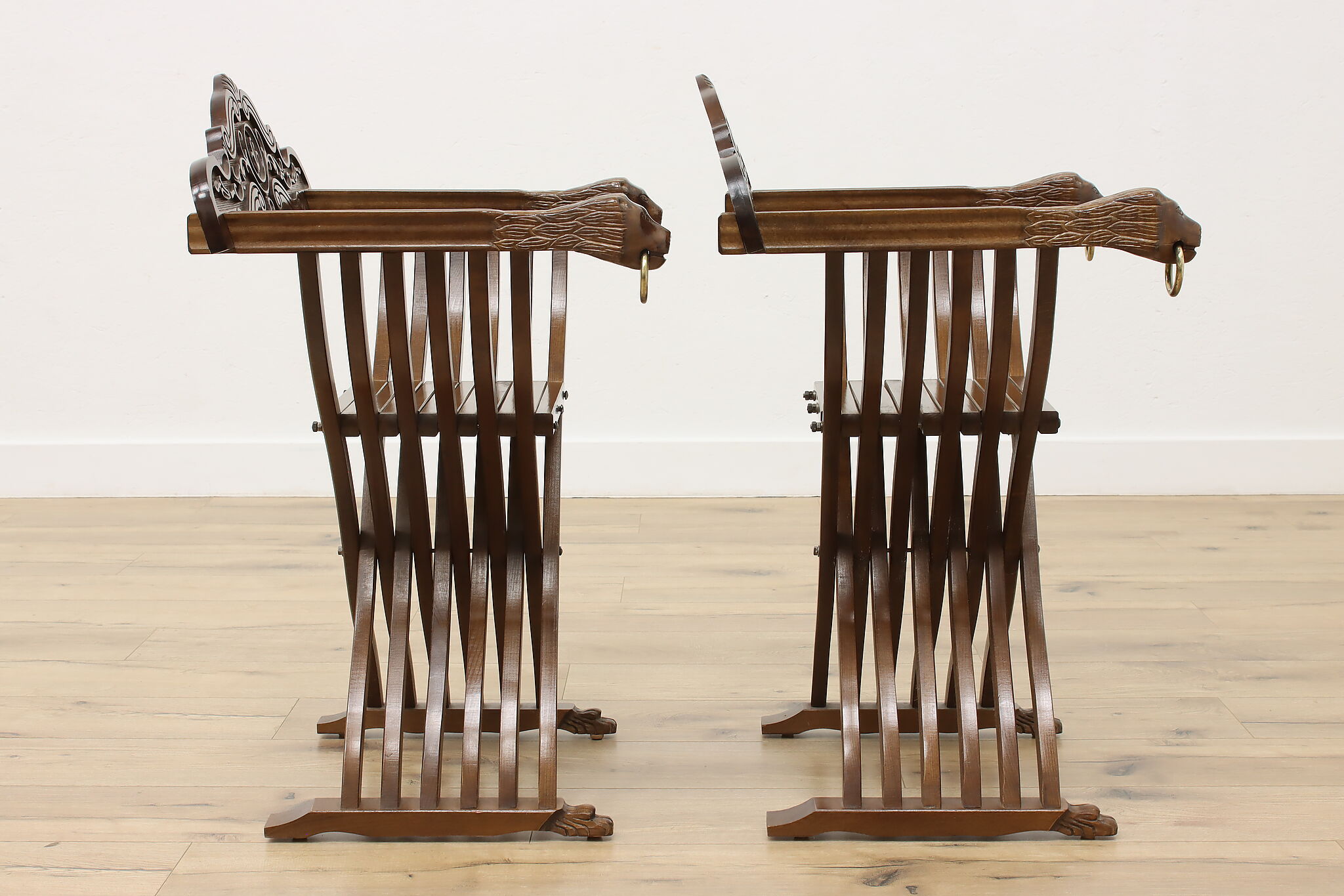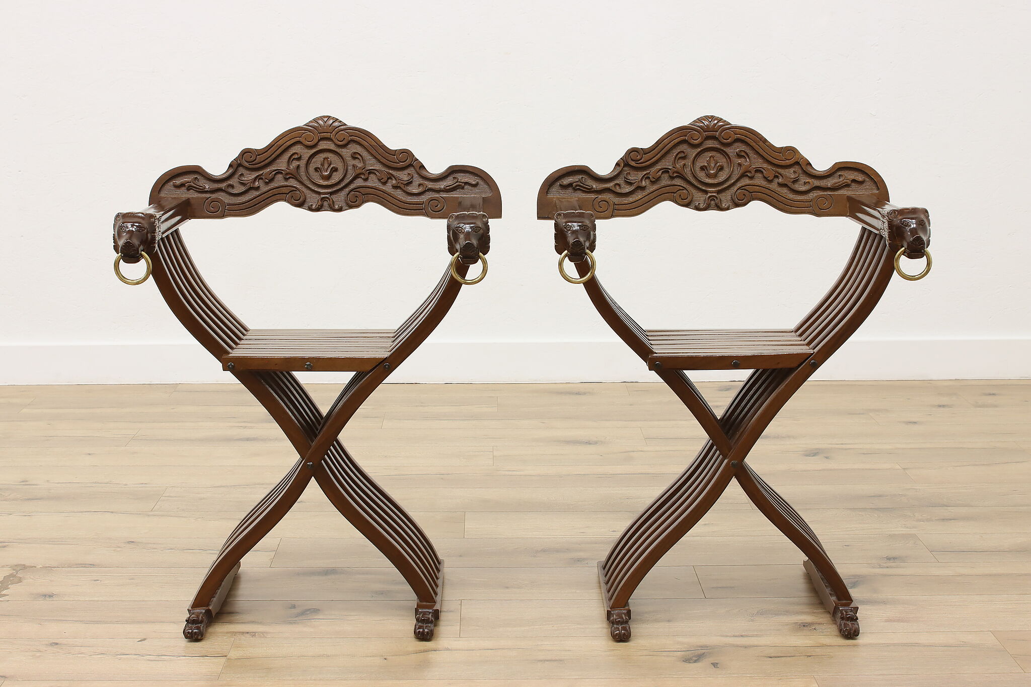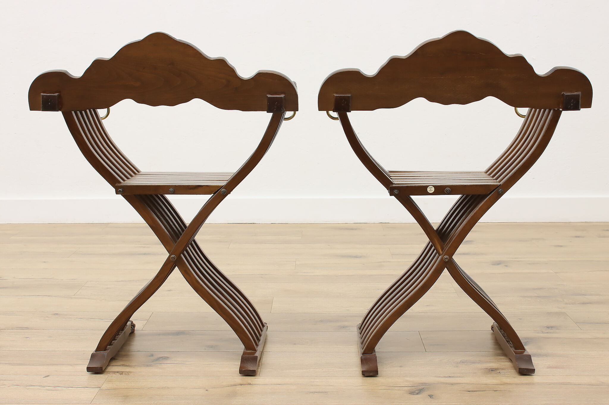 The ancient empires of Rome and Egypt developed the folding "x" chair and the design remained popular for centuries, especially in Italy. Earning the name "Savonarola" after the Italian priest, Girolamo Savonarola, this pair of chairs are fantastic vintage pieces with impressive history!
