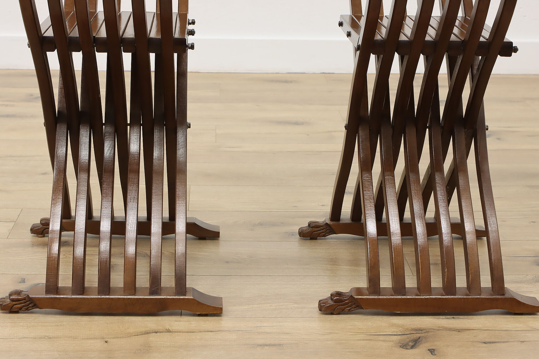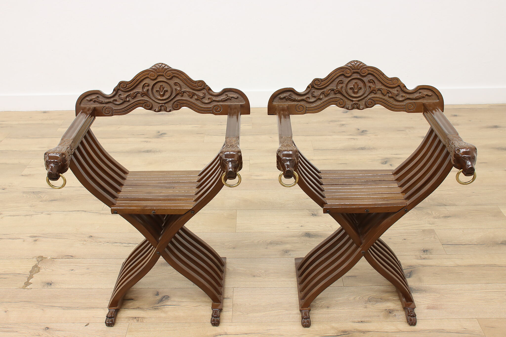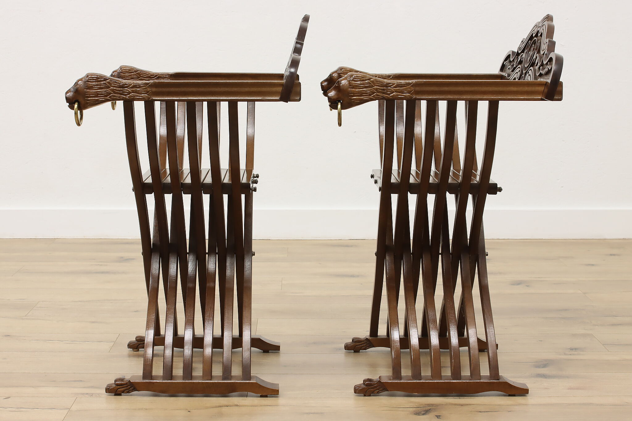The ancient empires of Rome and Egypt developed the folding "x" chair and the design remained popular for centuries, especially in Italy. Earning the name "Savonarola" after the Italian priest, Girolamo Savonarola, this pair of chairs are fantastic vintage pieces with impressive history!