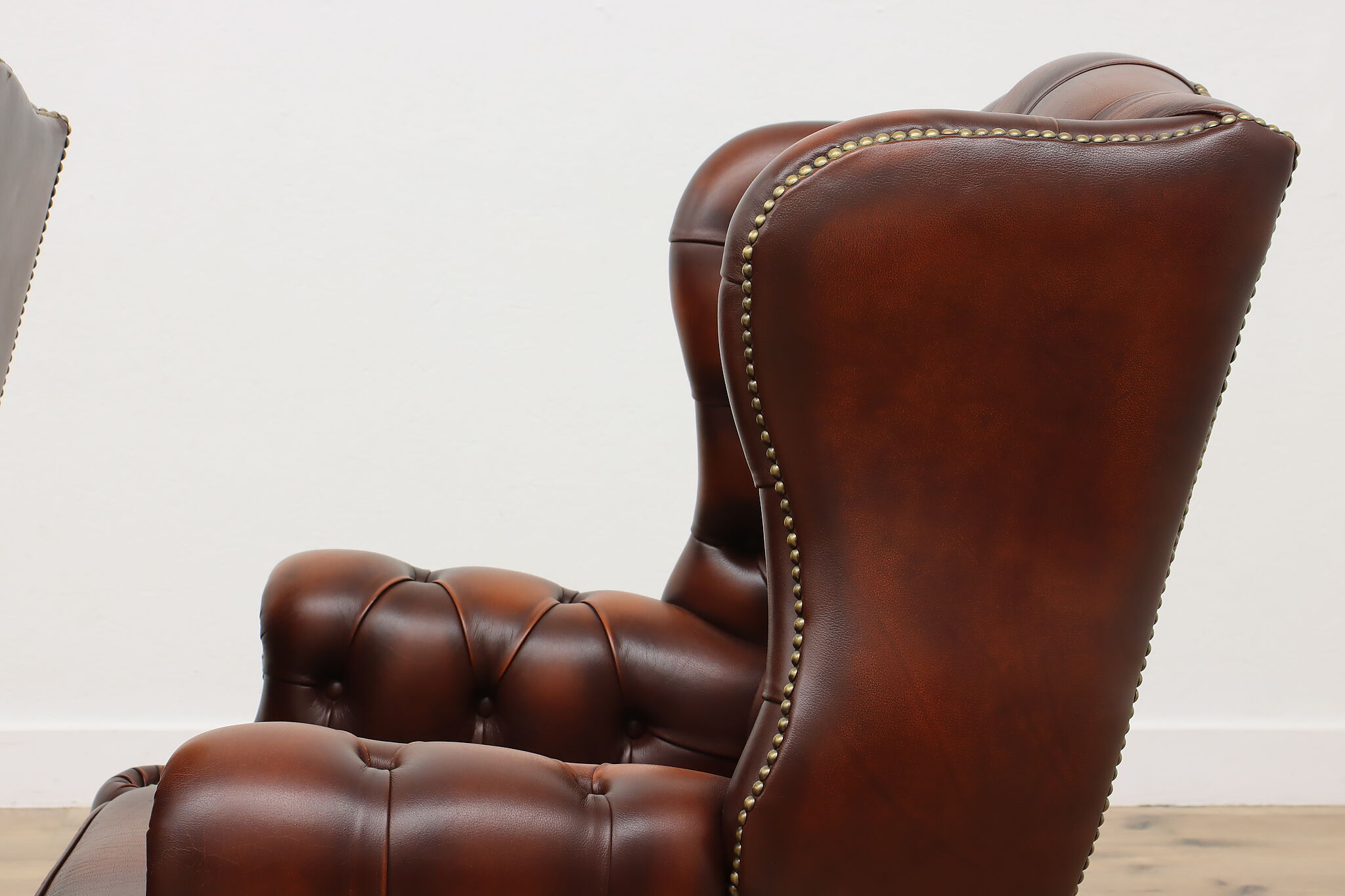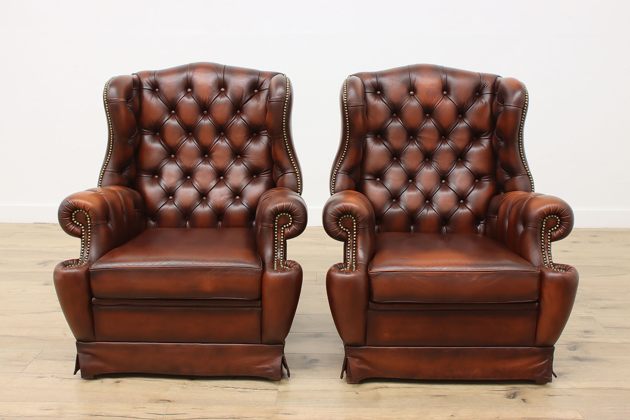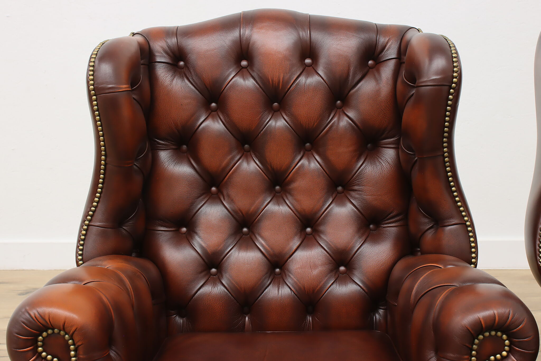 Show off your refined tastes while decorating your office or library with this pair of gorgeous and comfortable Chesterfield wingback chairs!