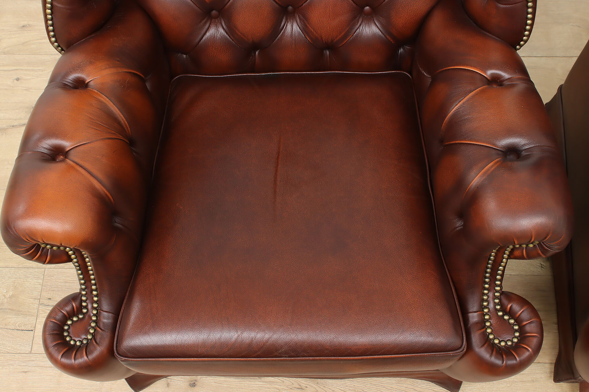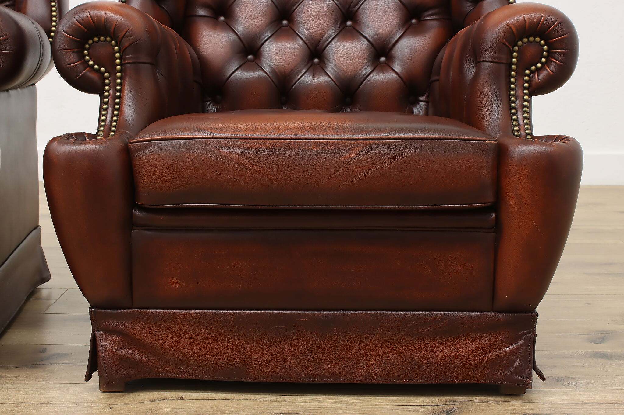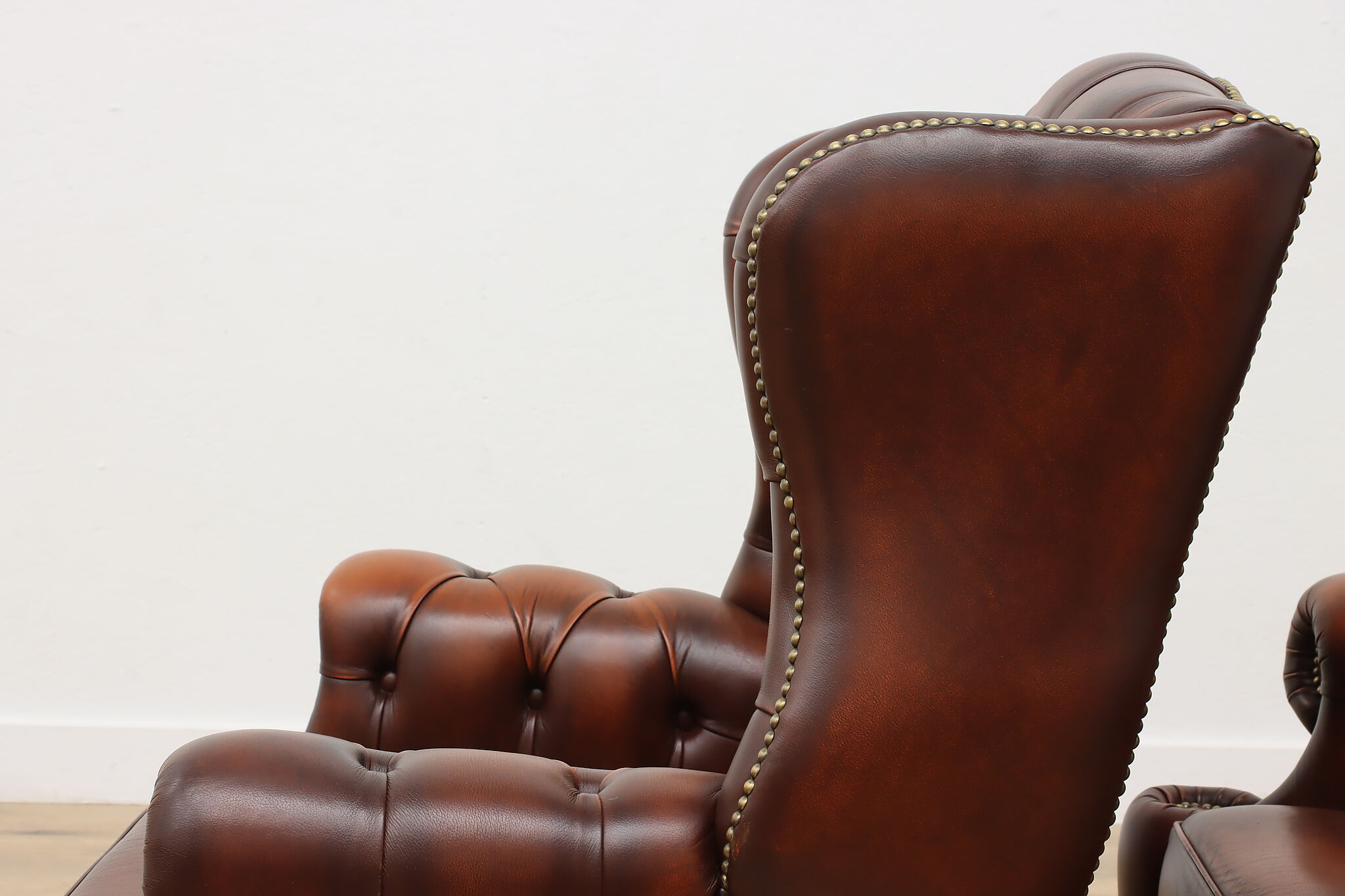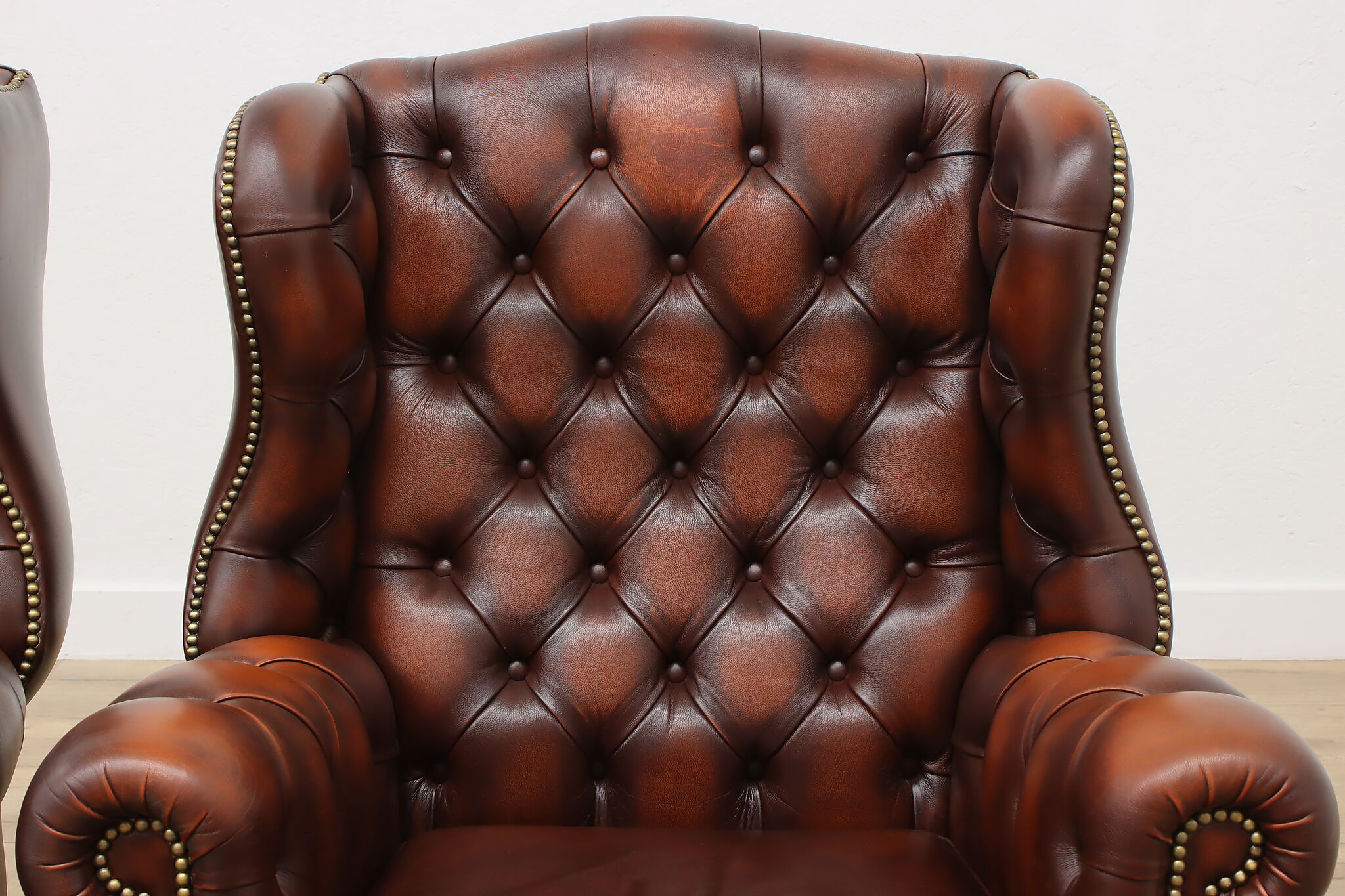 Show off your refined tastes while decorating your office or library with this pair of gorgeous and comfortable Chesterfield wingback chairs!
