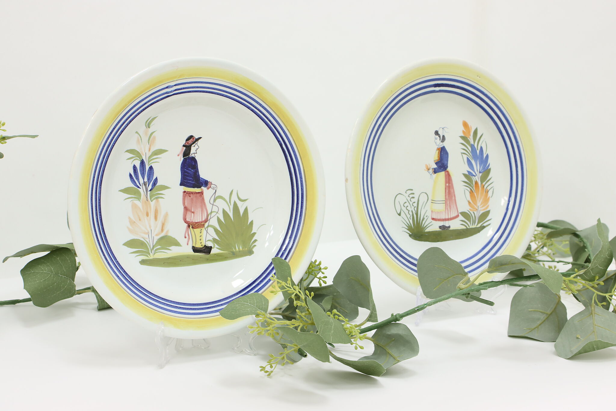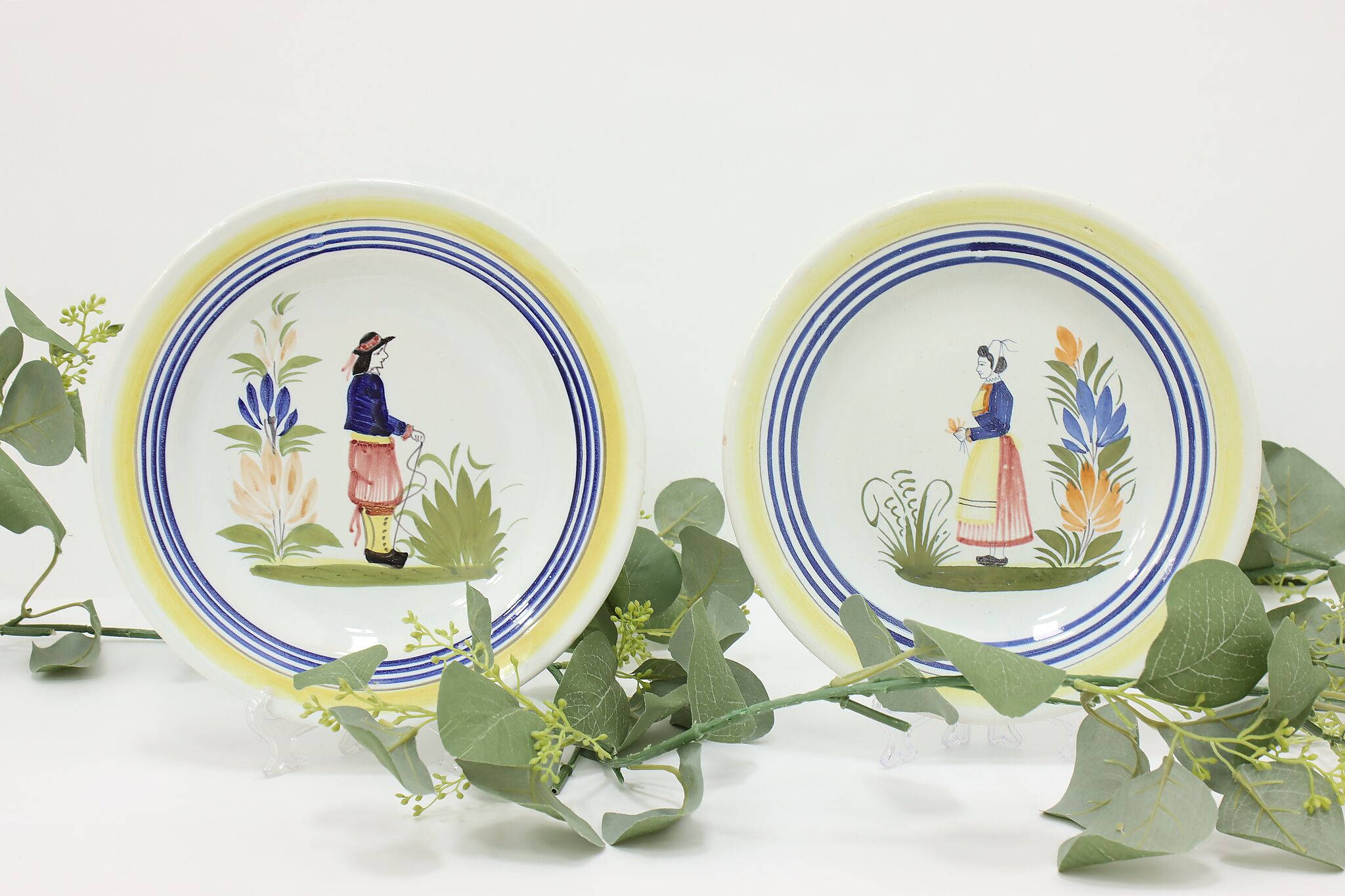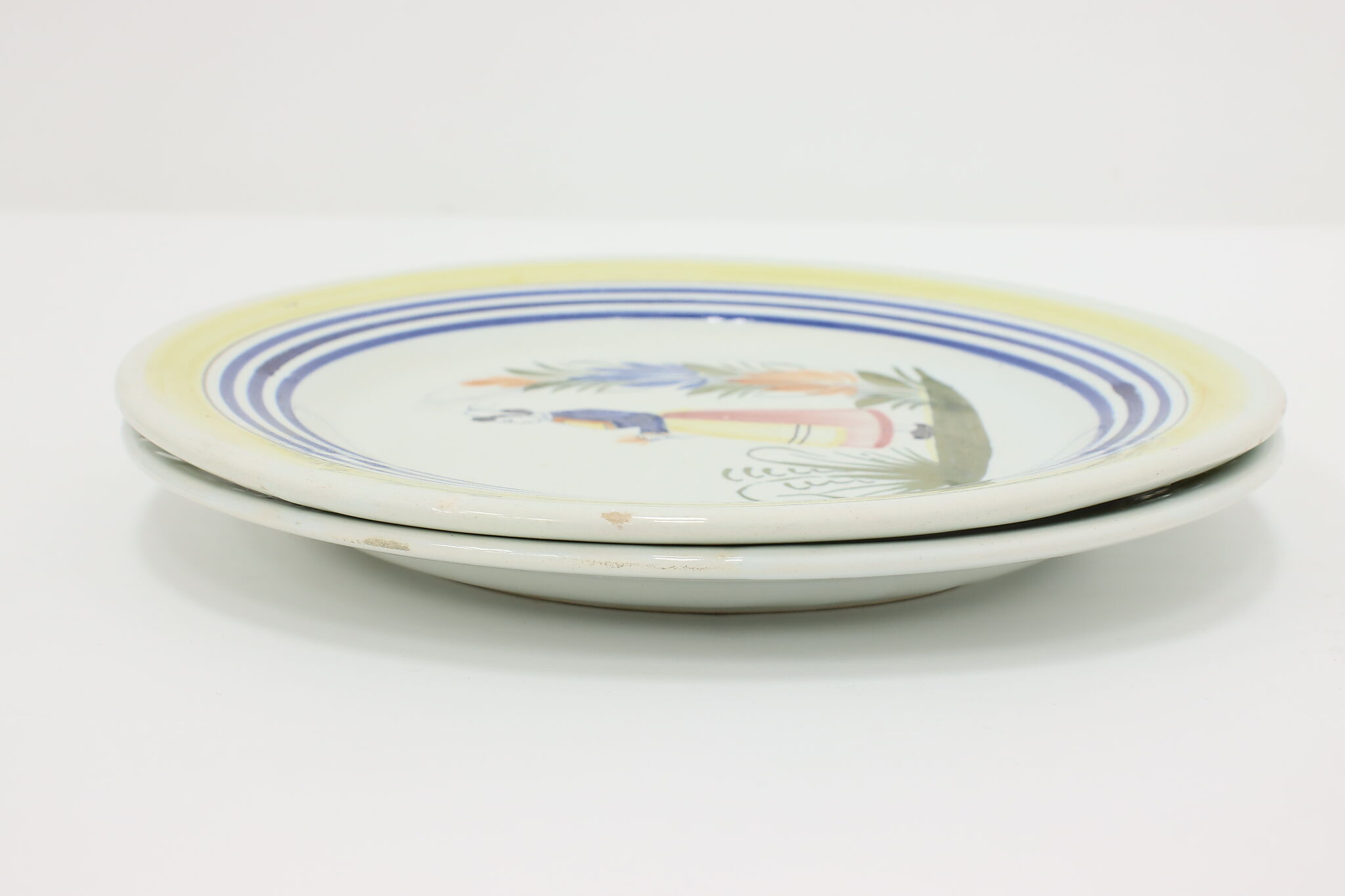 This pair of dinner plates would be a beautiful addition to a dining set or displayed in a china cabinet.