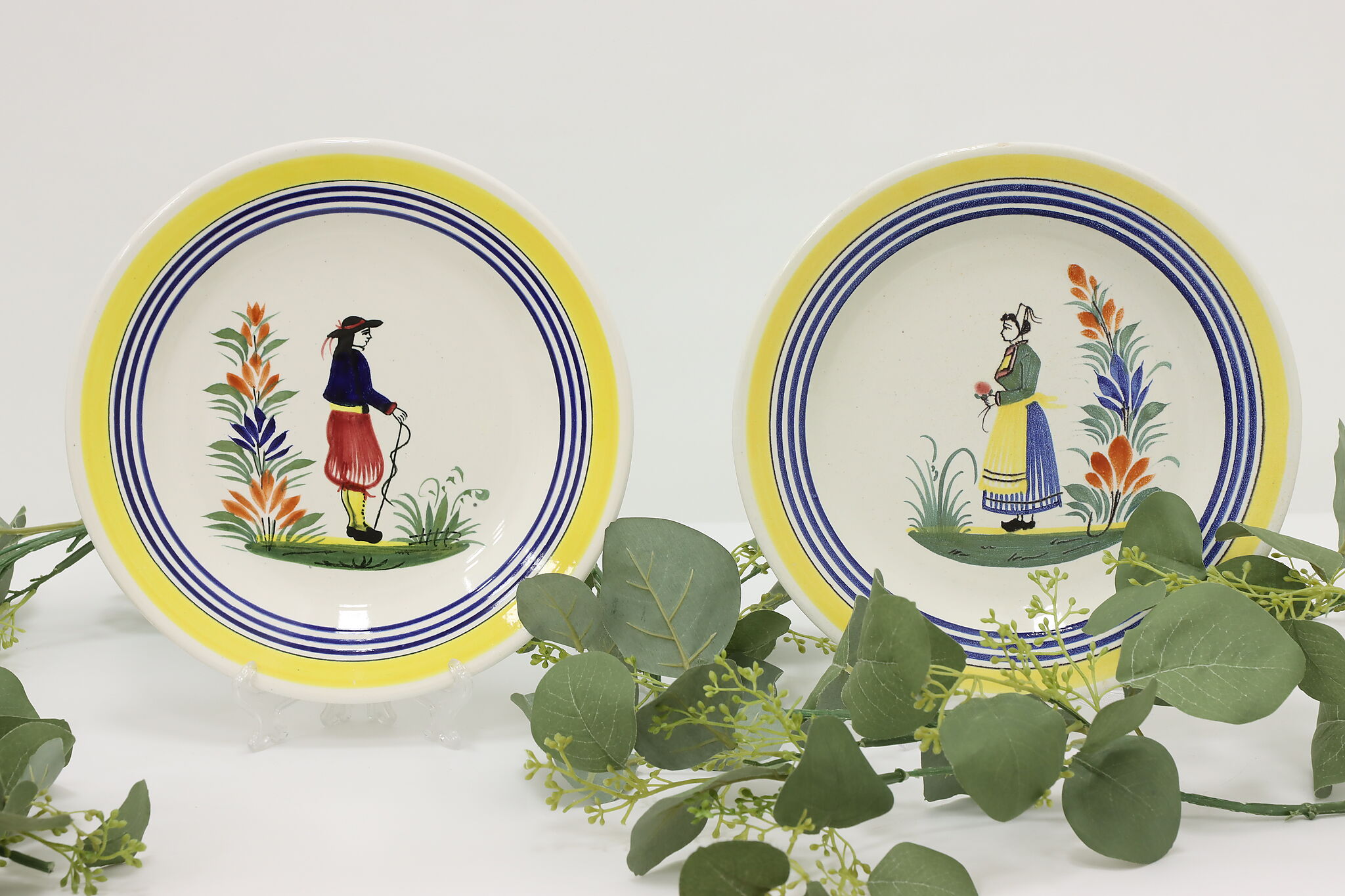 This pair of dinner plates would be a beautiful addition to a dining set or displayed in a china cabinet.