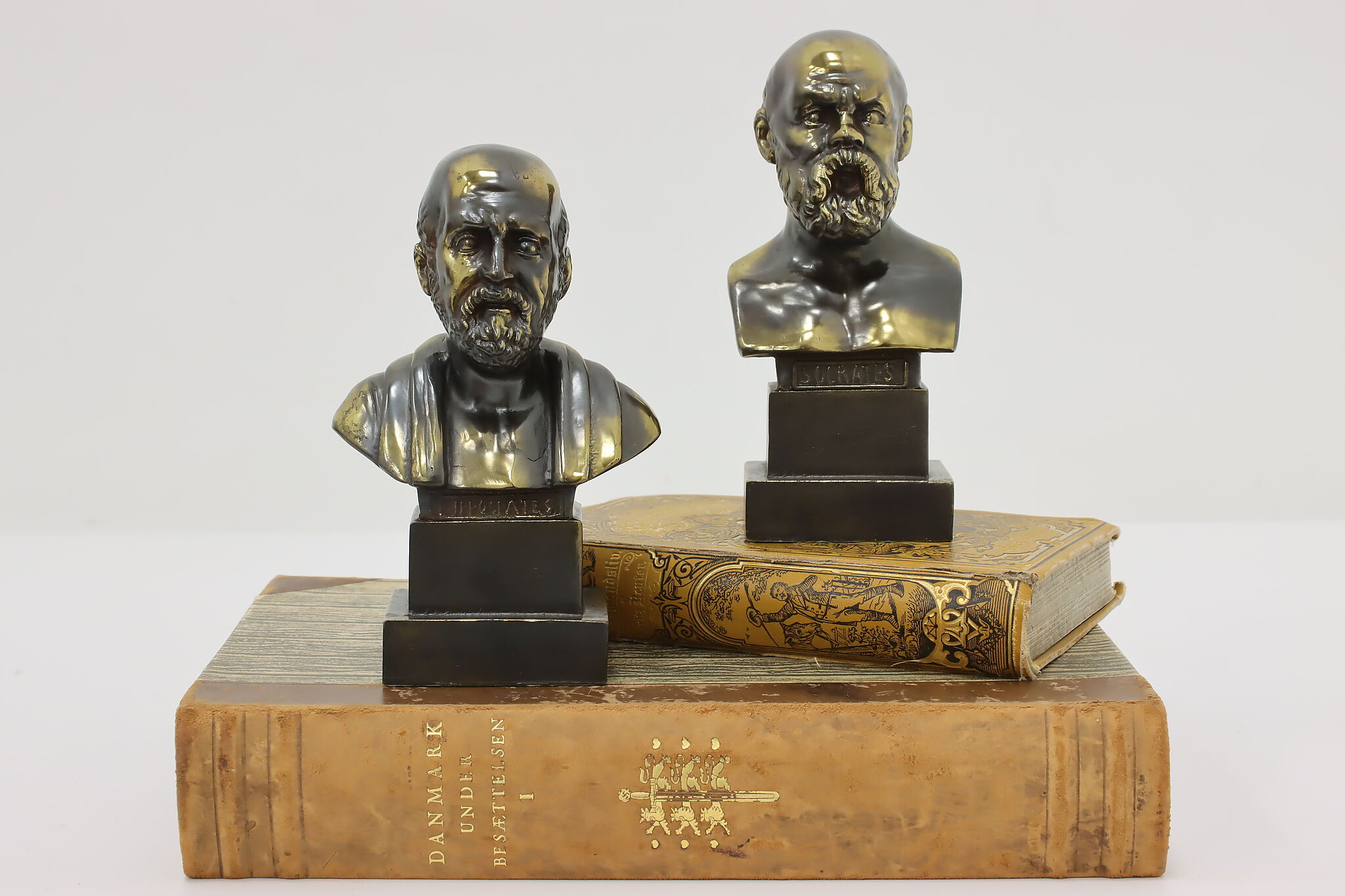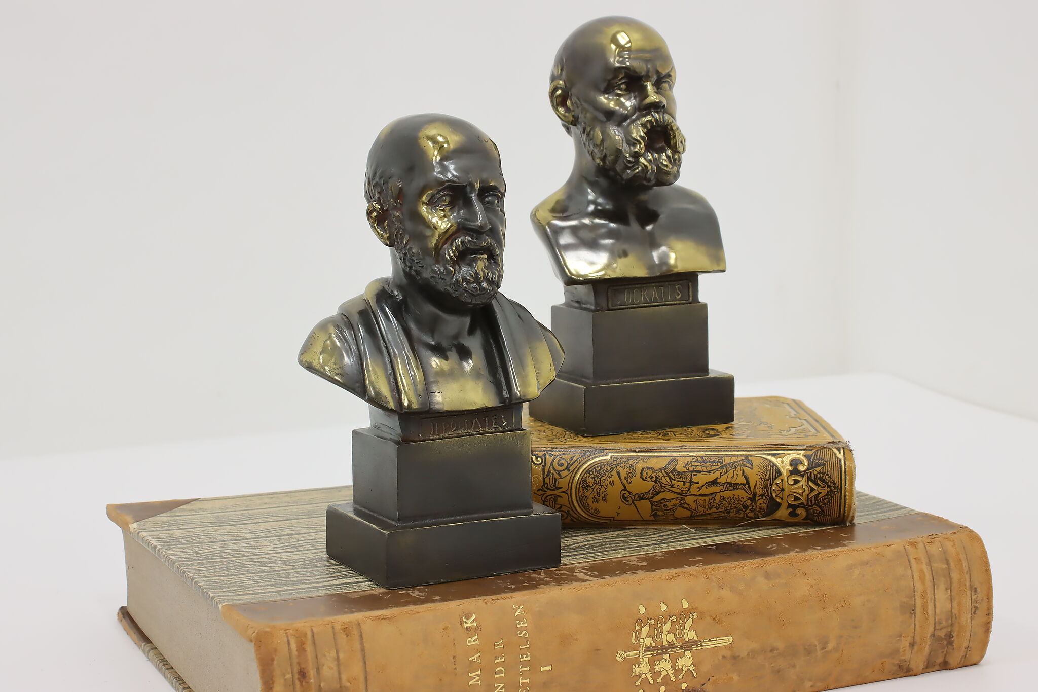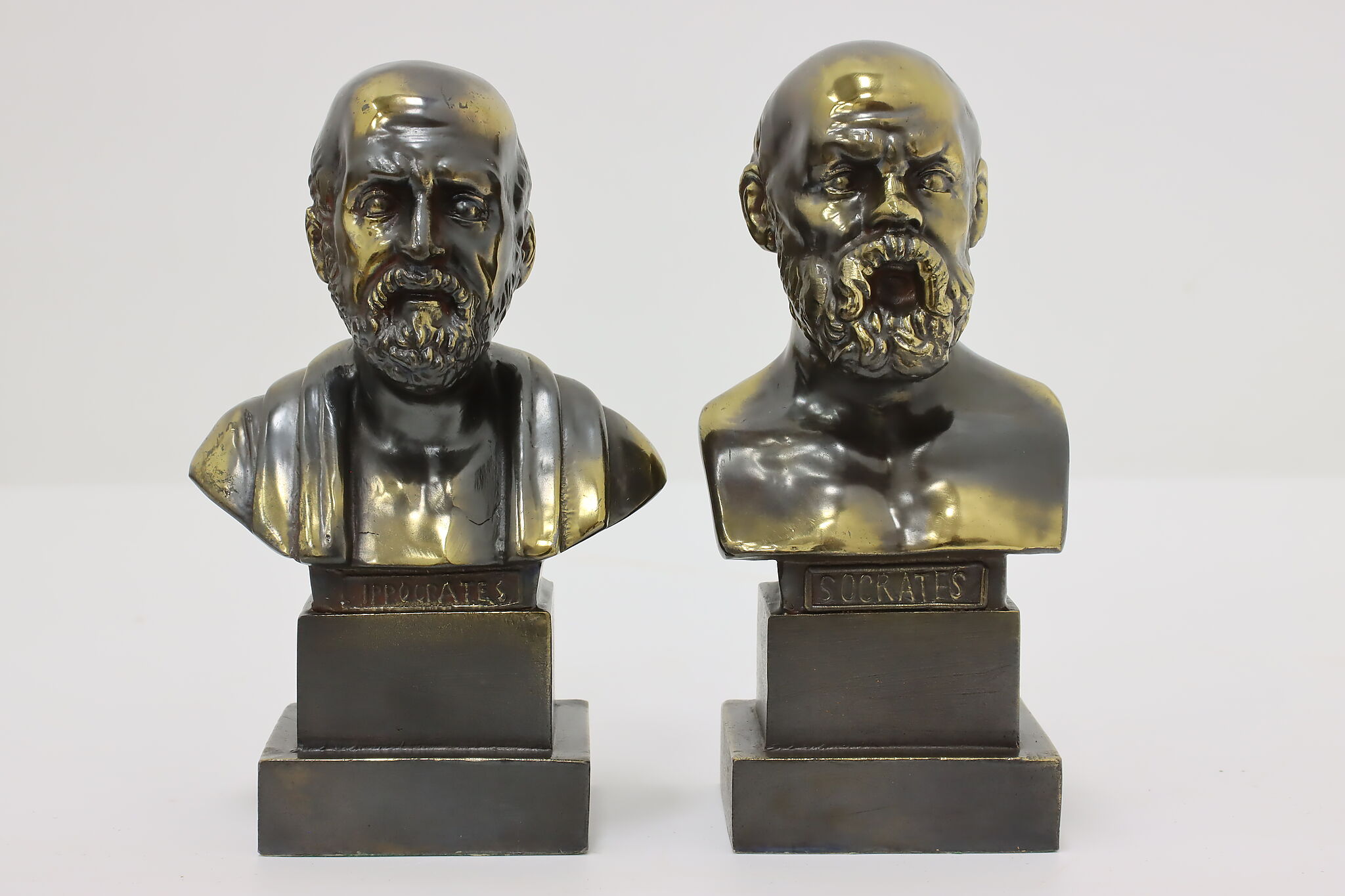 This pair of bookends are busts of famous Greek philosophers, Hippocrates and Socrates.