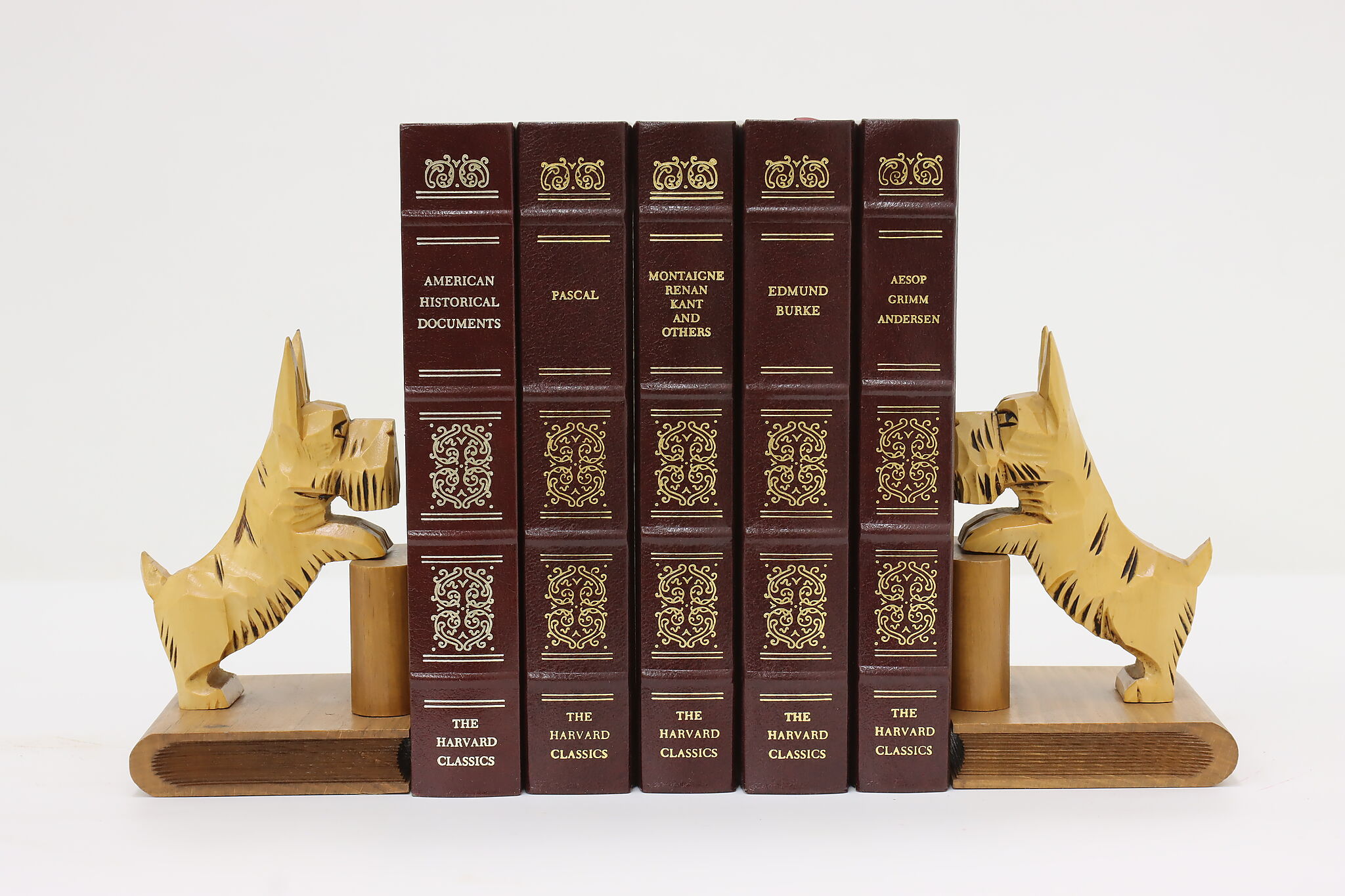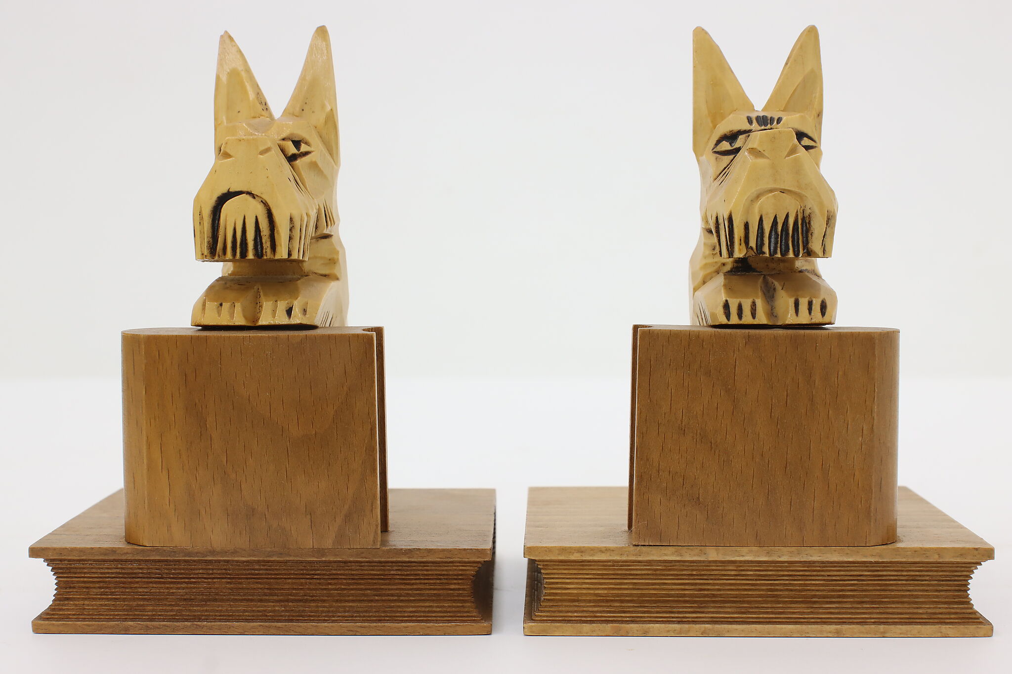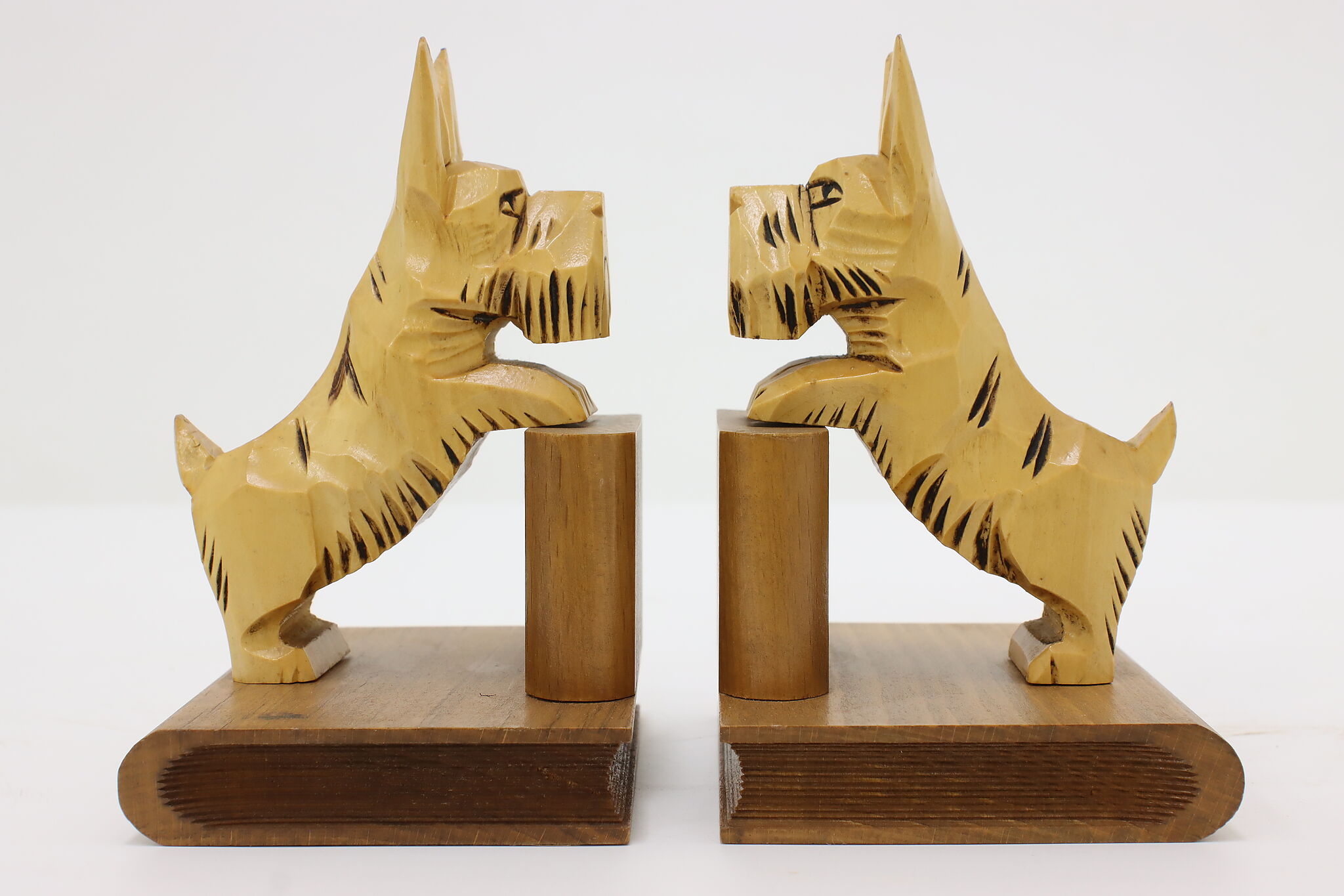 An utterly darling pair of bookends are sculptures of Scottish Terrier dogs standing on books!