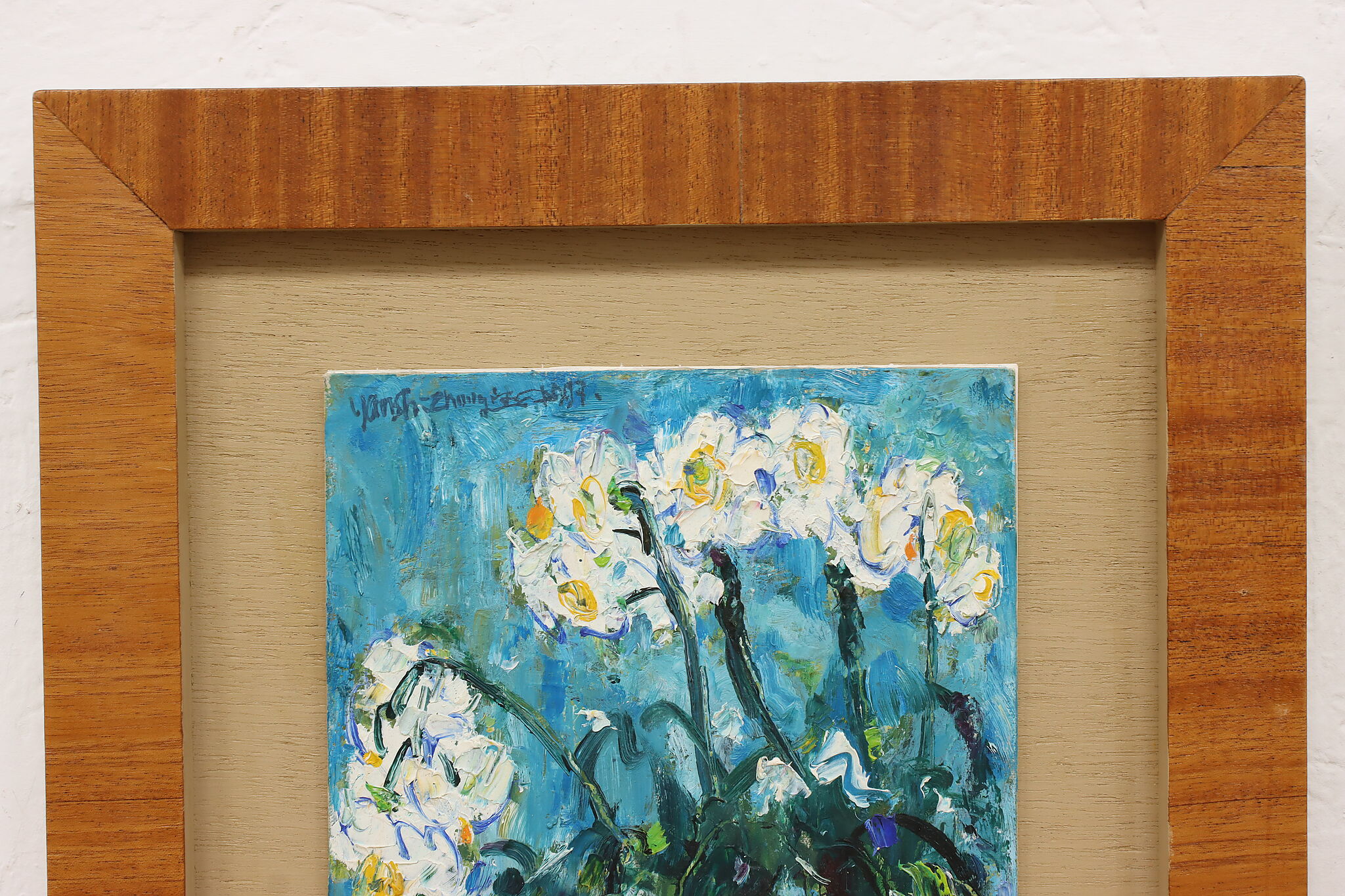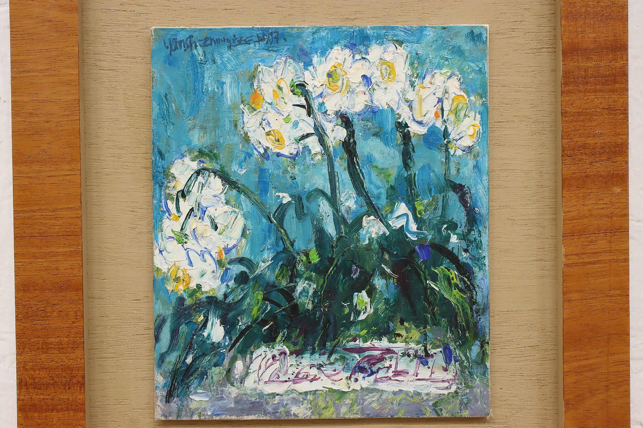 This pair of impressionist flower paintings would be lovely in a kitchen or bath.