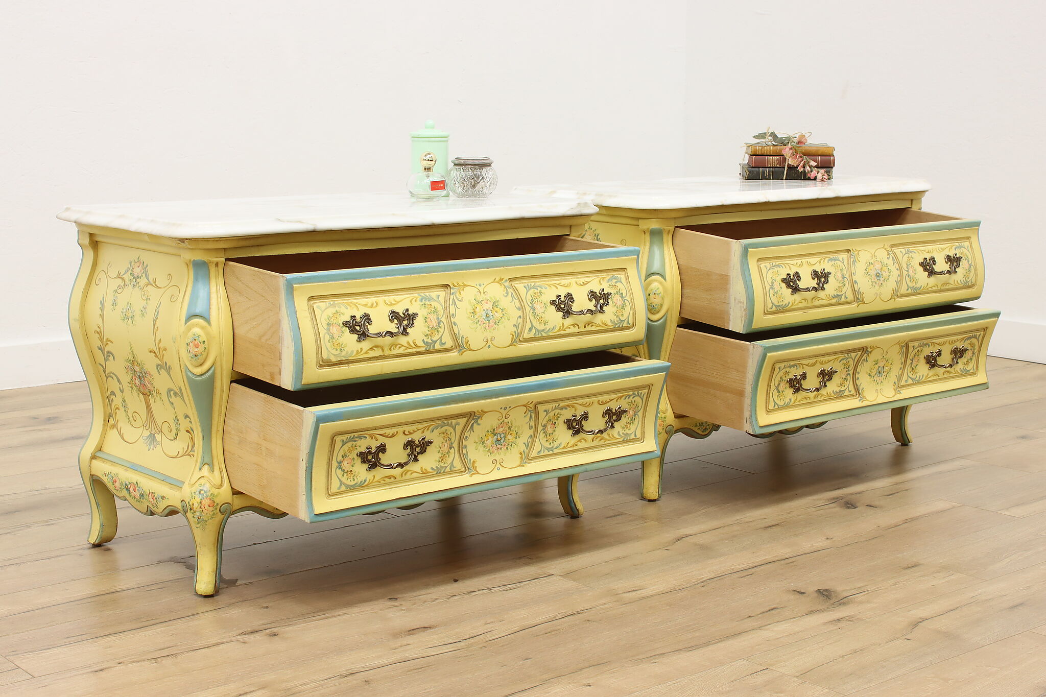This pair of Country French design nightstands or chests would add wonderful pops of color in your home.