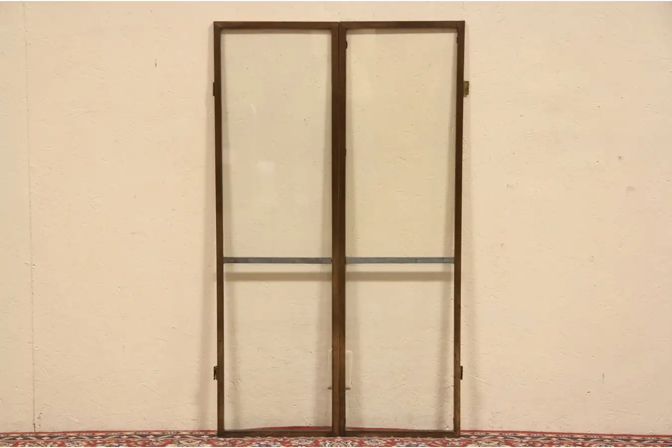 This pair of glass doors with bronze frames are architectural salvage from an early 1900's bank.