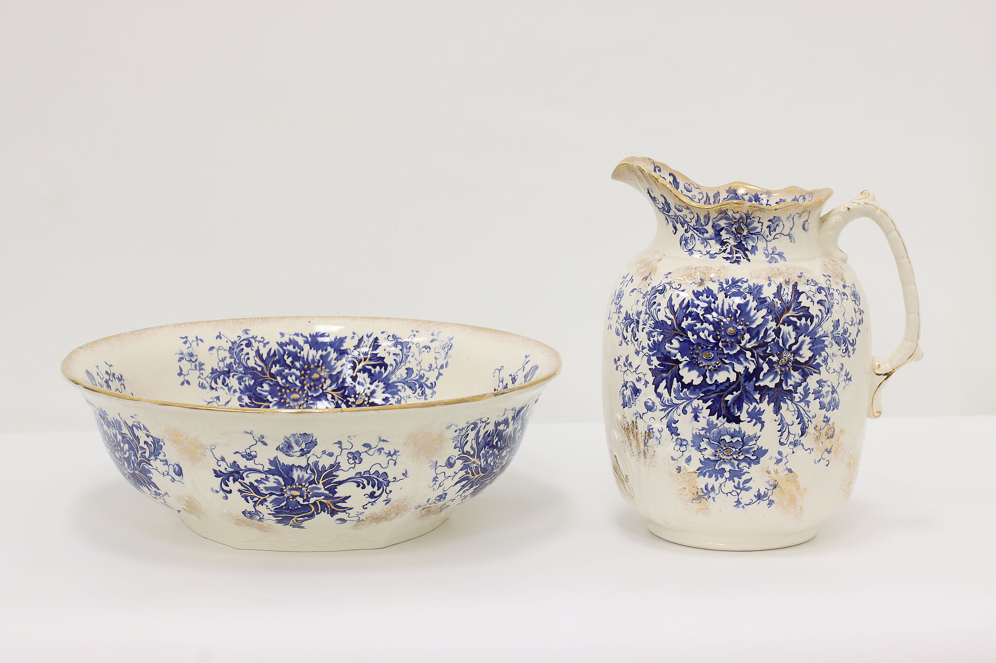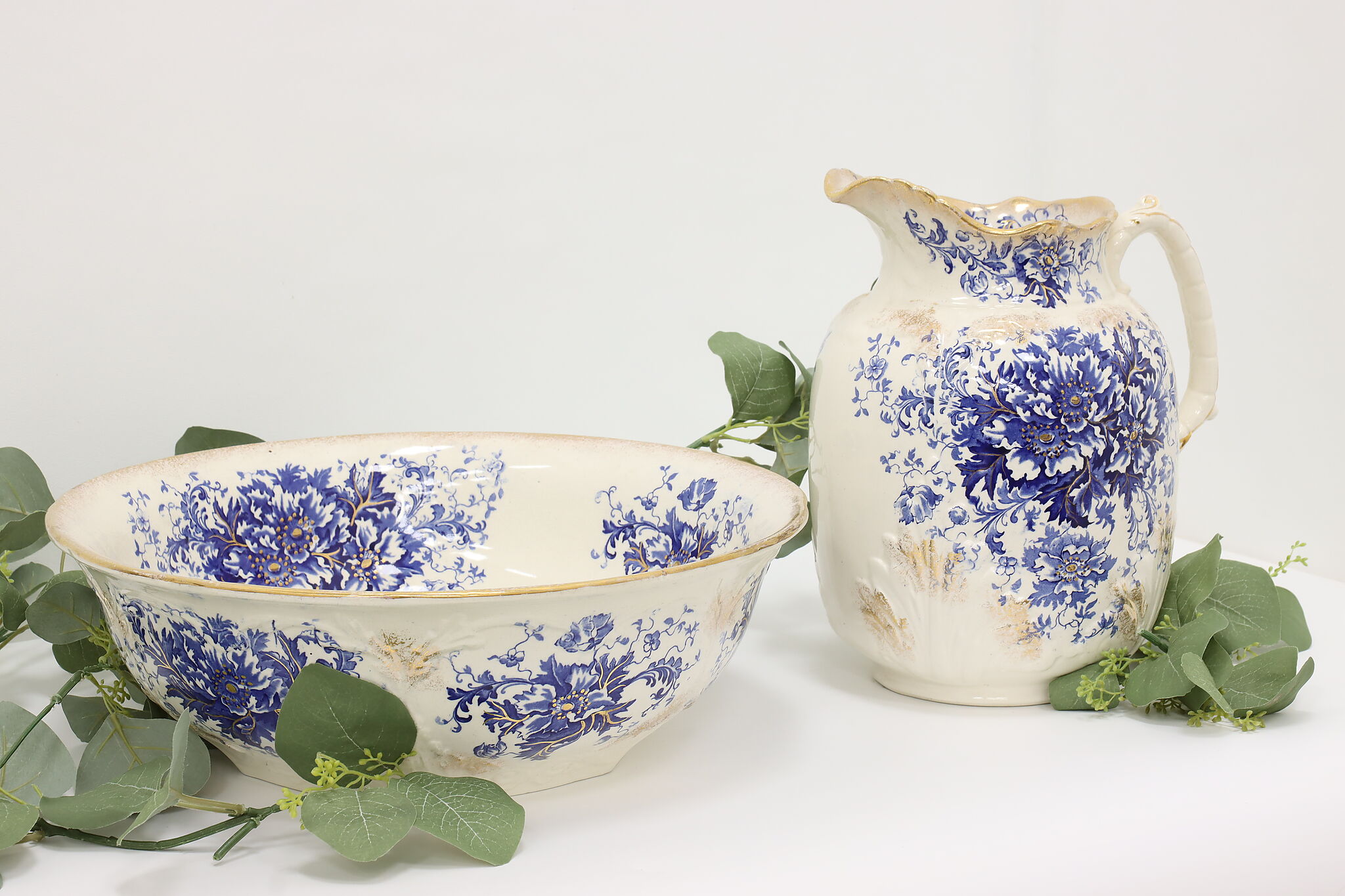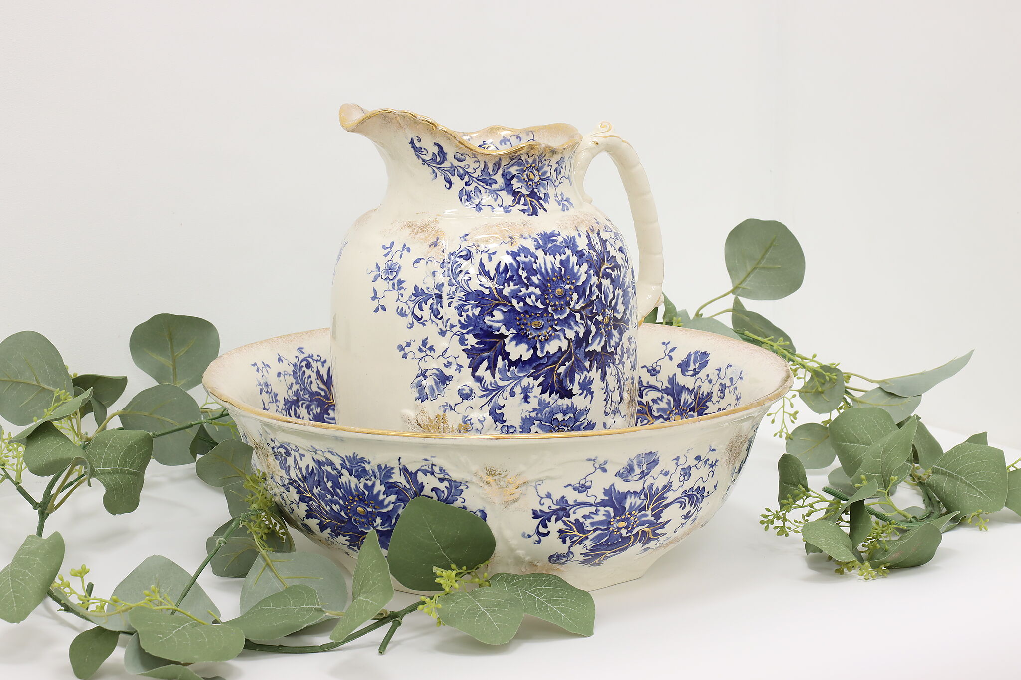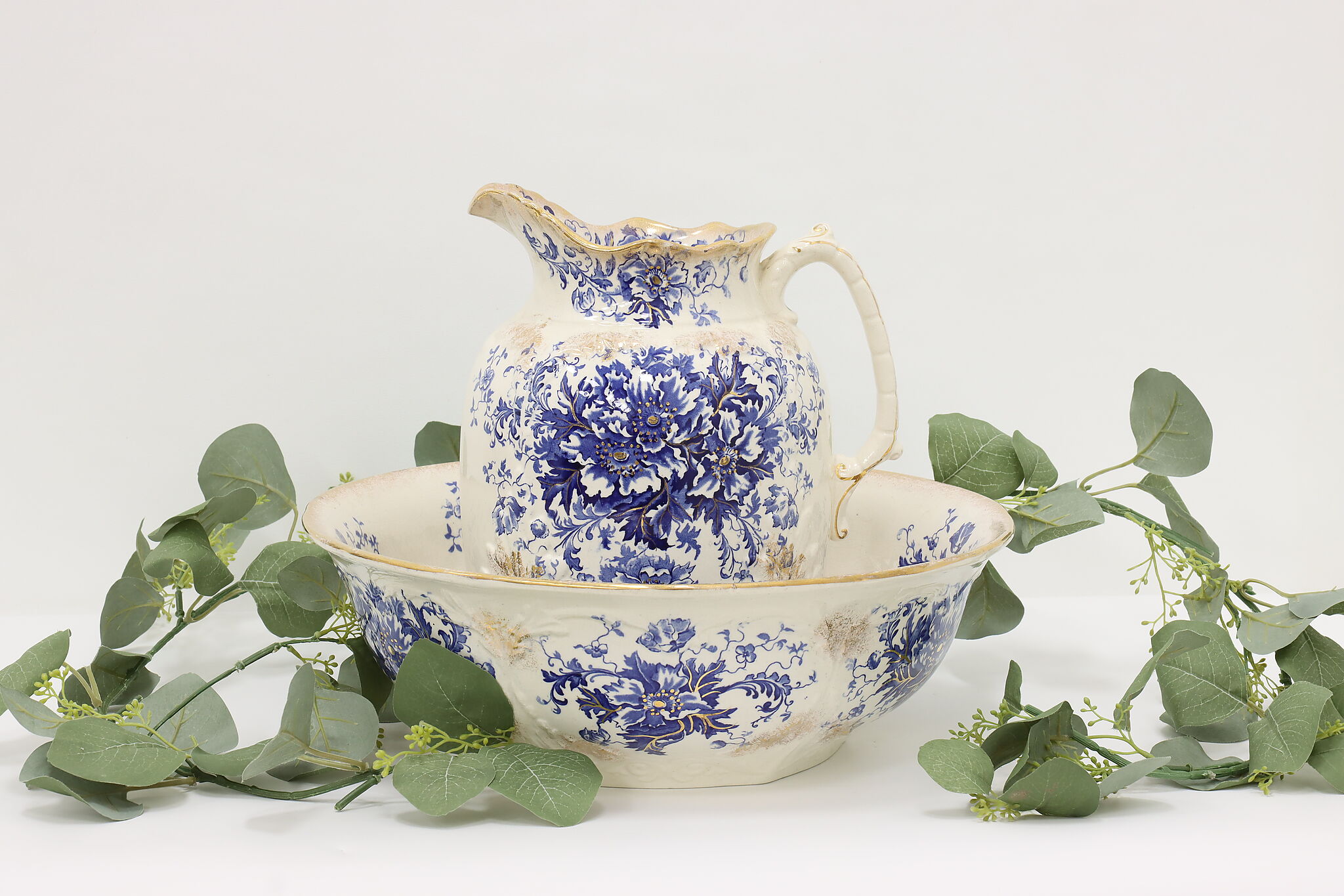 Long before indoor plumbing, this pitcher and bowl would've been placed on a console and used for daily hand and face washing. We think it could now be a lovely centerpiece filled with flowers!
