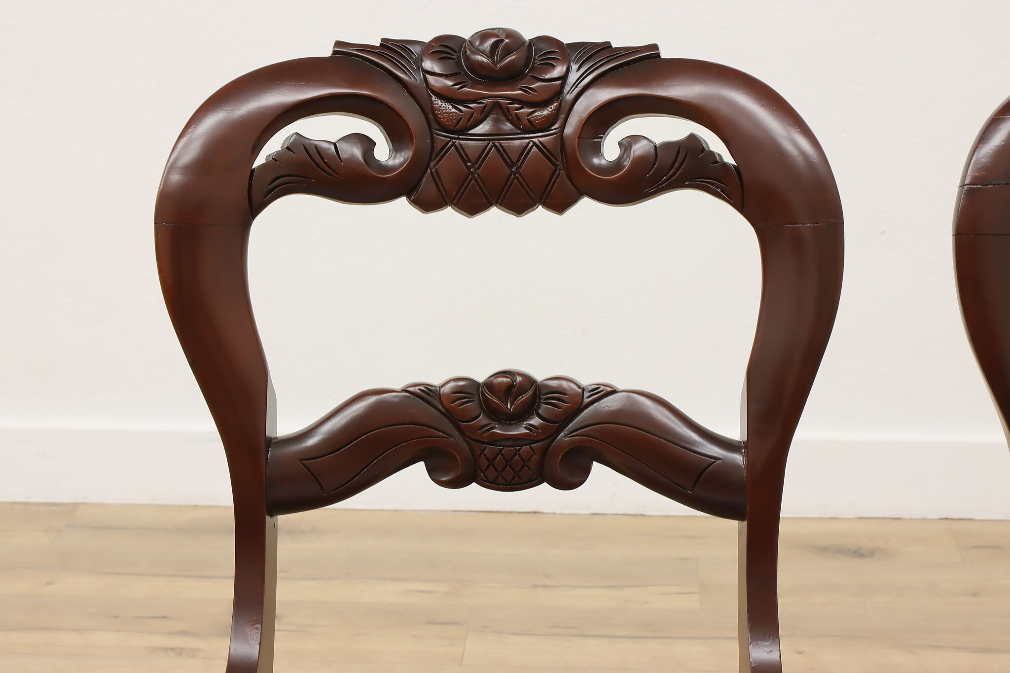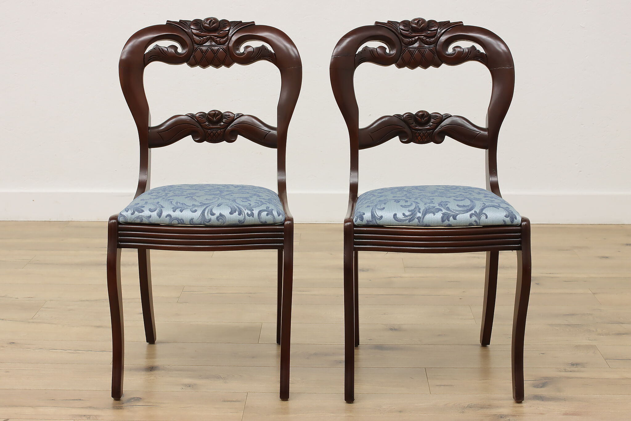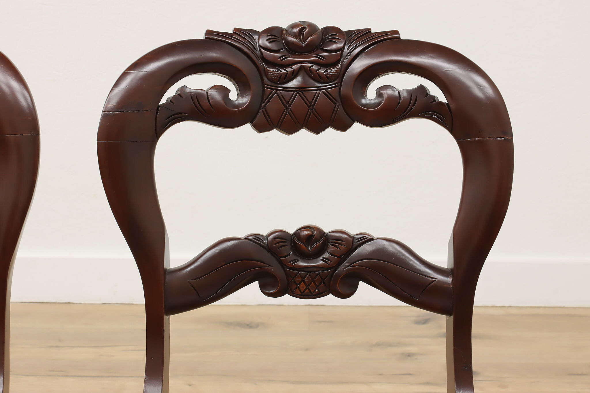 This beautifully carved pair of dining or game table chairs are signed "Styled by Park."