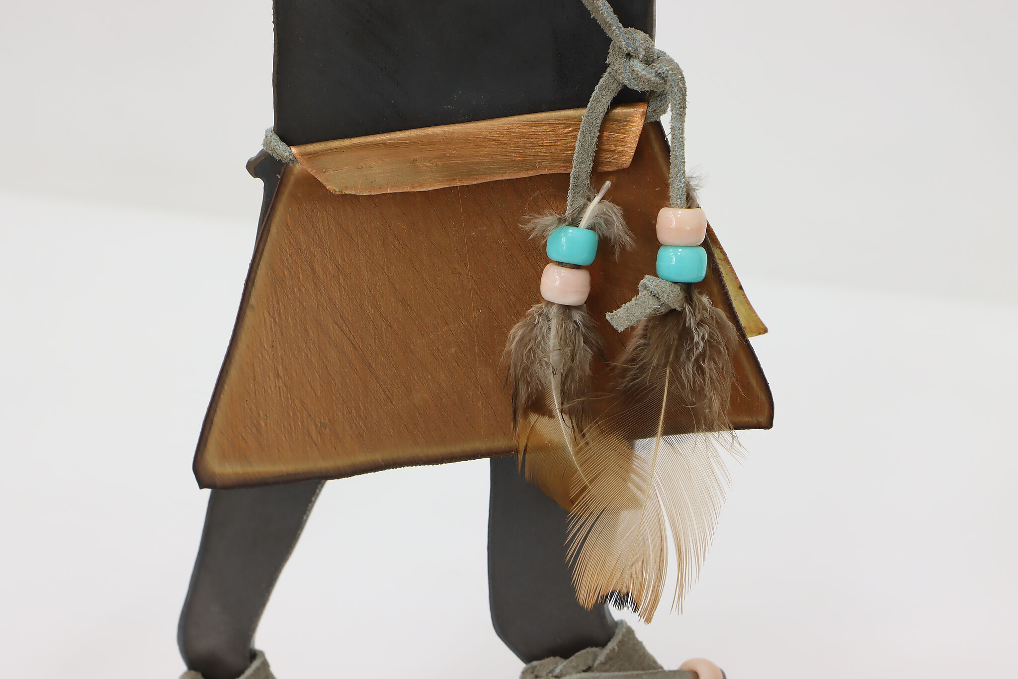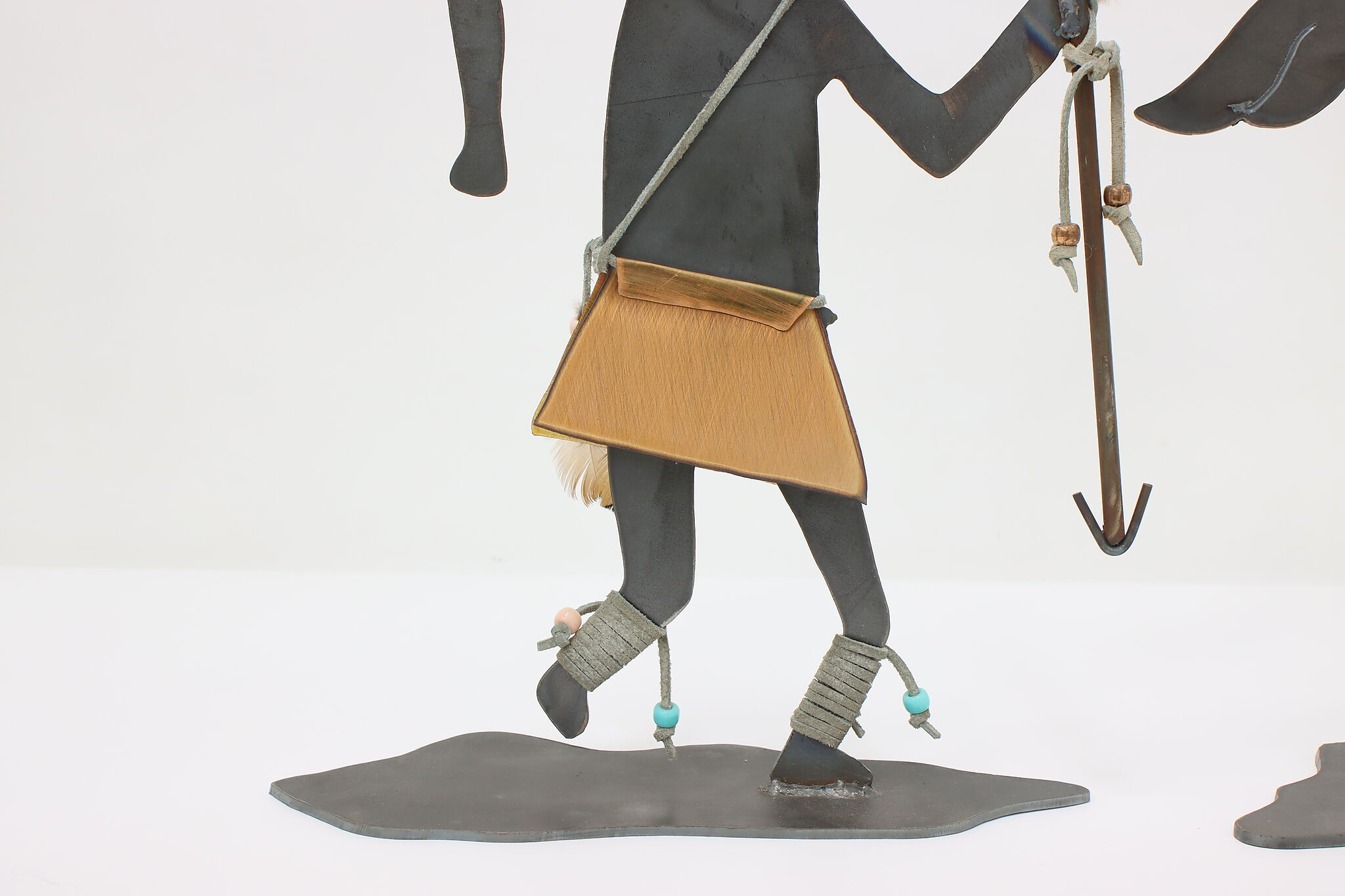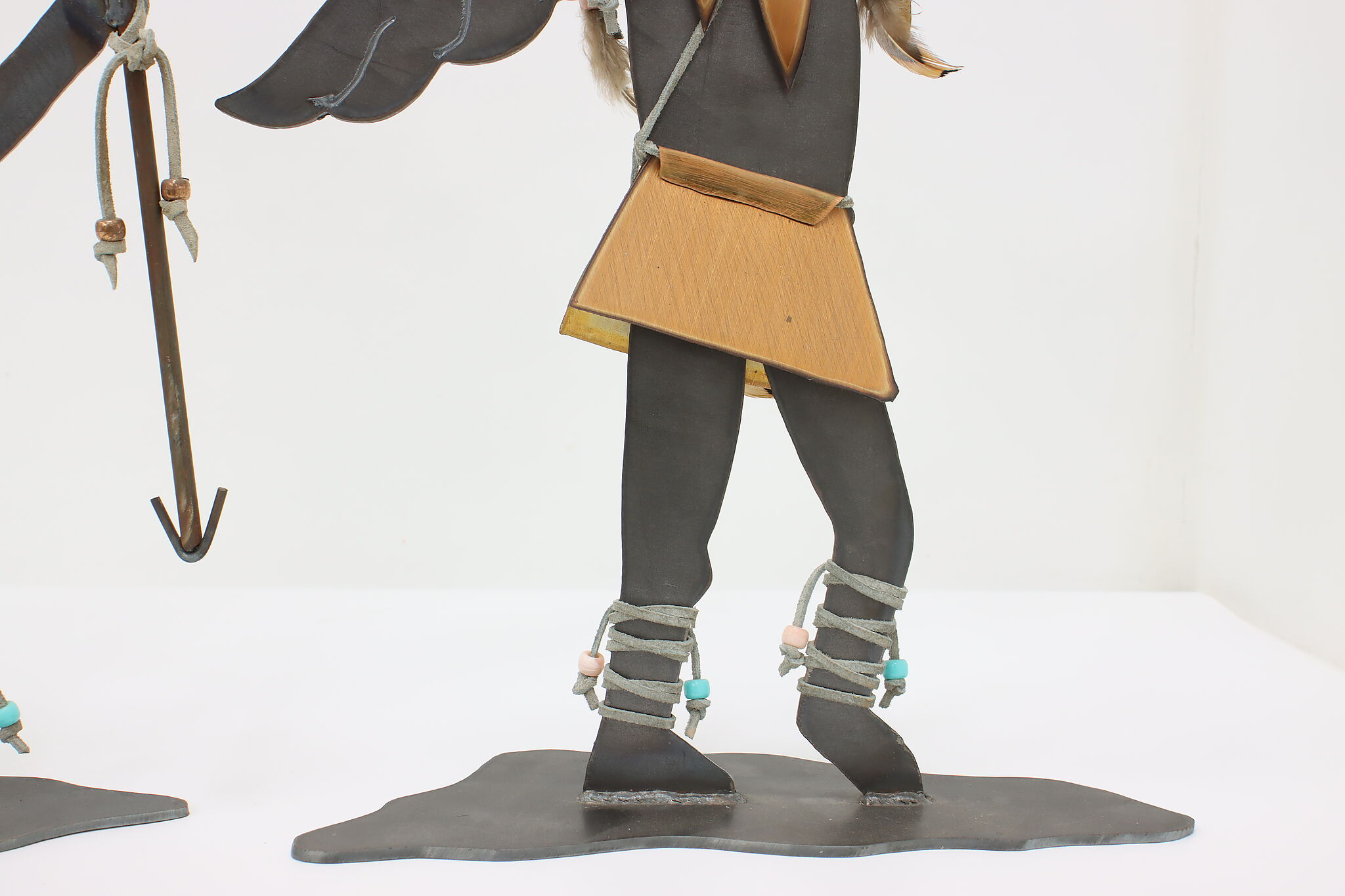 This pair of Native American sculptures are traditional Kachina figures from southwestern Pueblo tribes. Kachinas are important spirit guides to the Pueblos, offering protection and guidance.