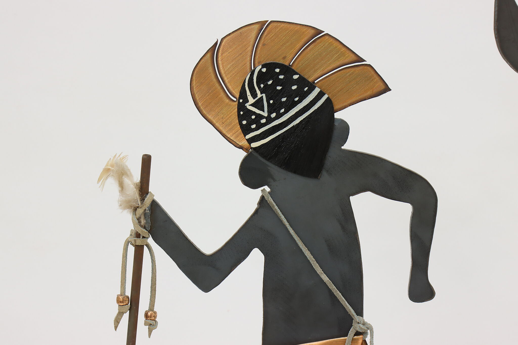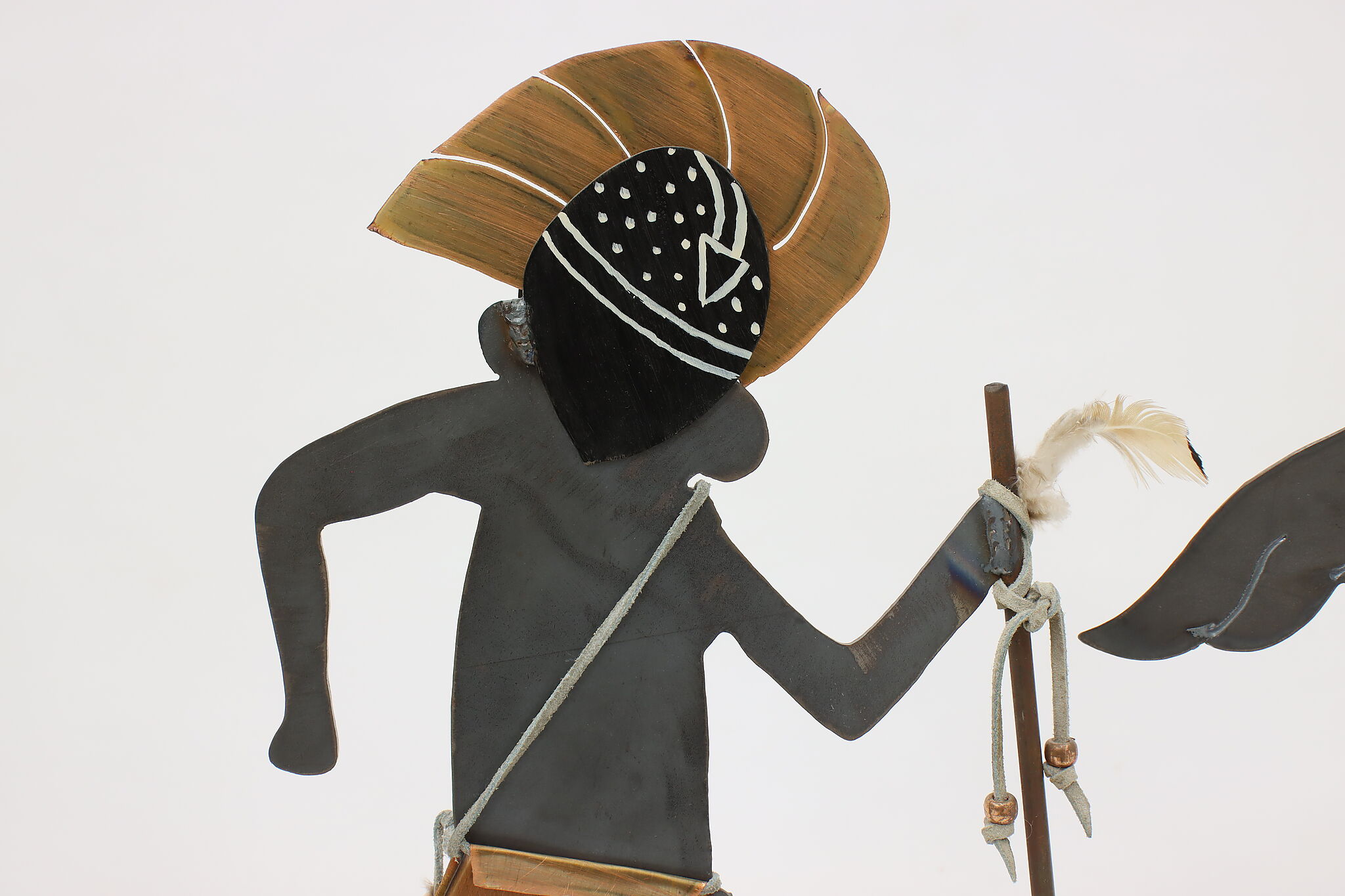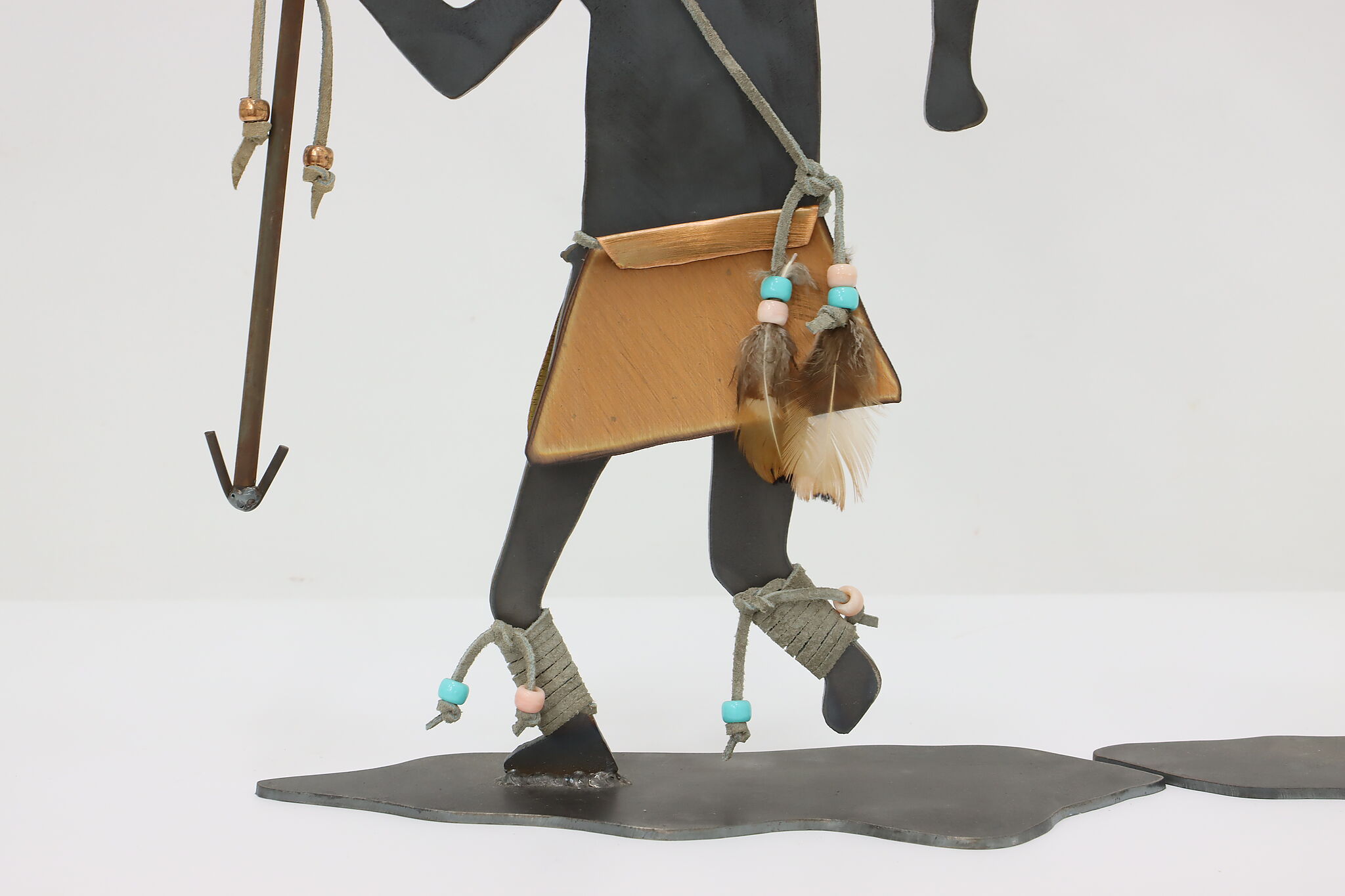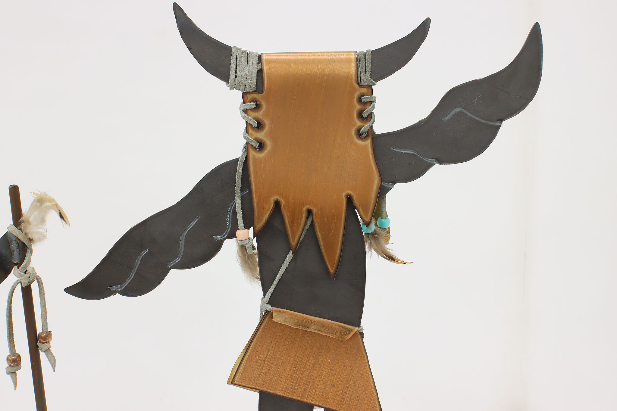 Horned figure is 13.5" wide, 4" deep and 16.5" tall. Figure with spear is 11" wide, 4" deep and 15.5" tall.