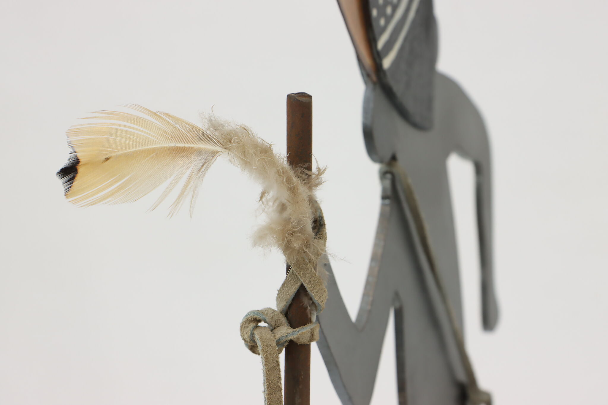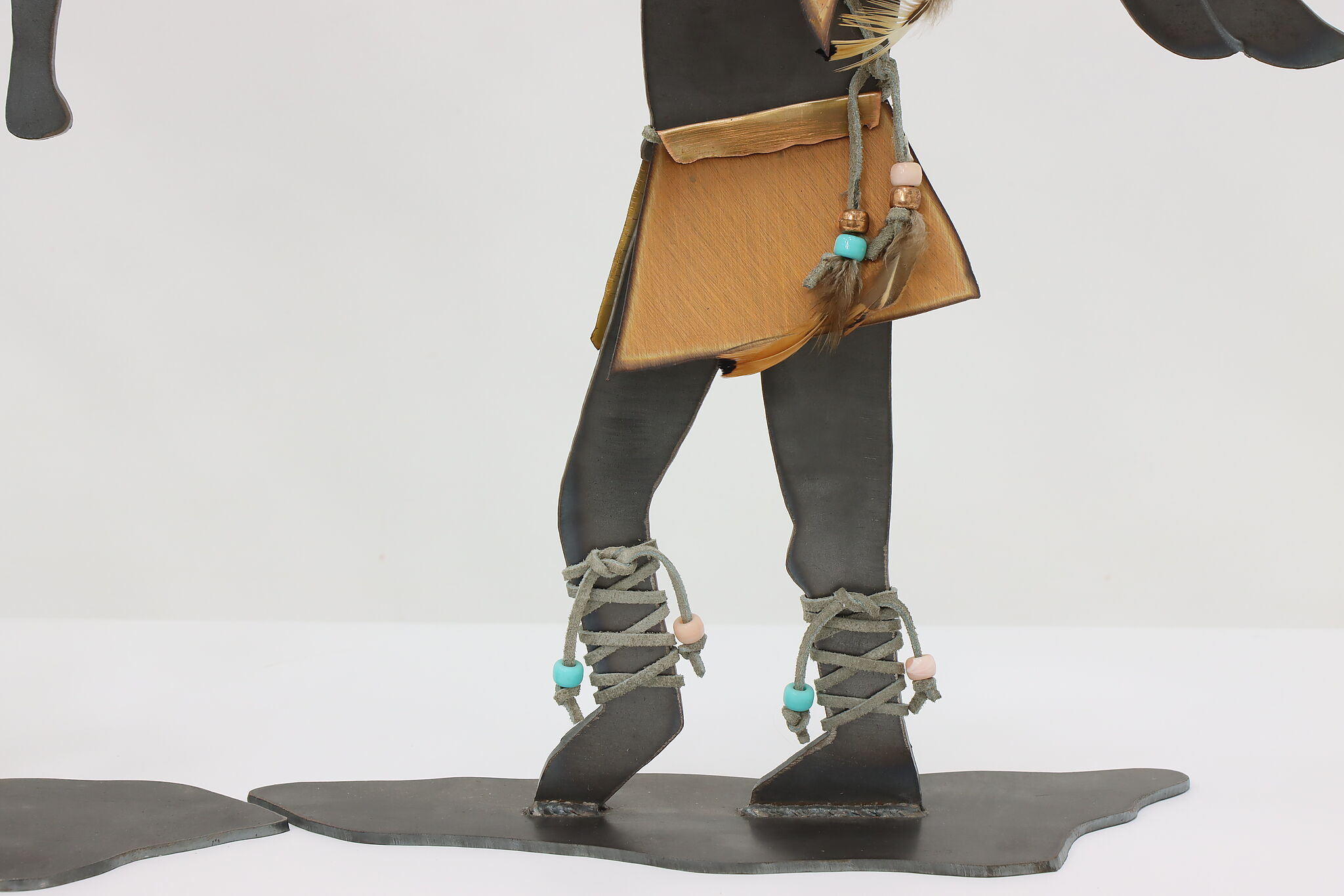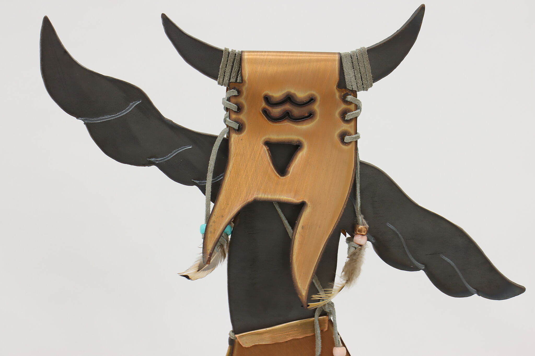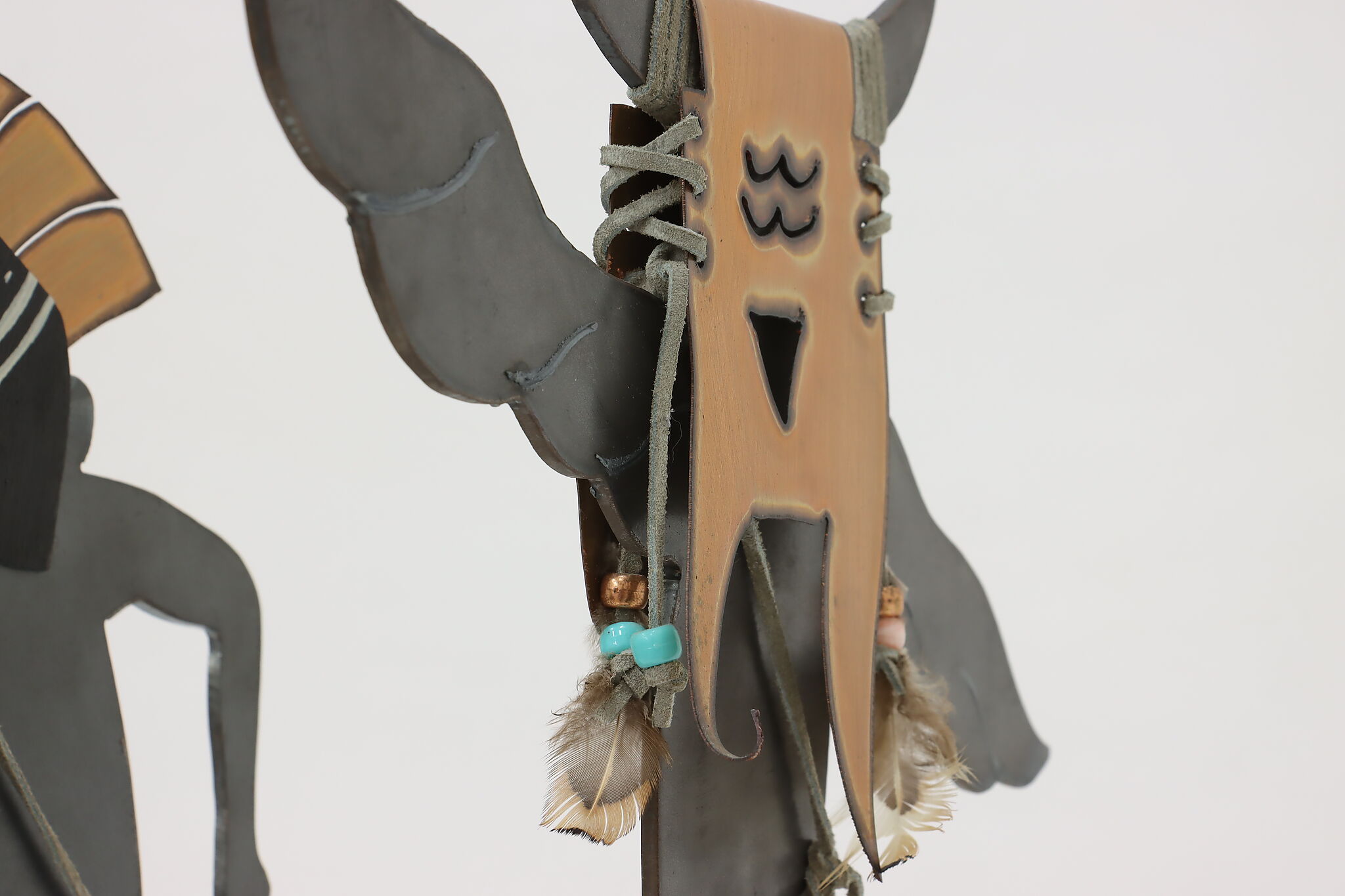 Horned figure is 13.5" wide, 4" deep and 16.5" tall. Figure with spear is 11" wide, 4" deep and 15.5" tall.