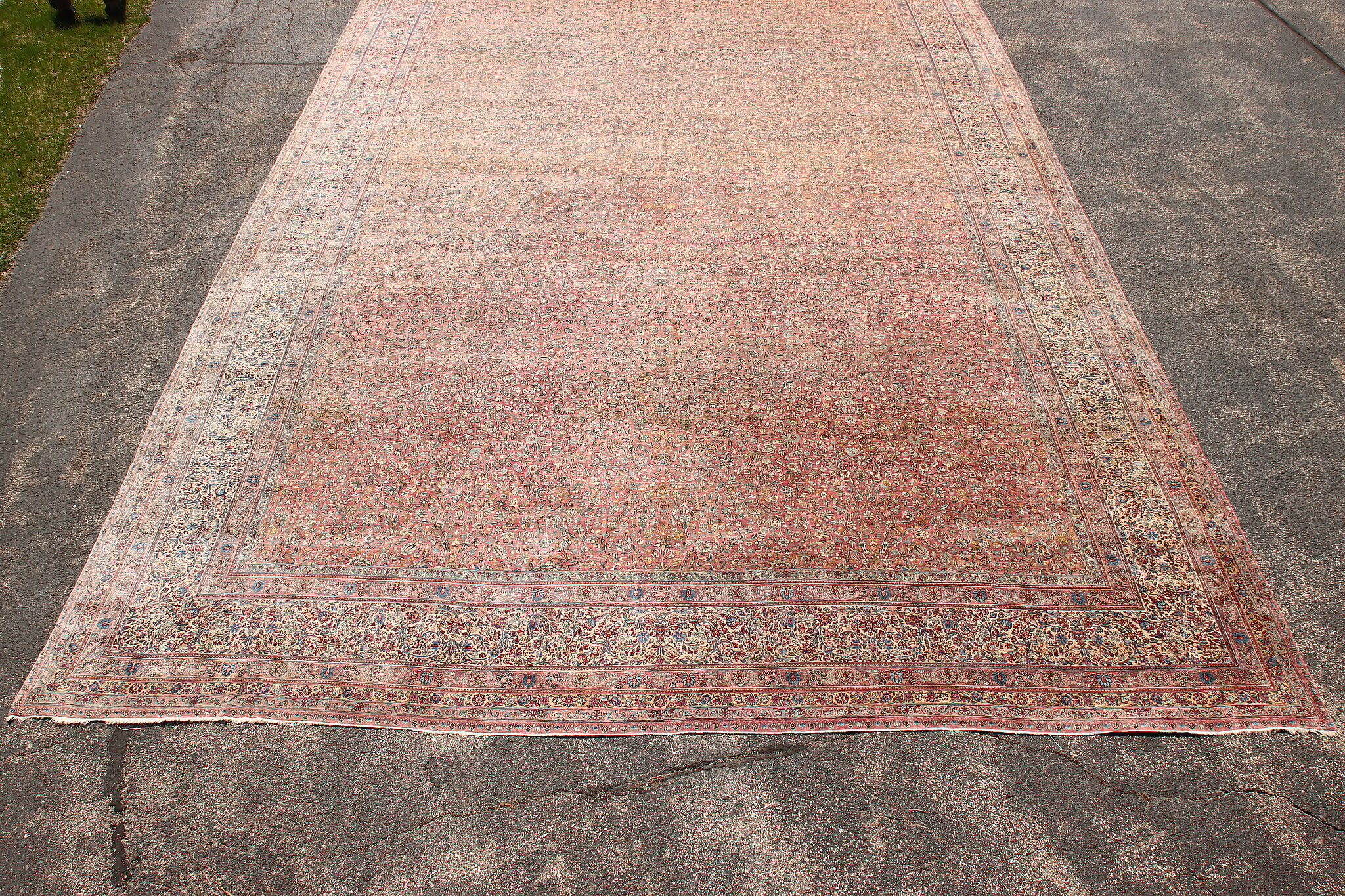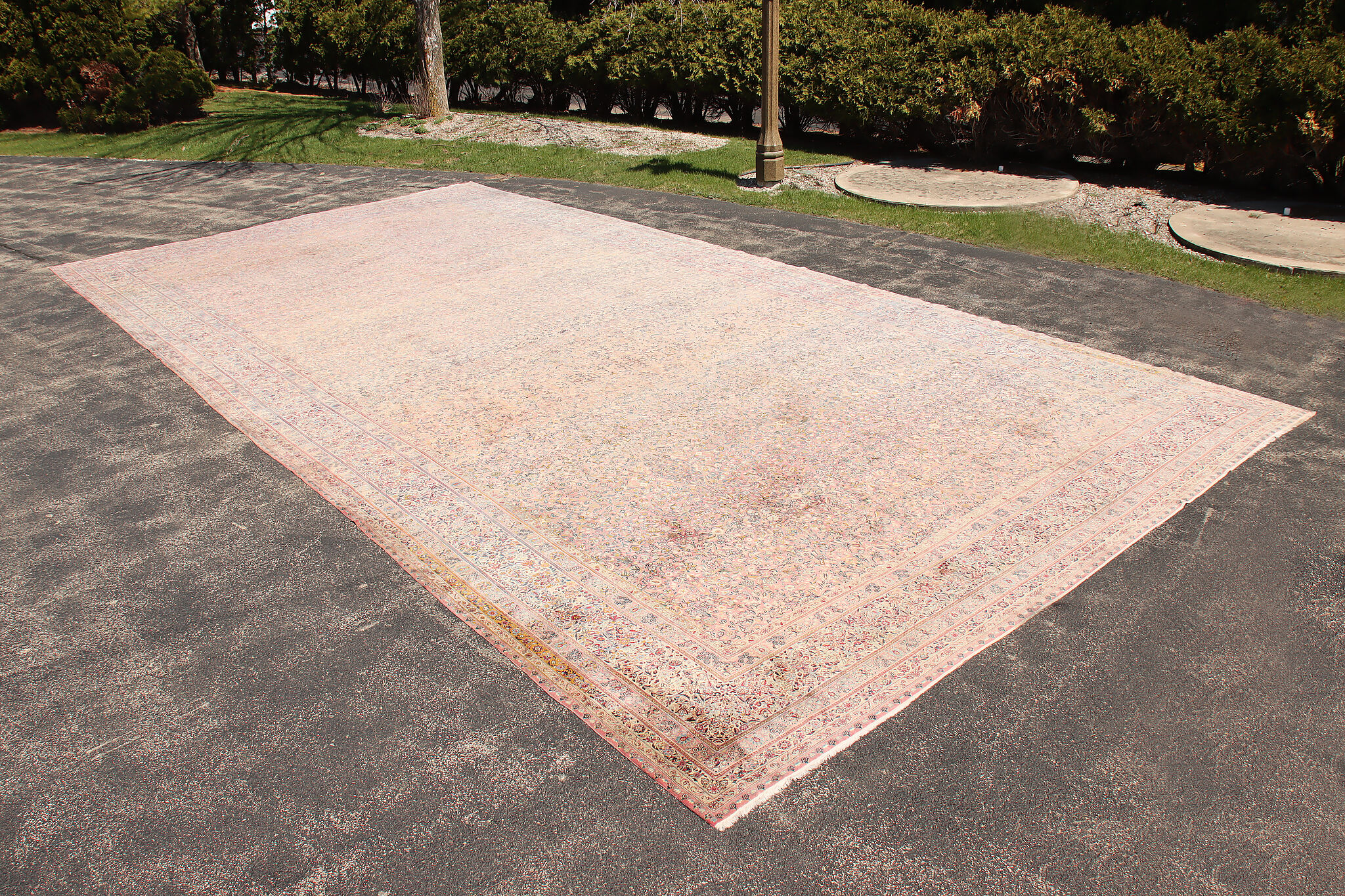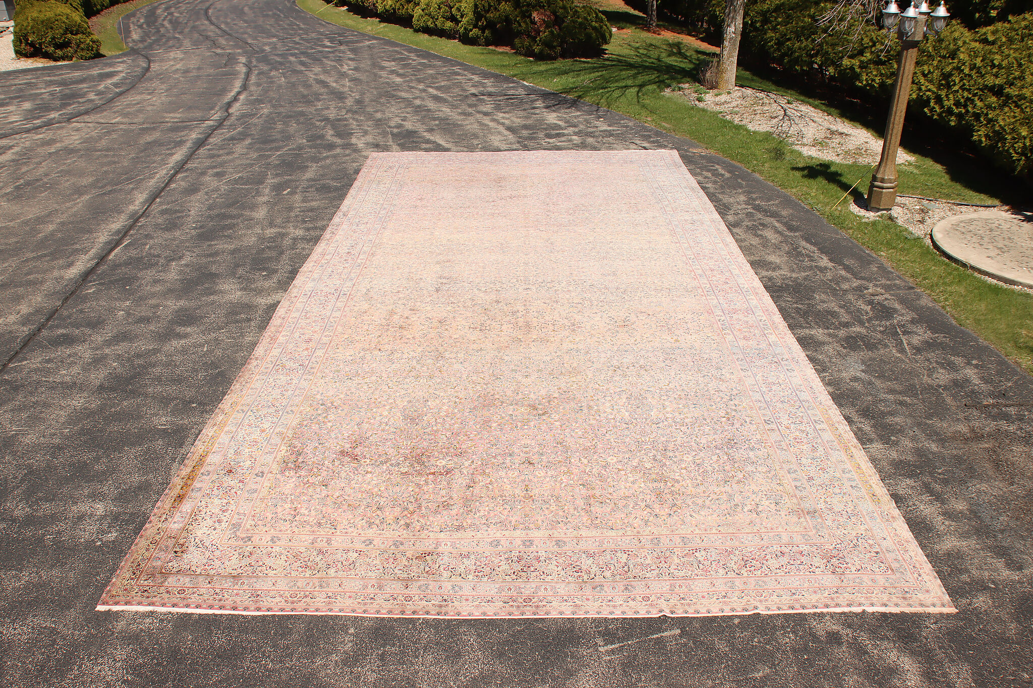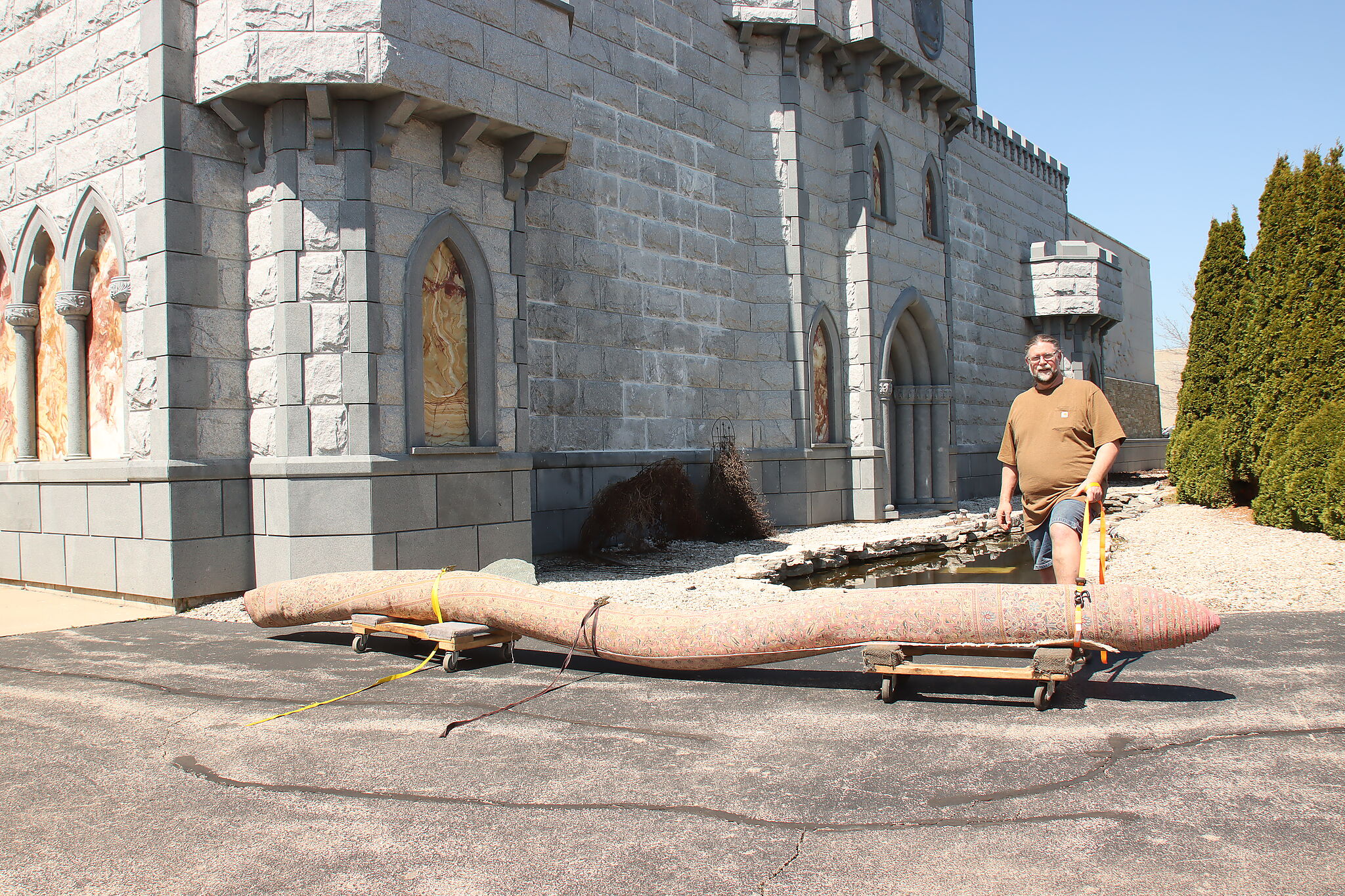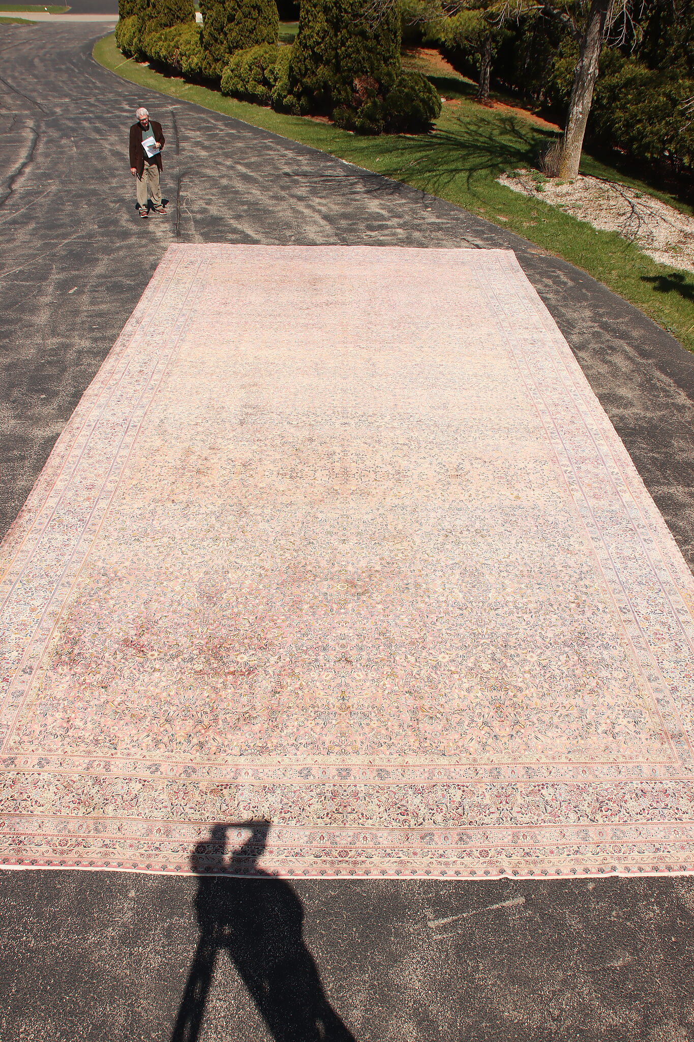 Size is 18' wide by 36' long. Rug is 14" thick when rolled up as shown.
