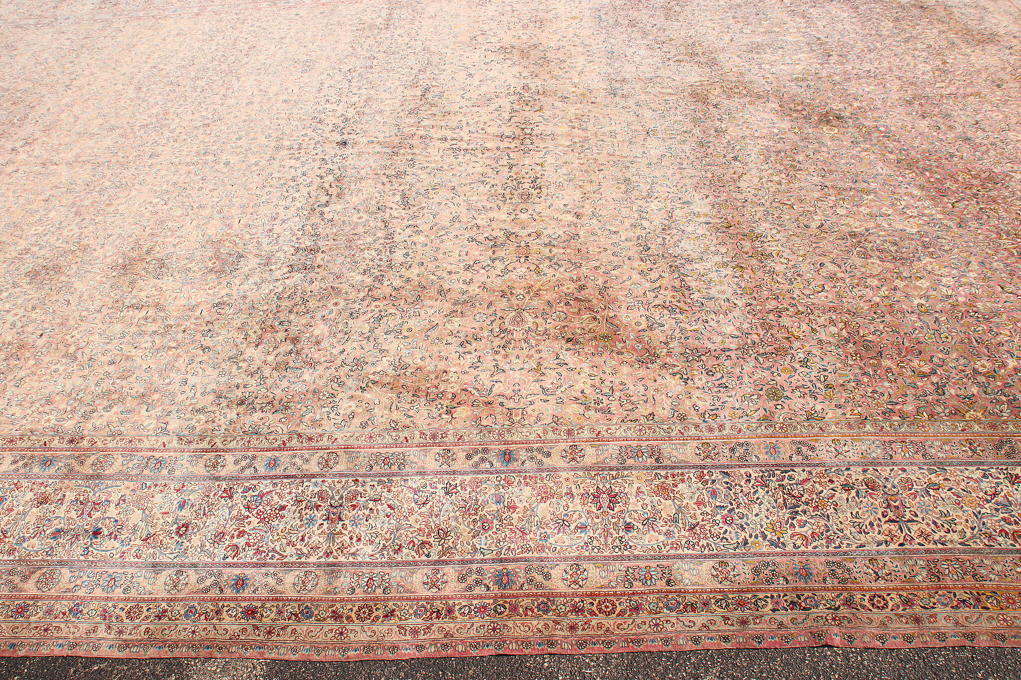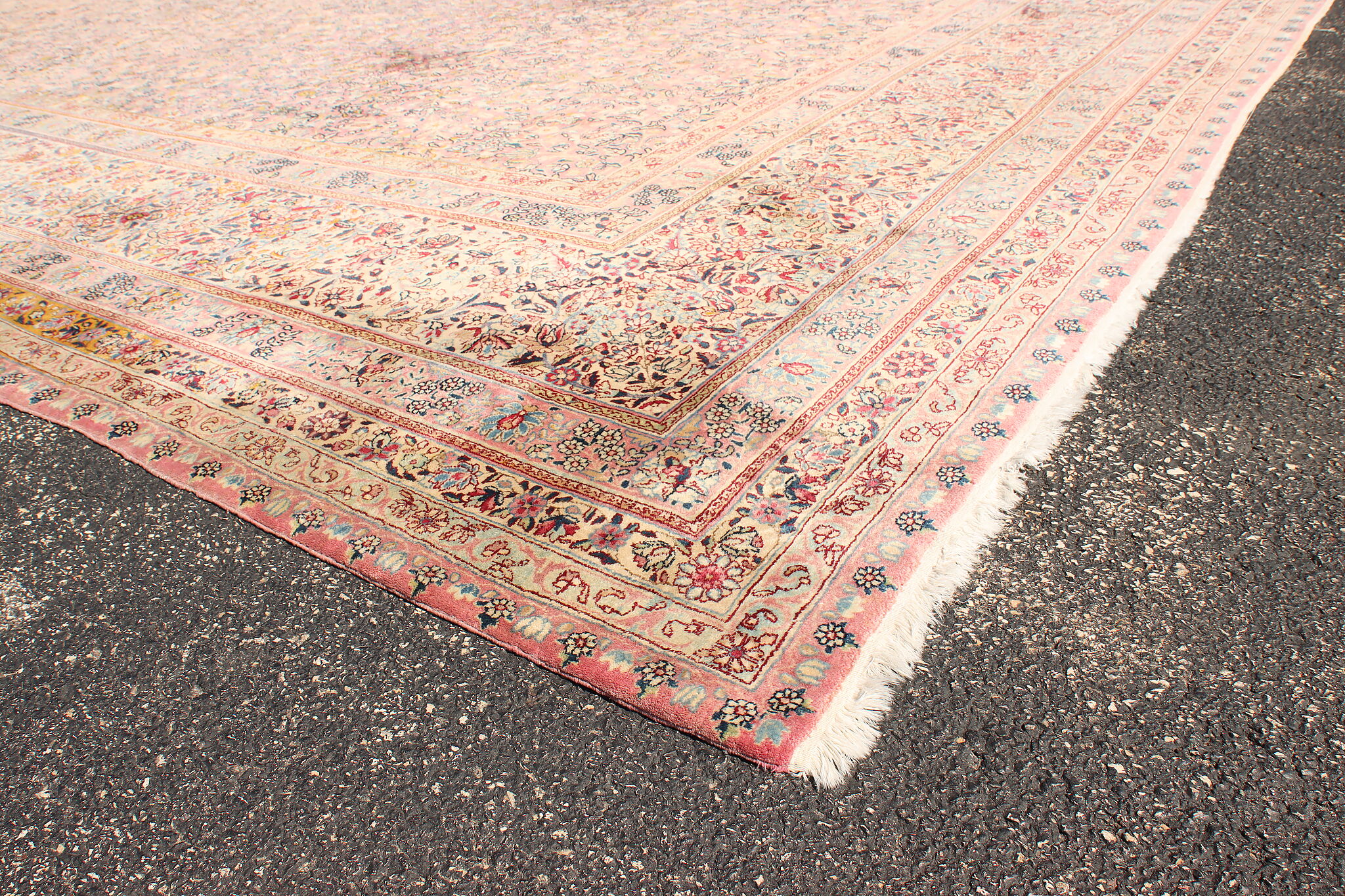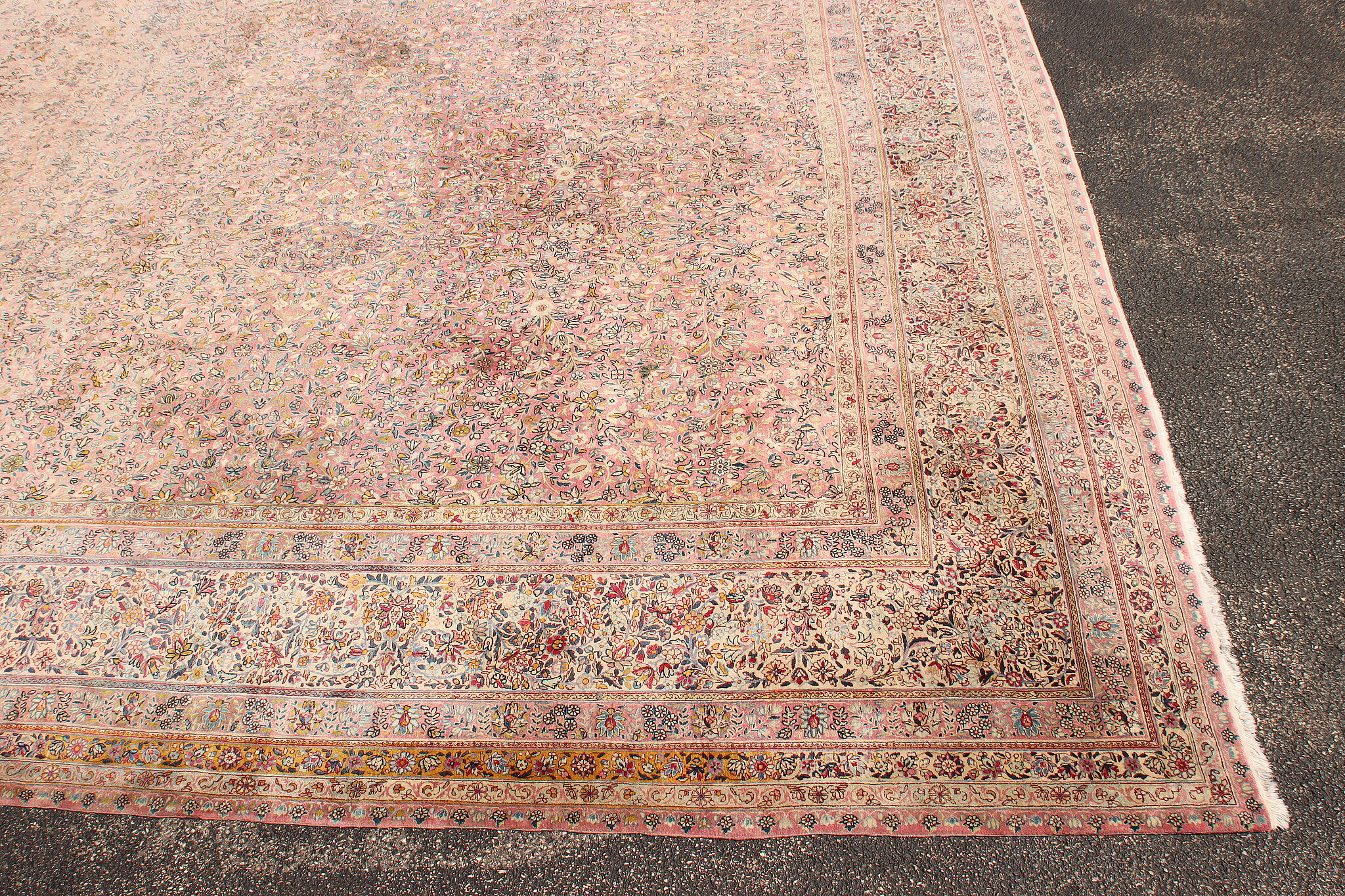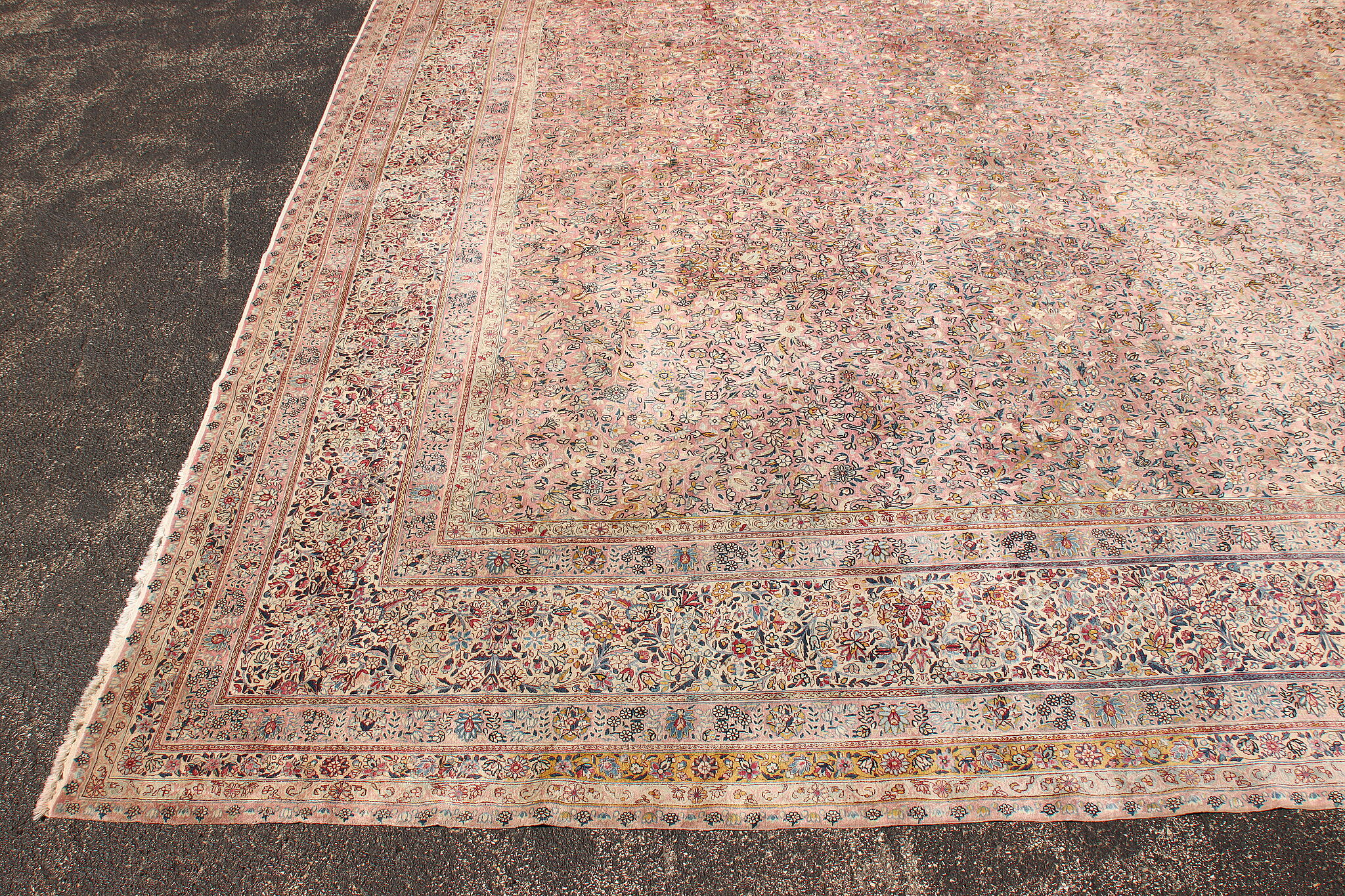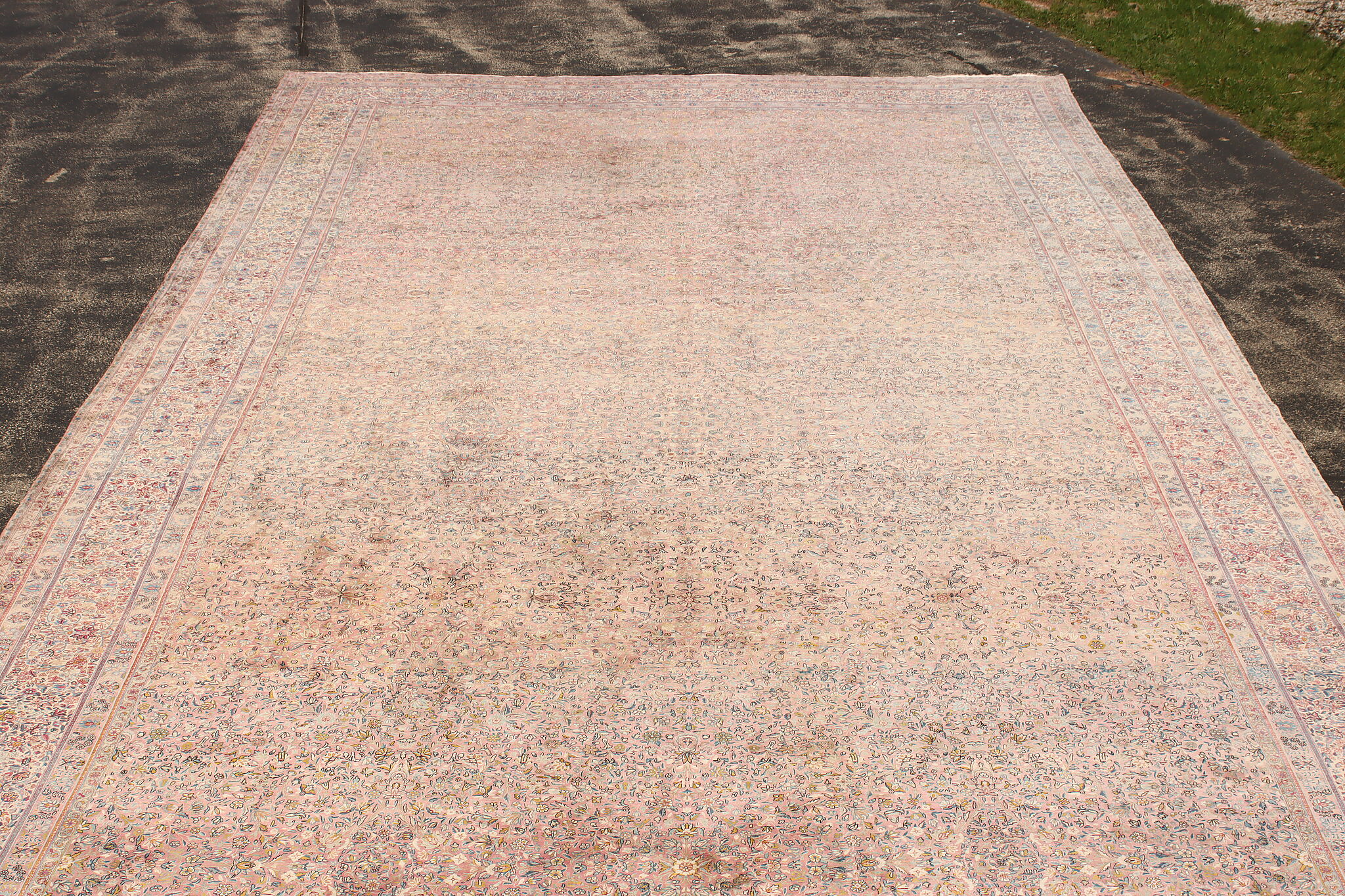 Size is 18' wide by 36' long. Rug is 14" thick when rolled up as shown.