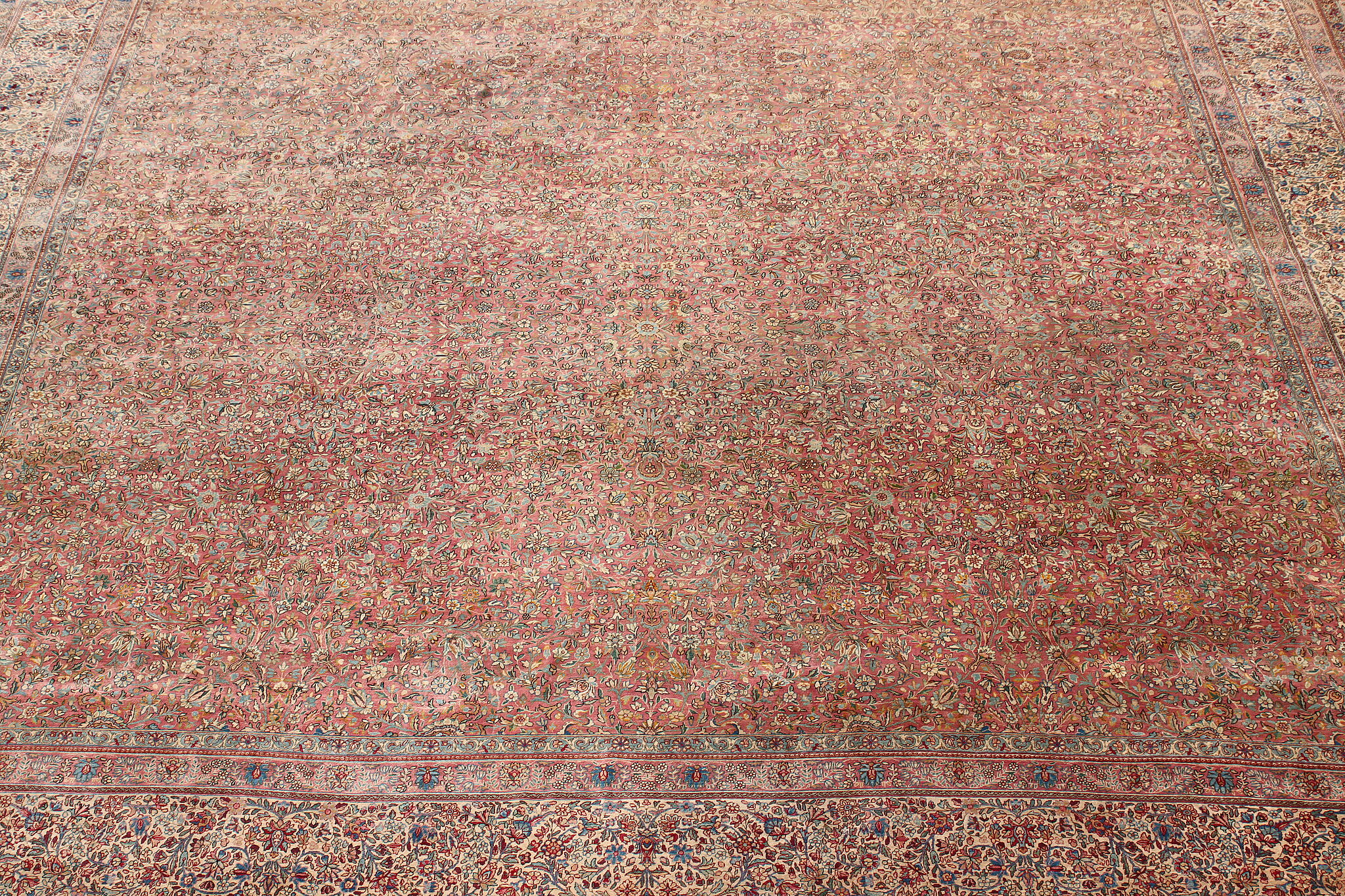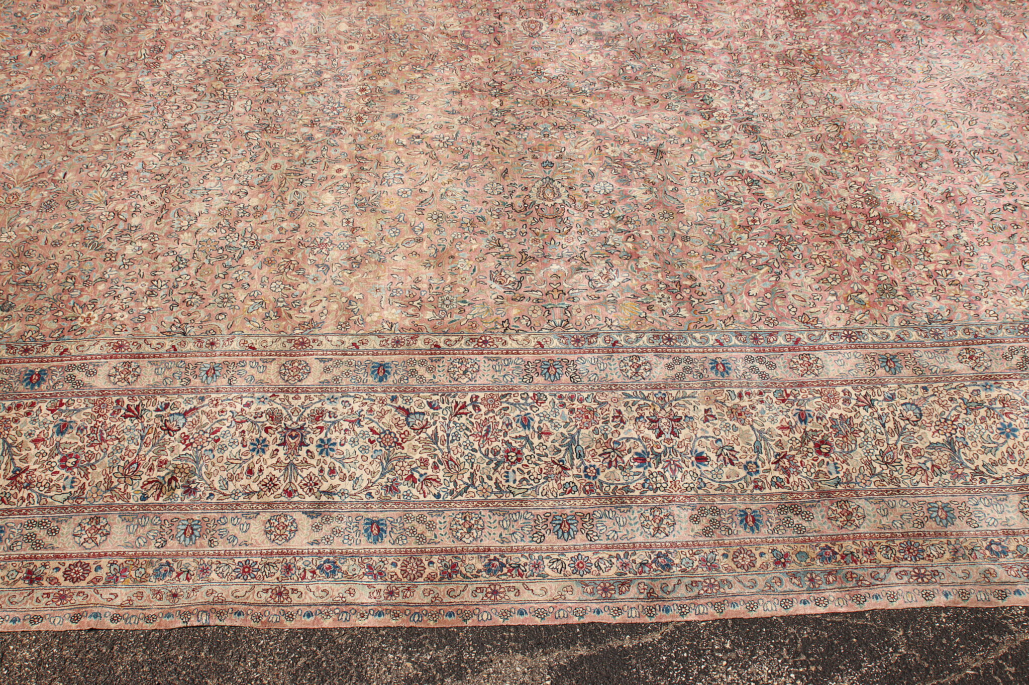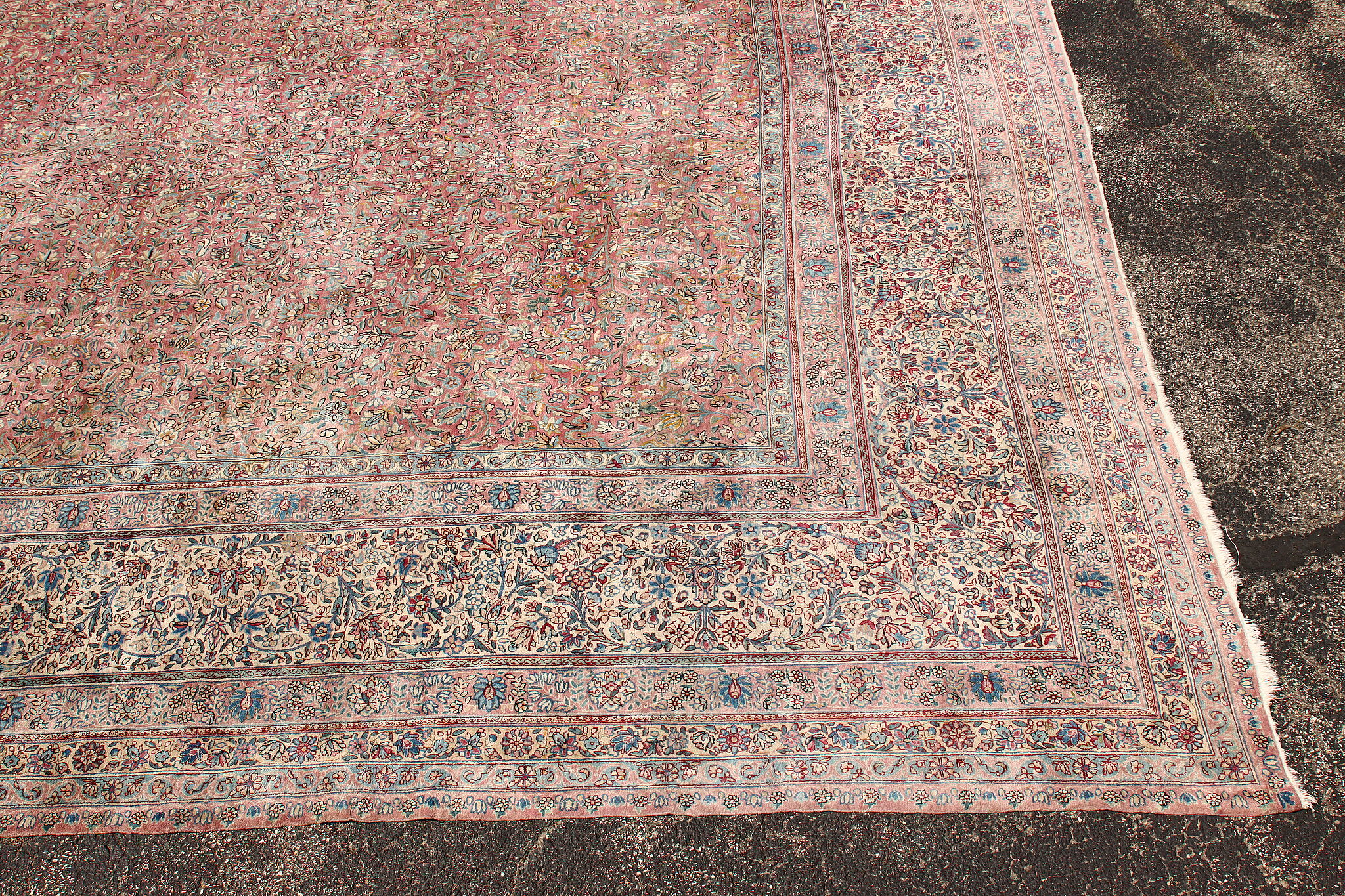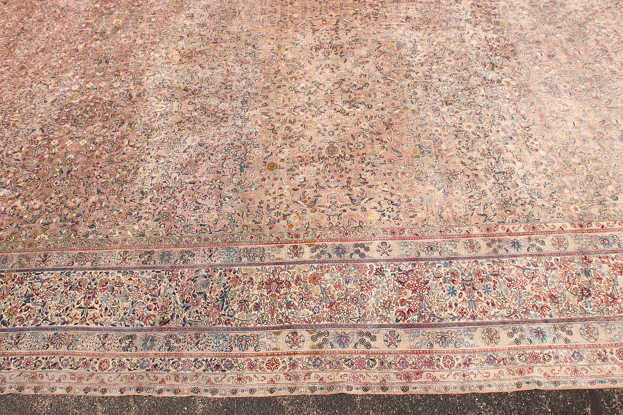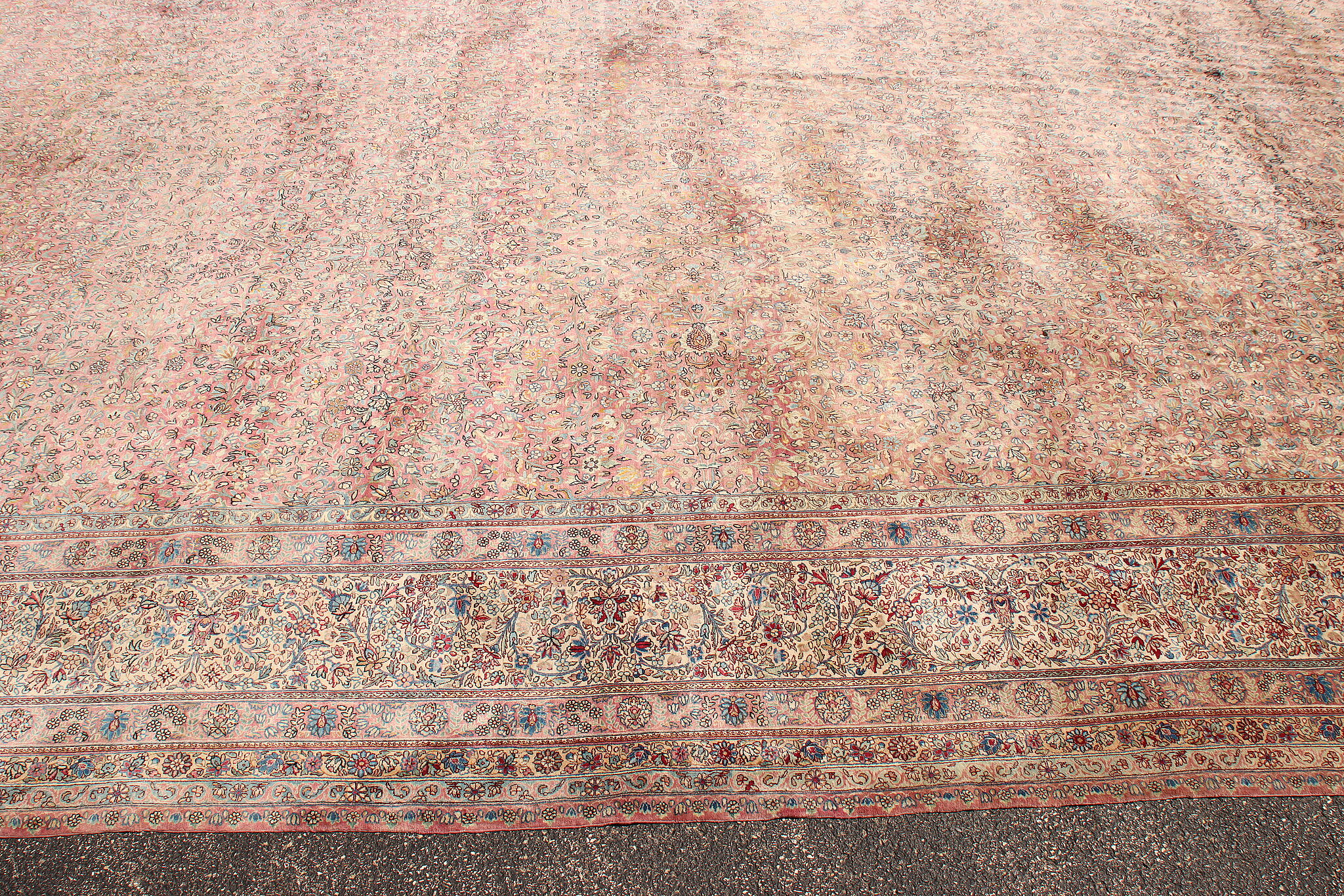 Size is 18' wide by 36' long. Rug is 14" thick when rolled up as shown.