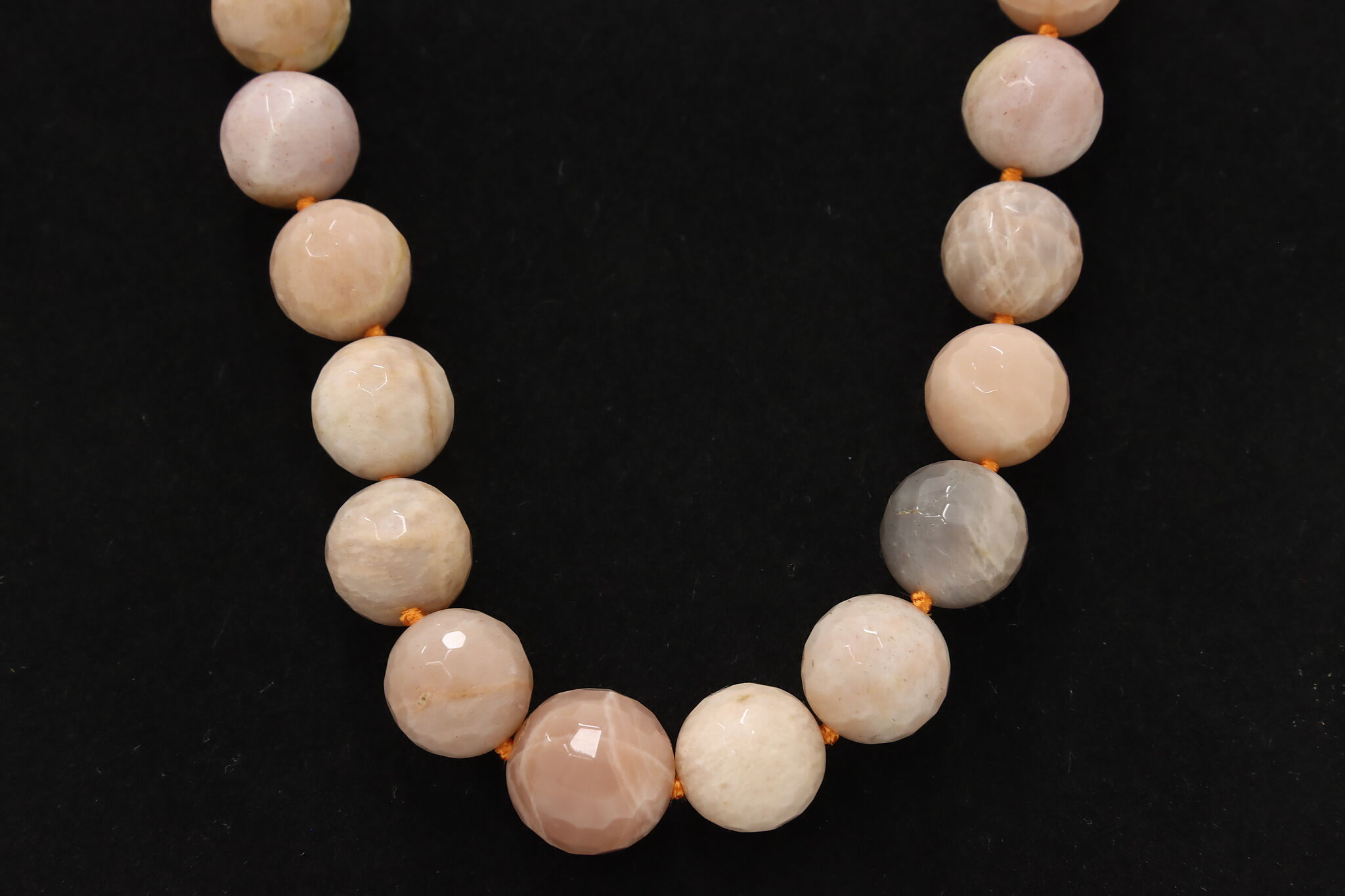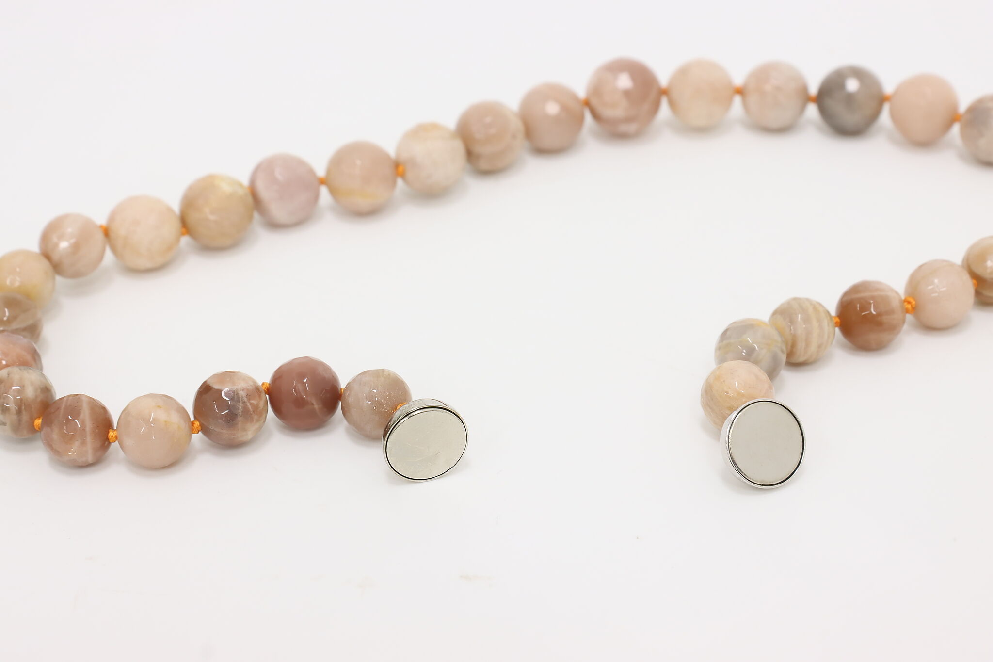 The soft peach and pink colors of these moonstones are great for adding a pop of color with your outfit!