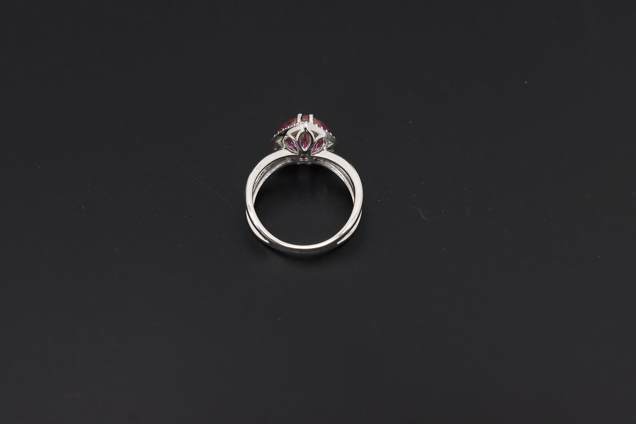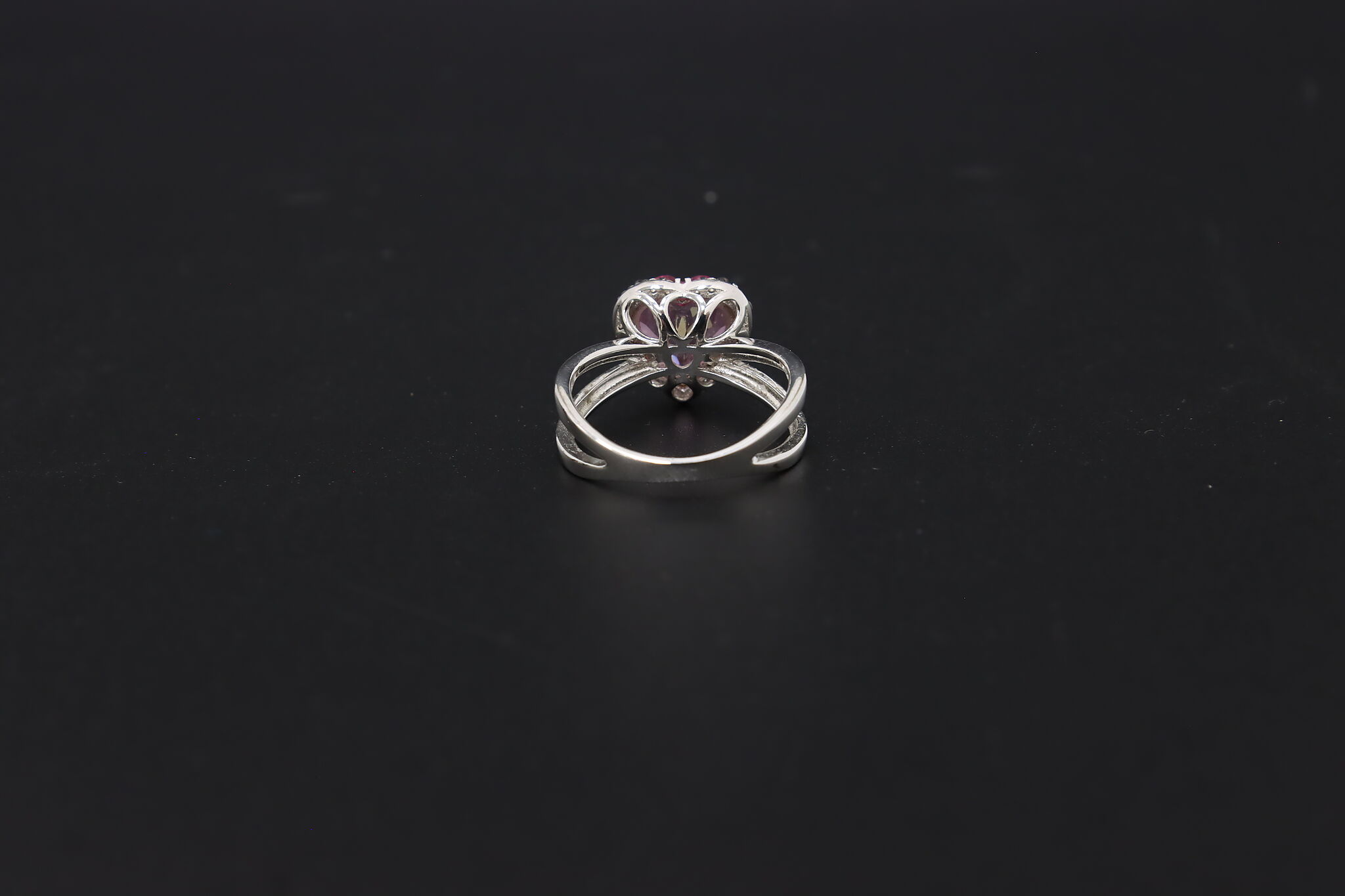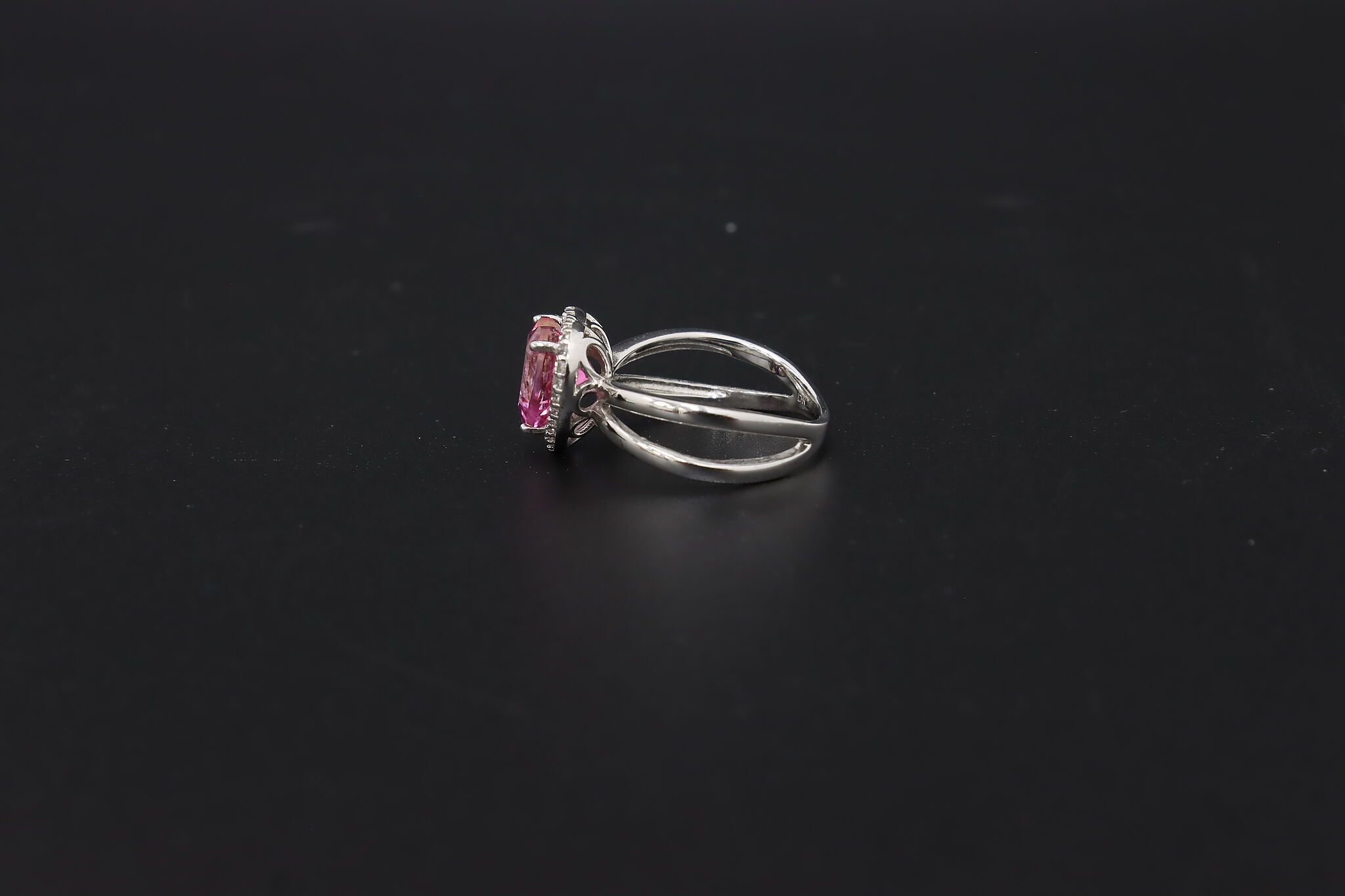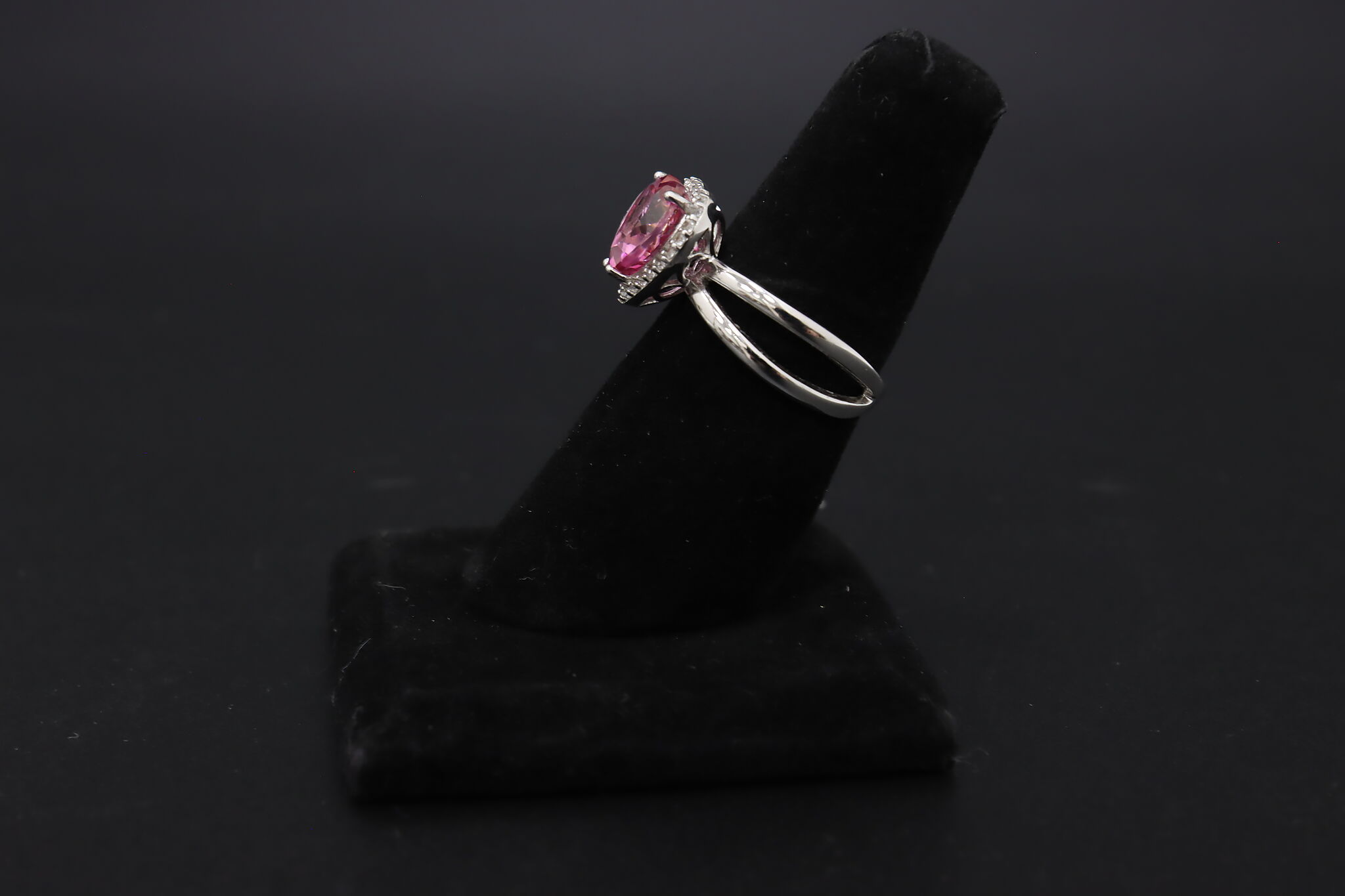 This absolute darling ring features a heart-shaped pink gemstone with an elegant band.