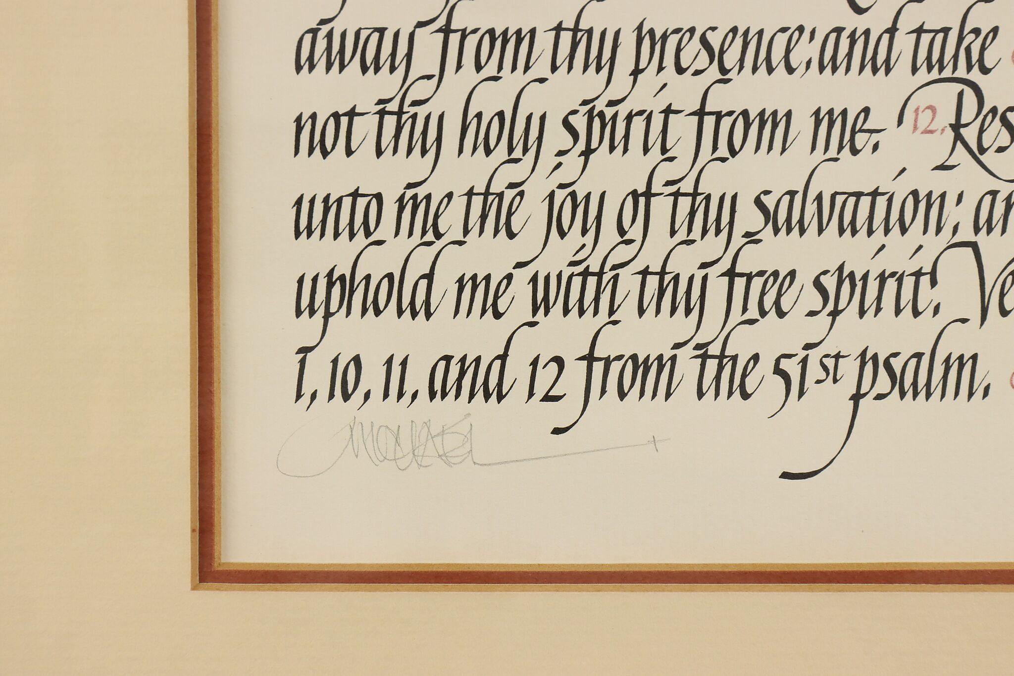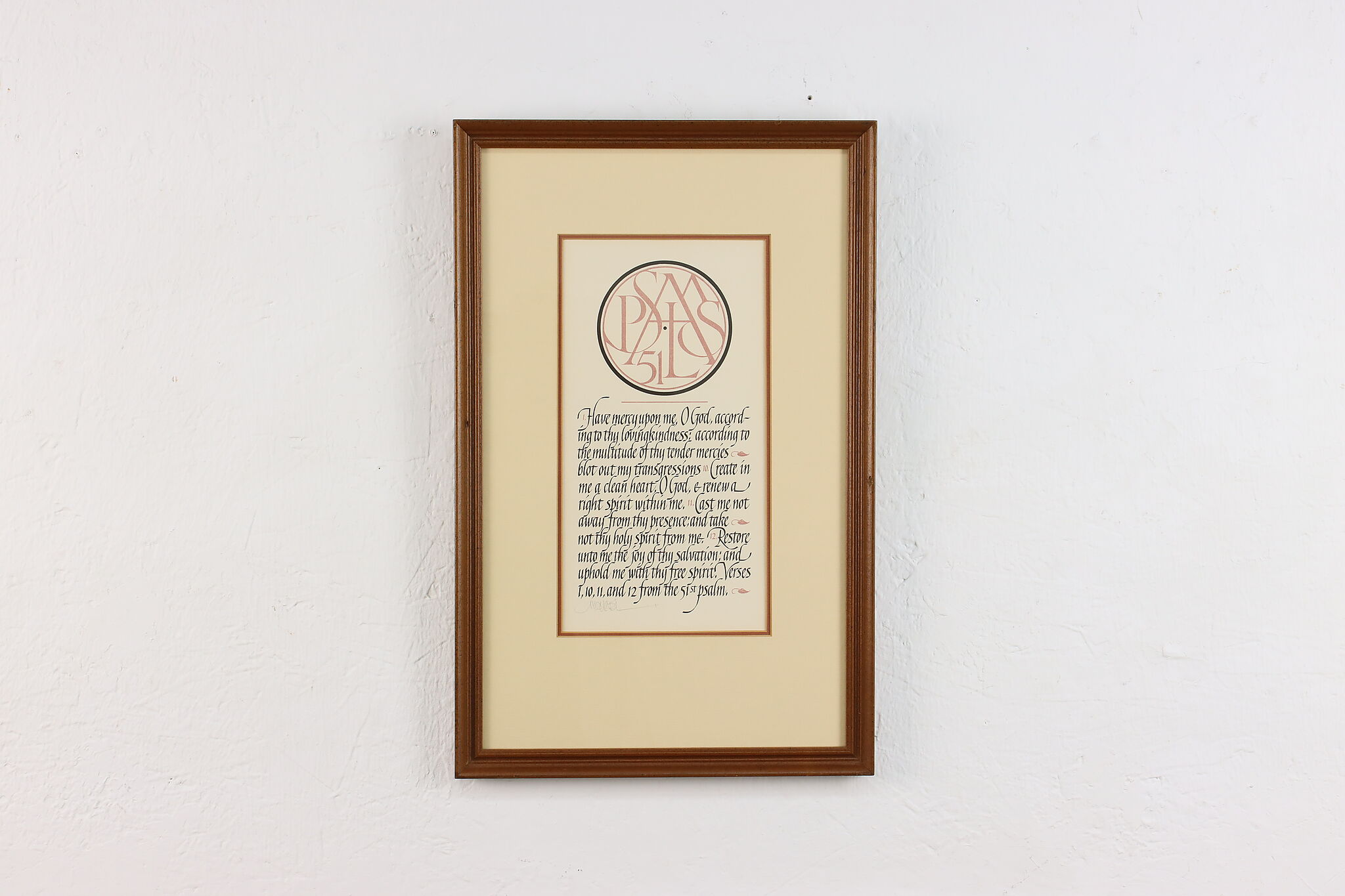 This beautiful framed calligraphy of Psalm 51, verses 1 and 10-12, would be a wonderful gift for someone of Christian faith.