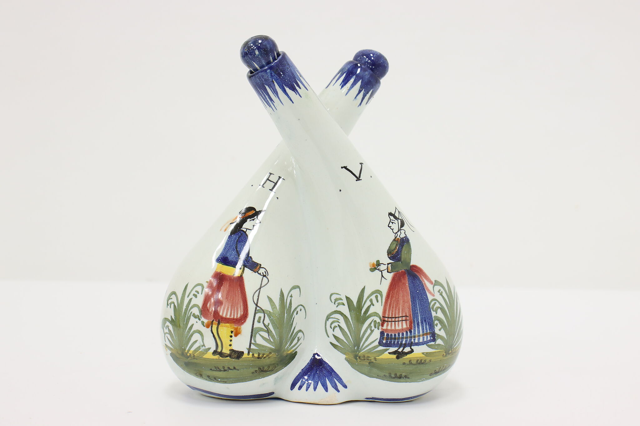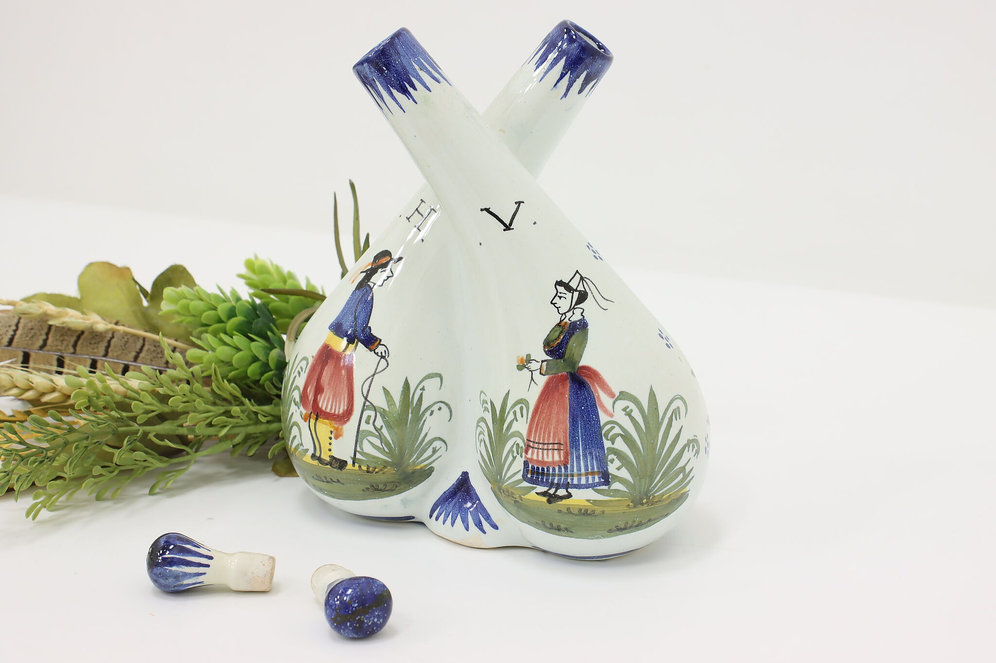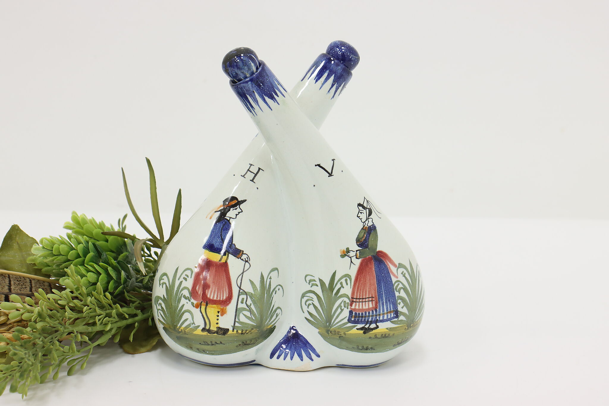 This French hand-painted double oil and vinegar cruet bottle would be a lovely addition to your kitchen.