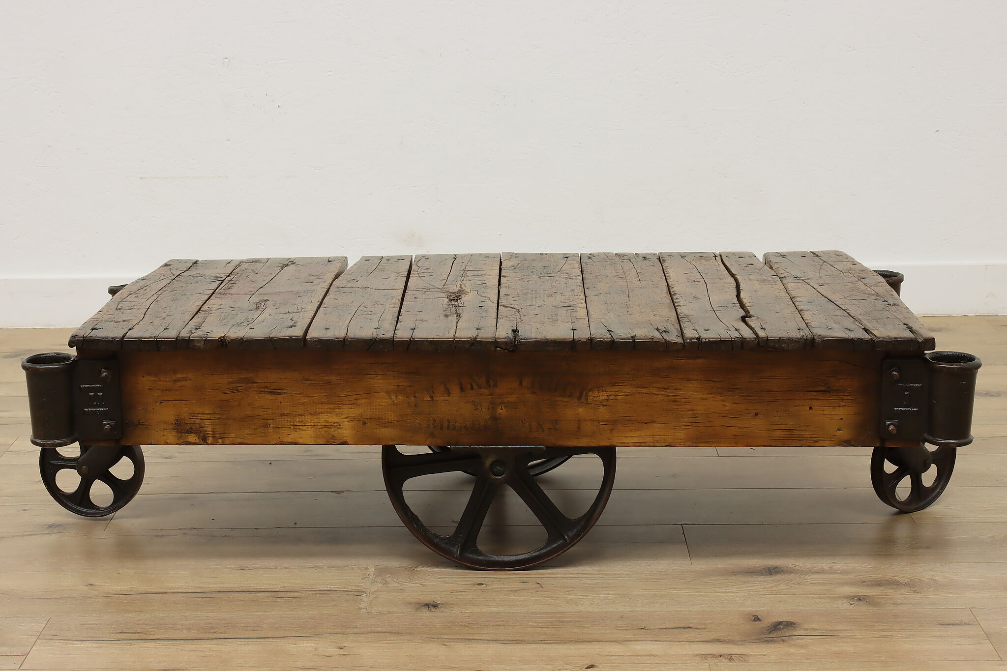 Salvaged from a railroad yard, this cart would make a unique coffee table.