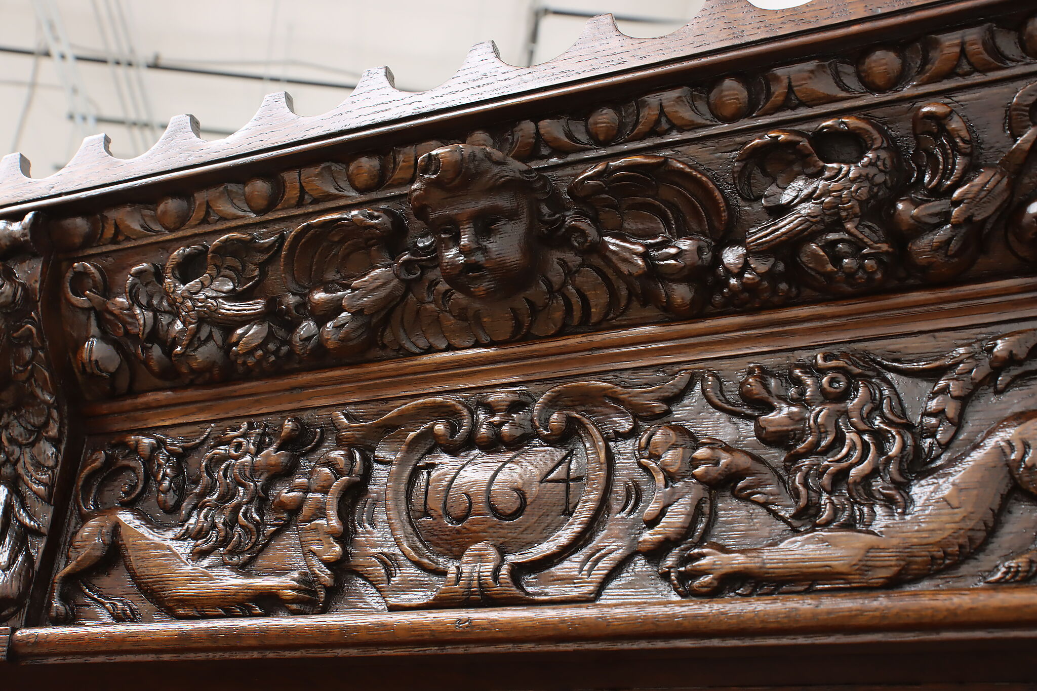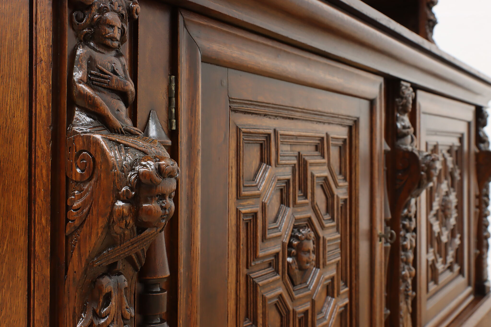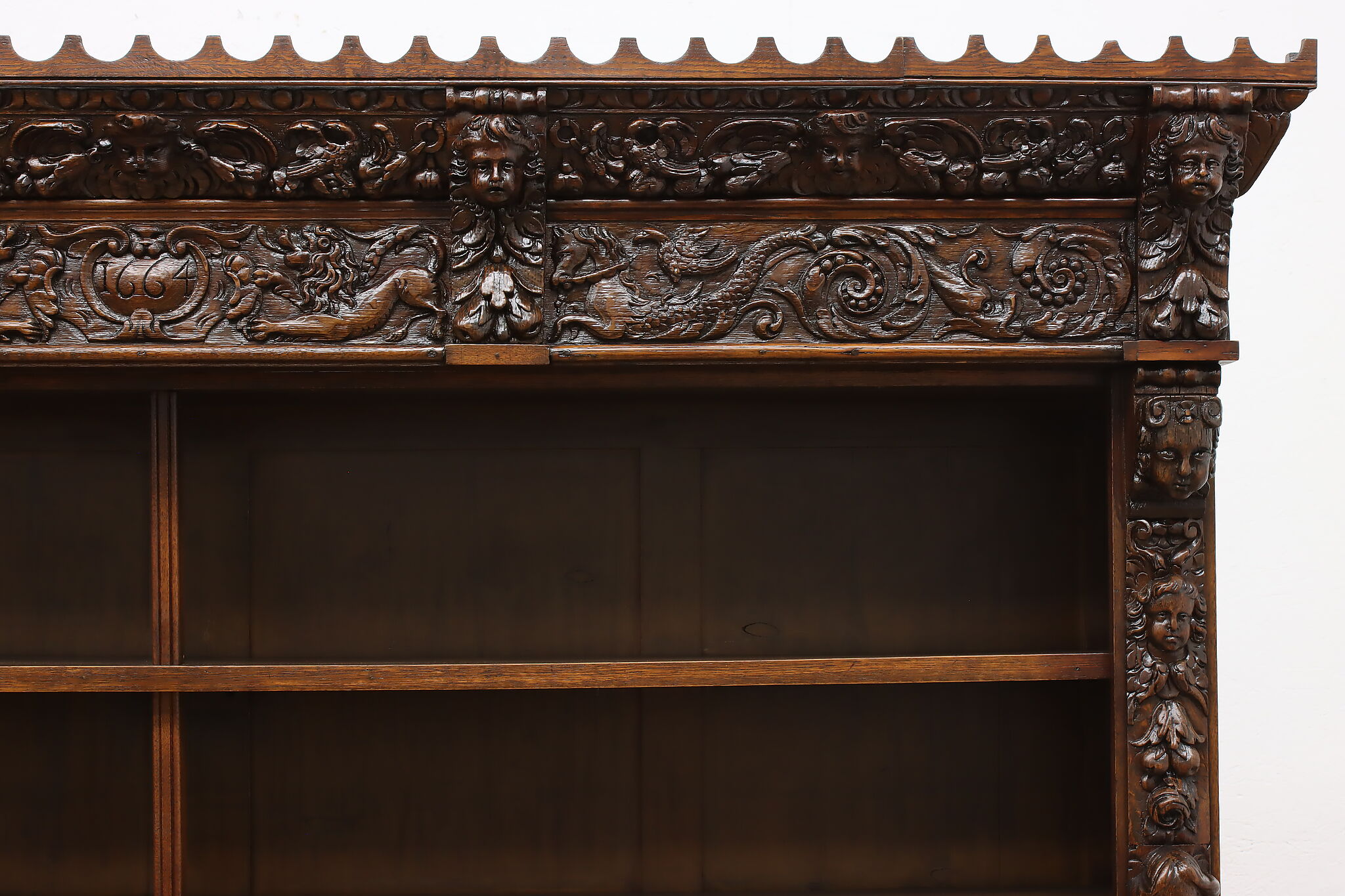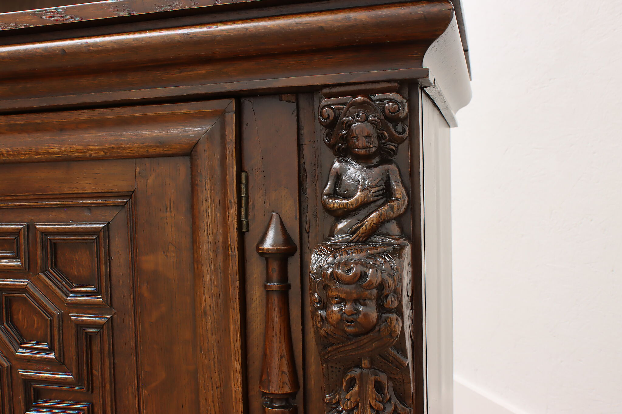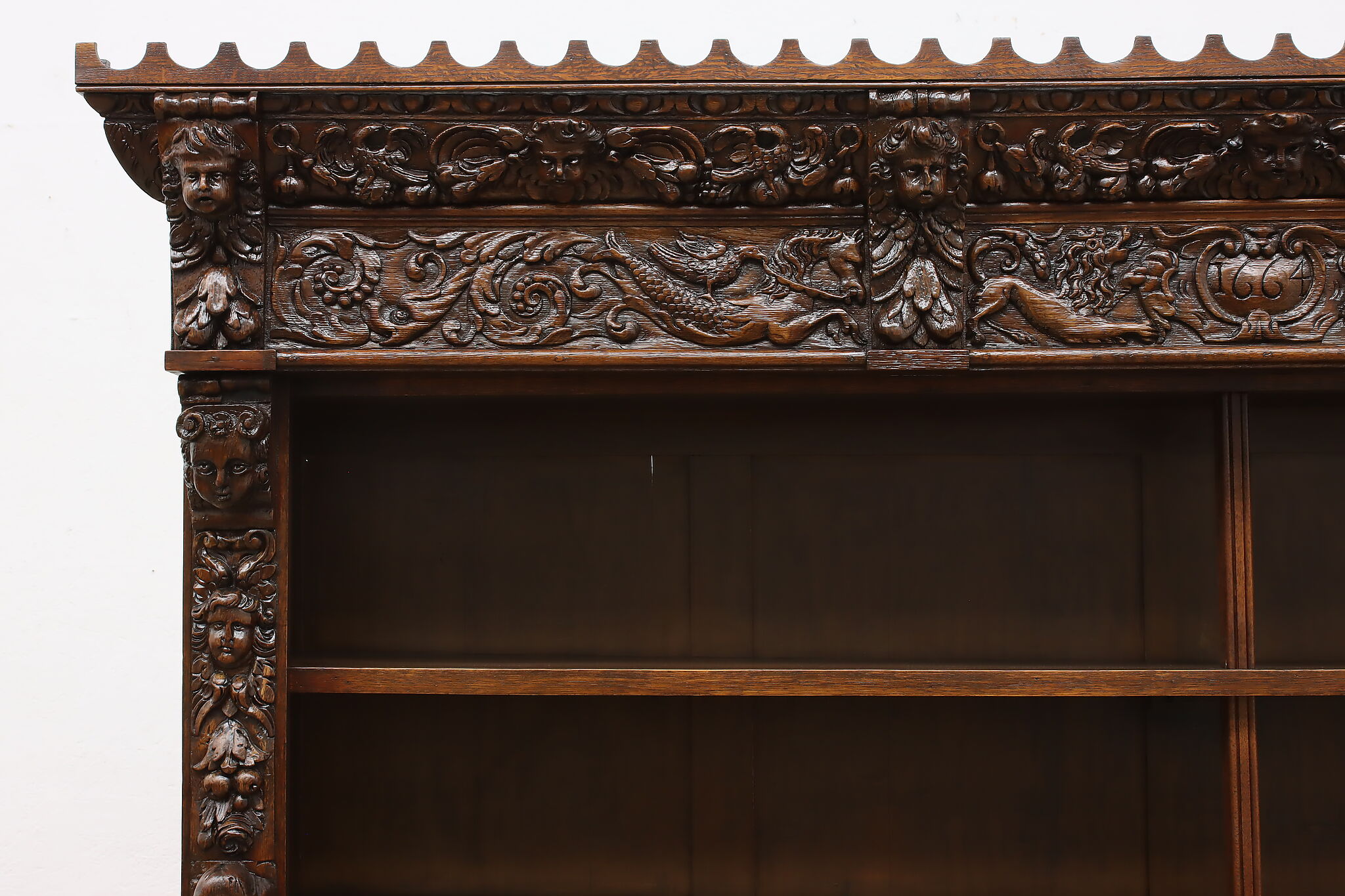 Brought from an old aristocratic home in Europe, we chose this piece for the carving alone—21 expressive faces, with elements dating back to 1664. It’s the kind of craftsmanship that deserves to be seen and appreciated every day.
