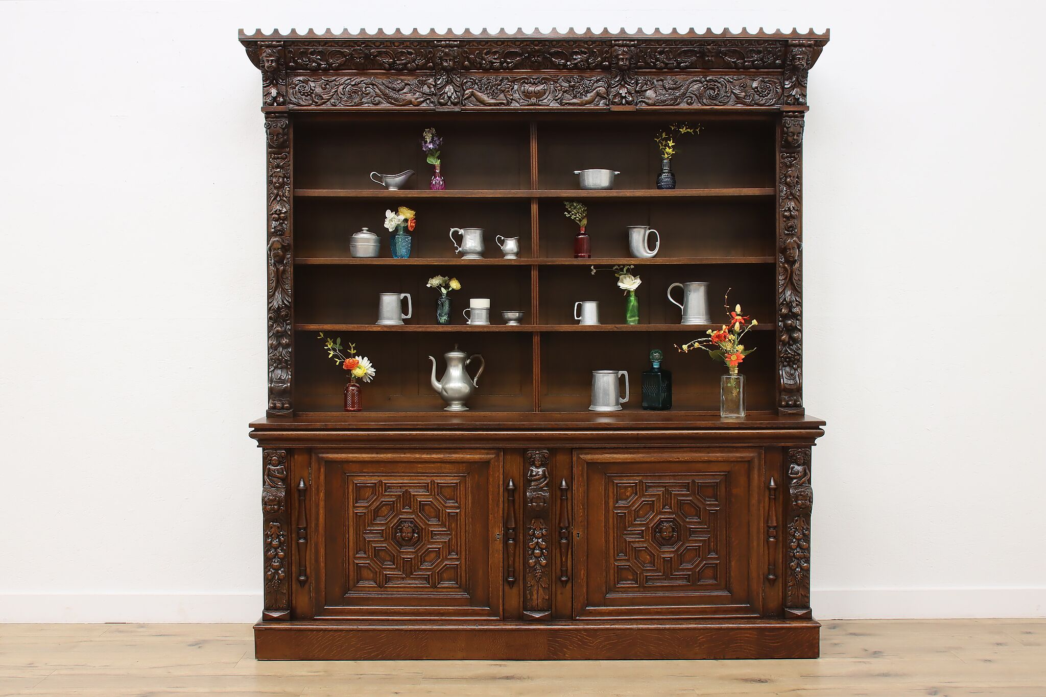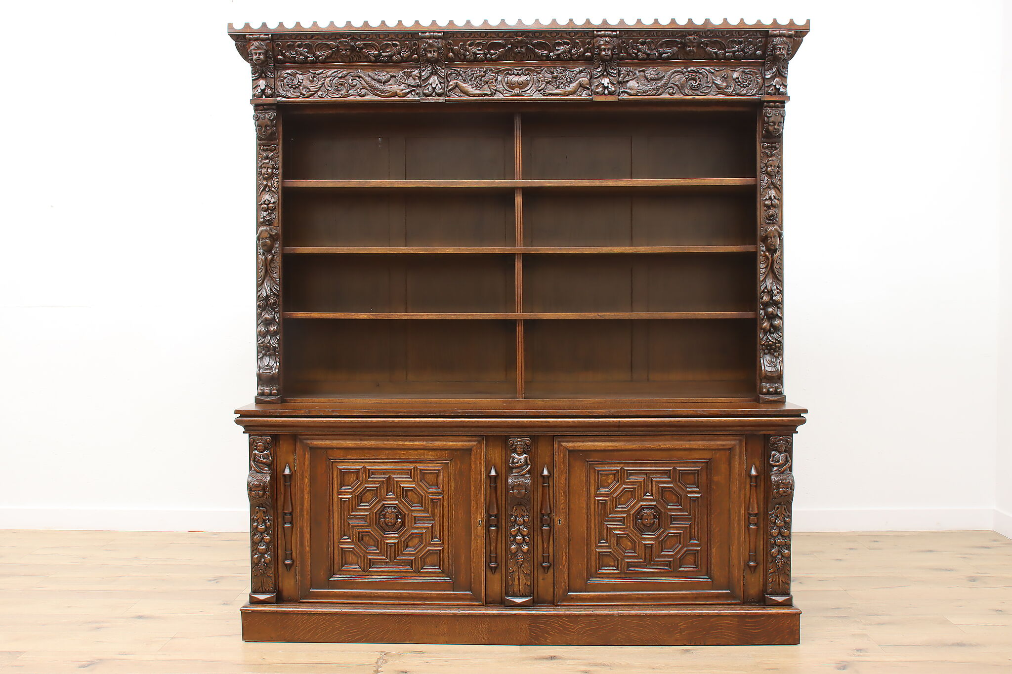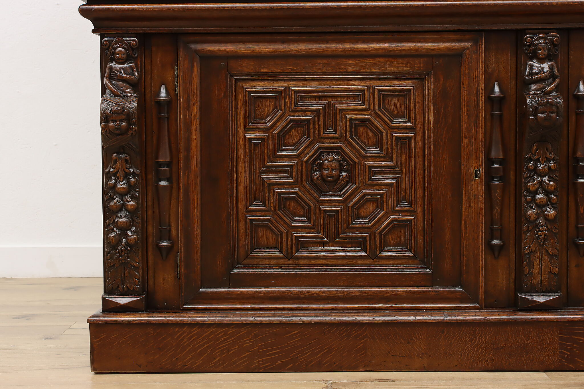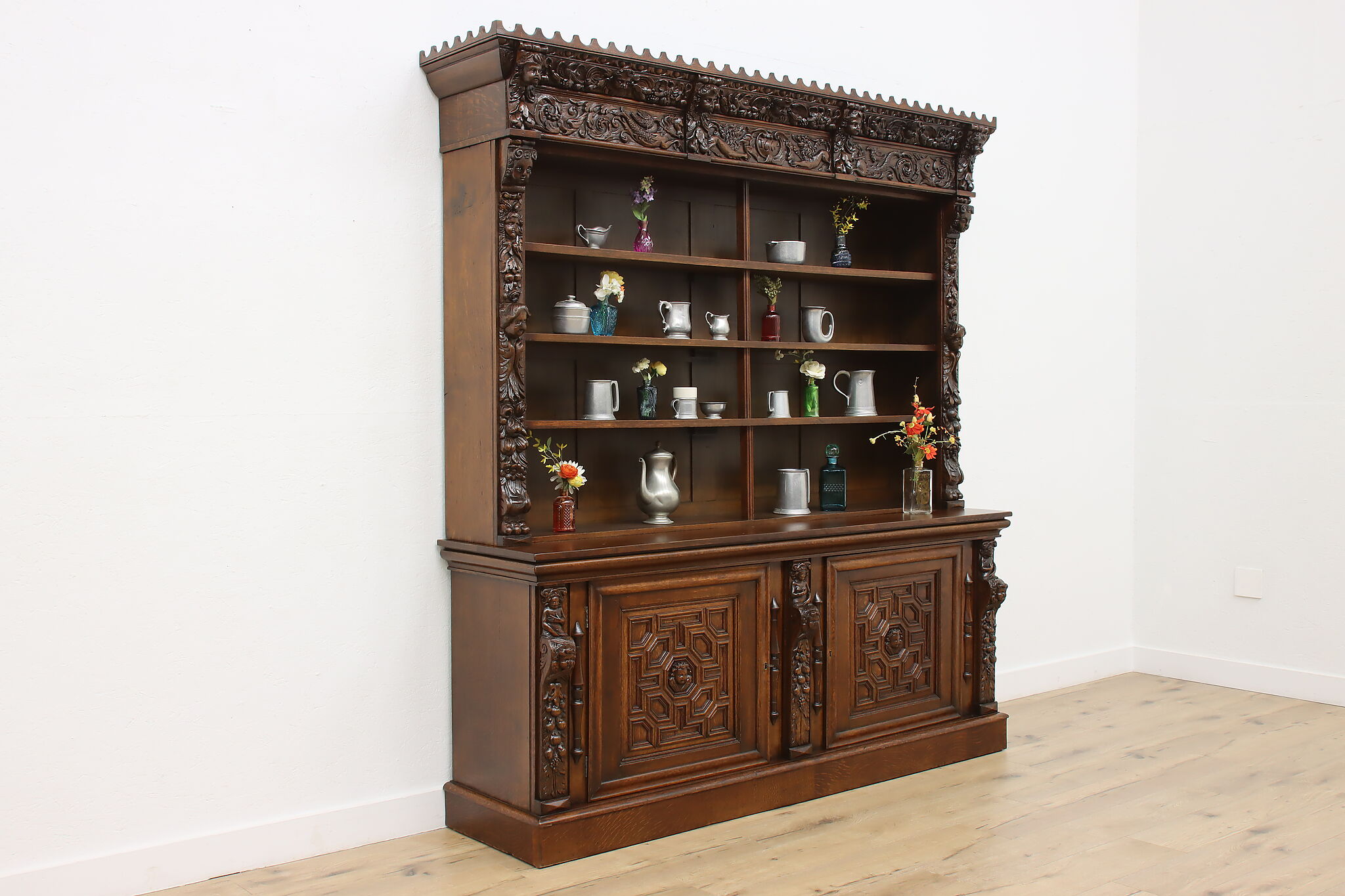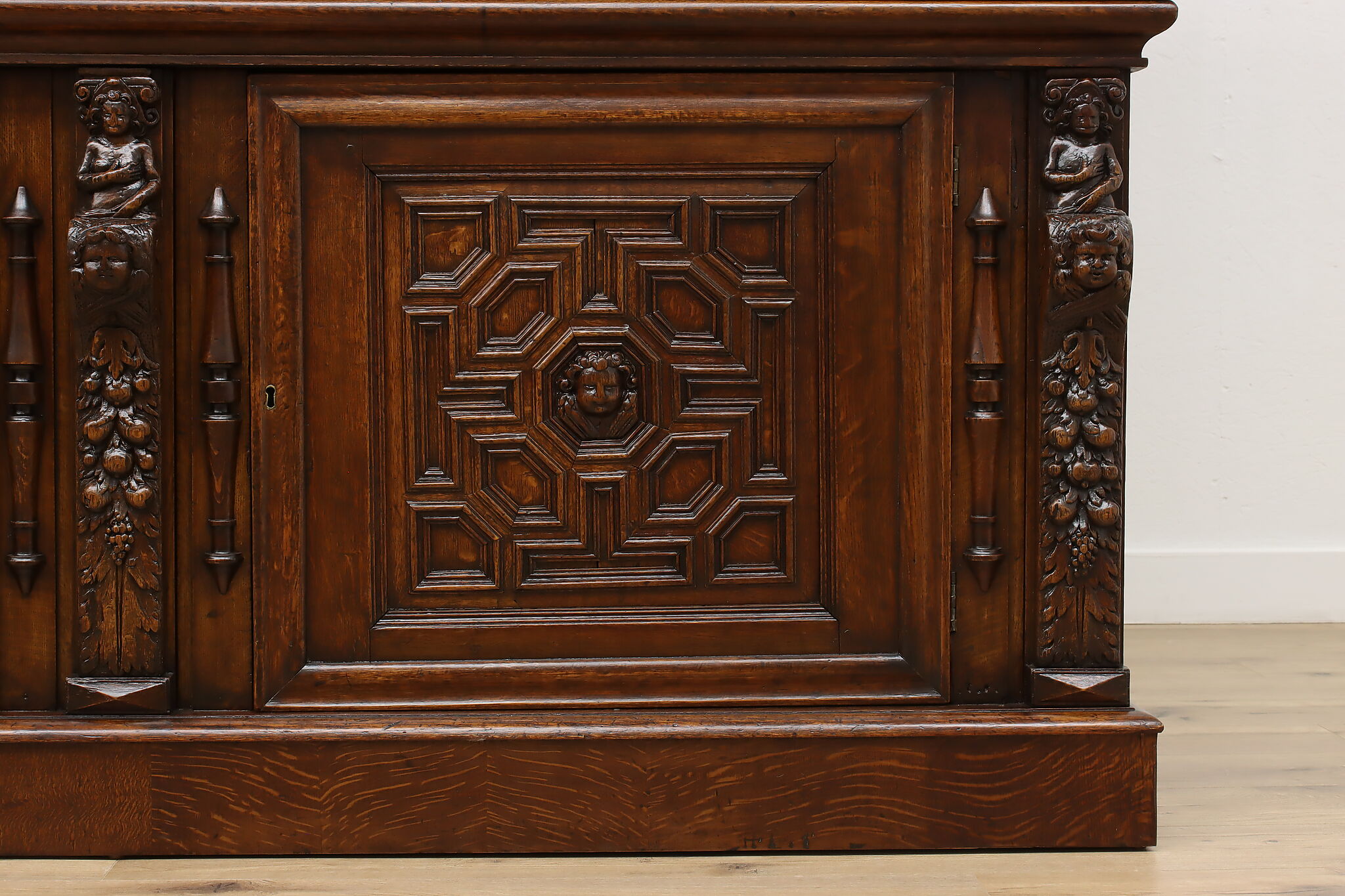 Brought from an old aristocratic home in Europe, we chose this piece for the carving alone—21 expressive faces, with elements dating back to 1664. It’s the kind of craftsmanship that deserves to be seen and appreciated every day.