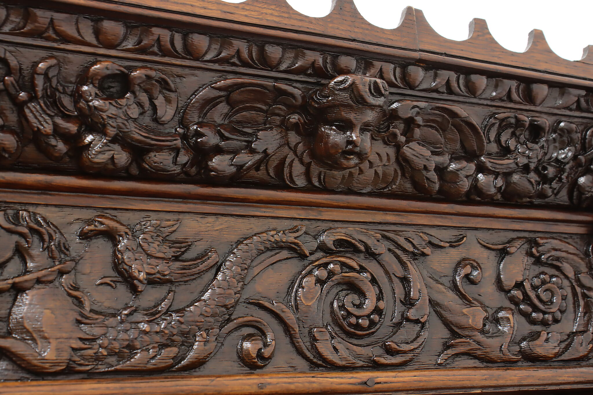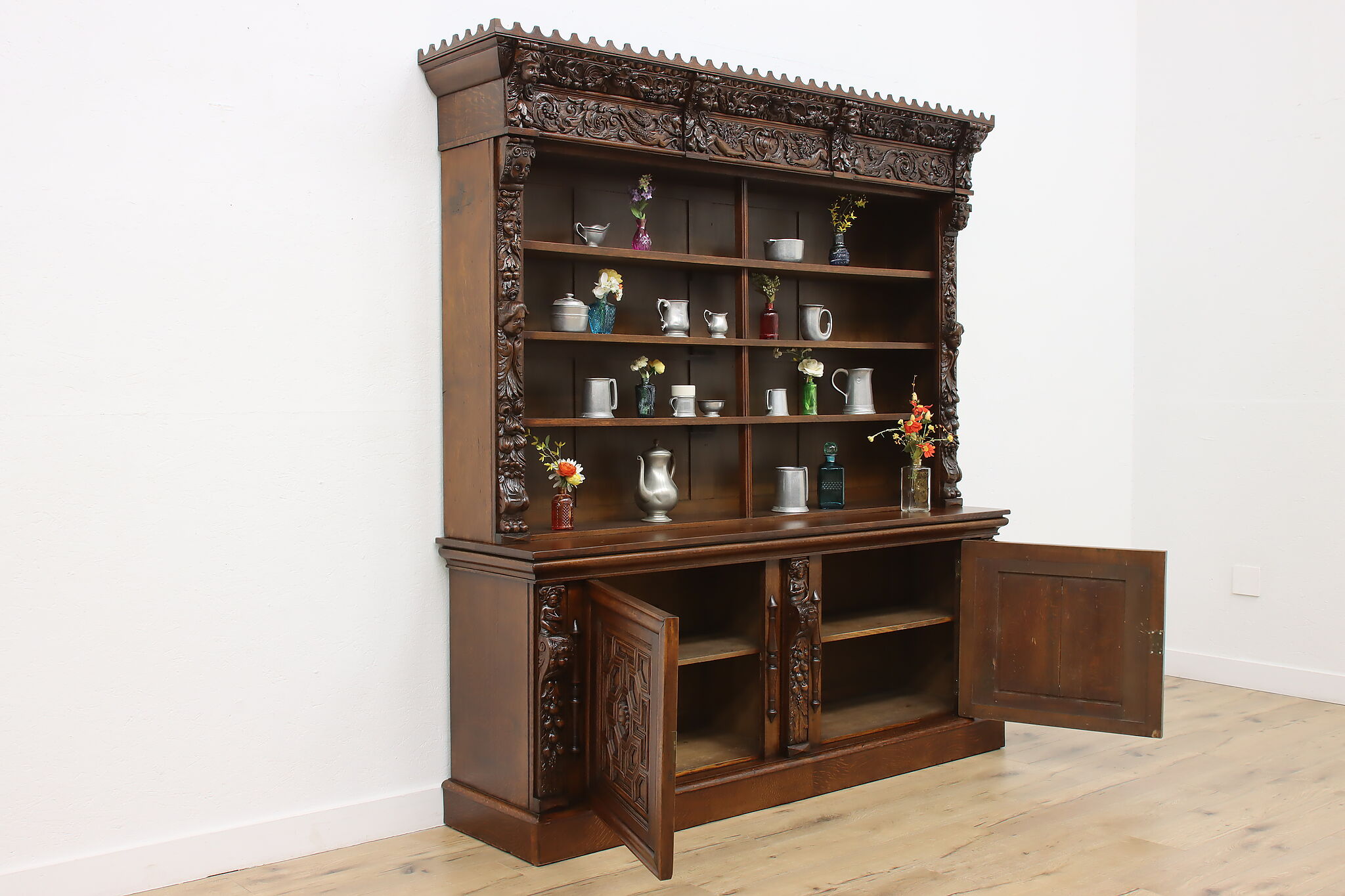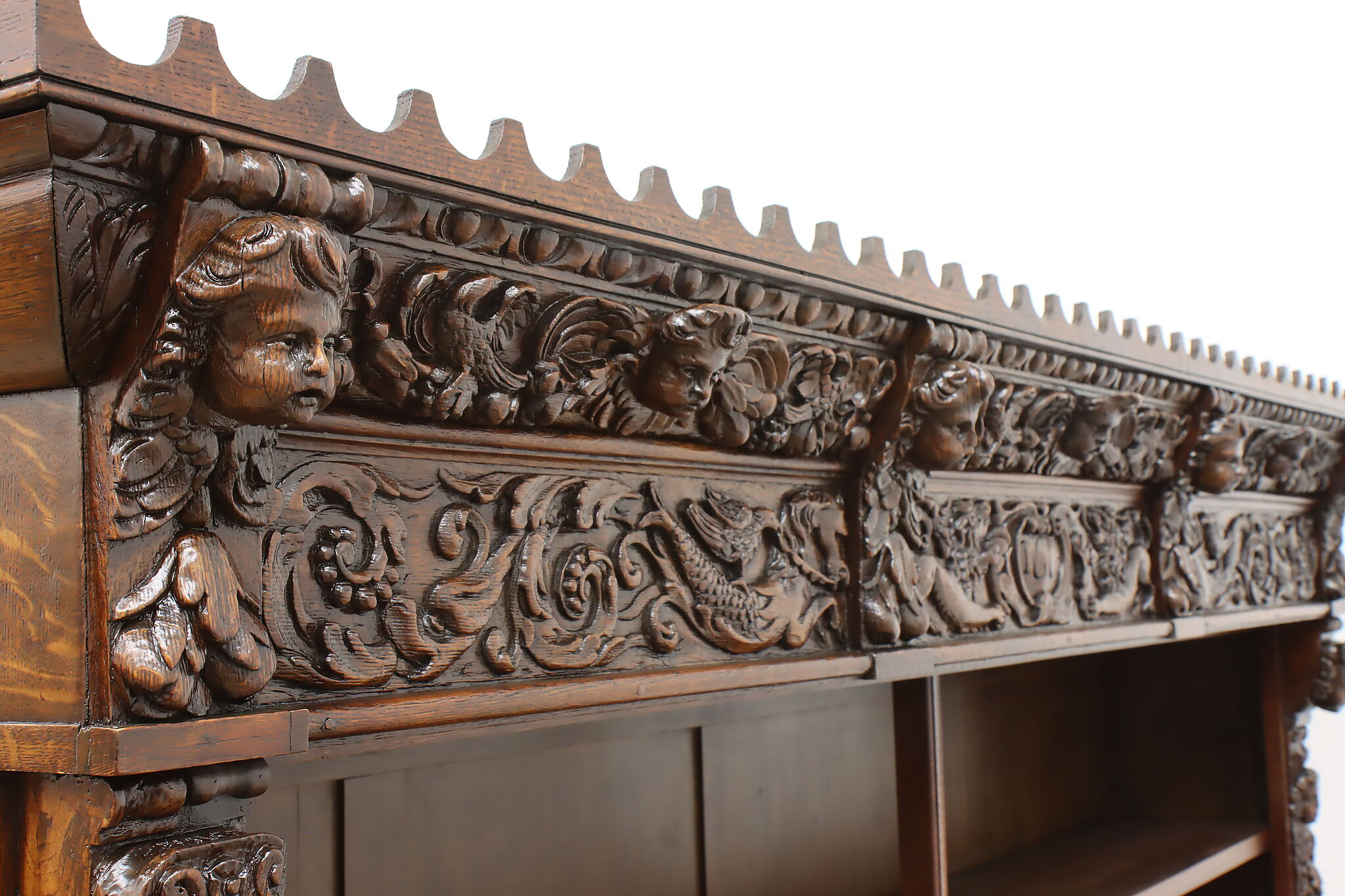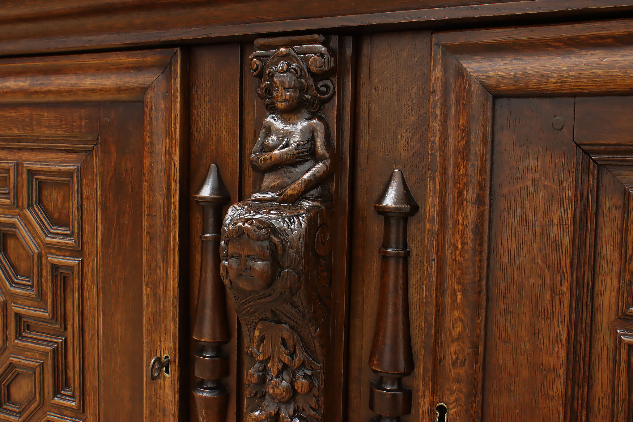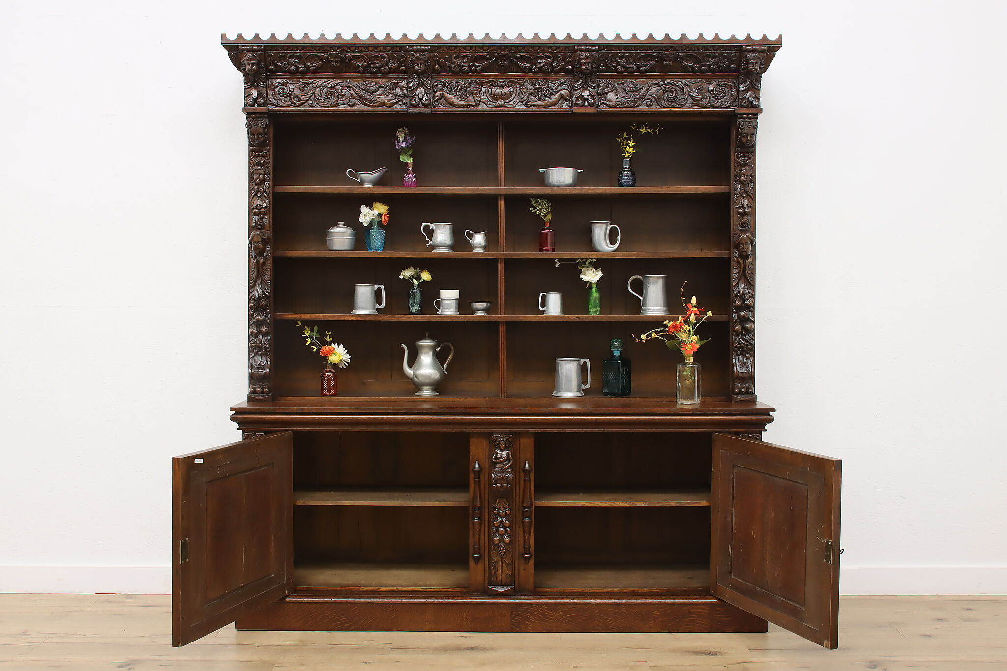 Brought from an old aristocratic home in Europe, we chose this piece for the carving alone—21 expressive faces, with elements dating back to 1664. It’s the kind of craftsmanship that deserves to be seen and appreciated every day.