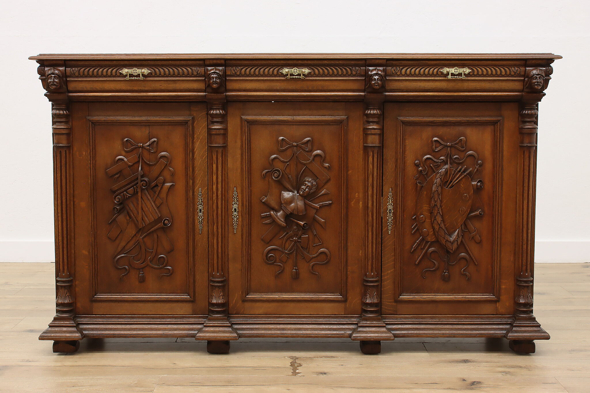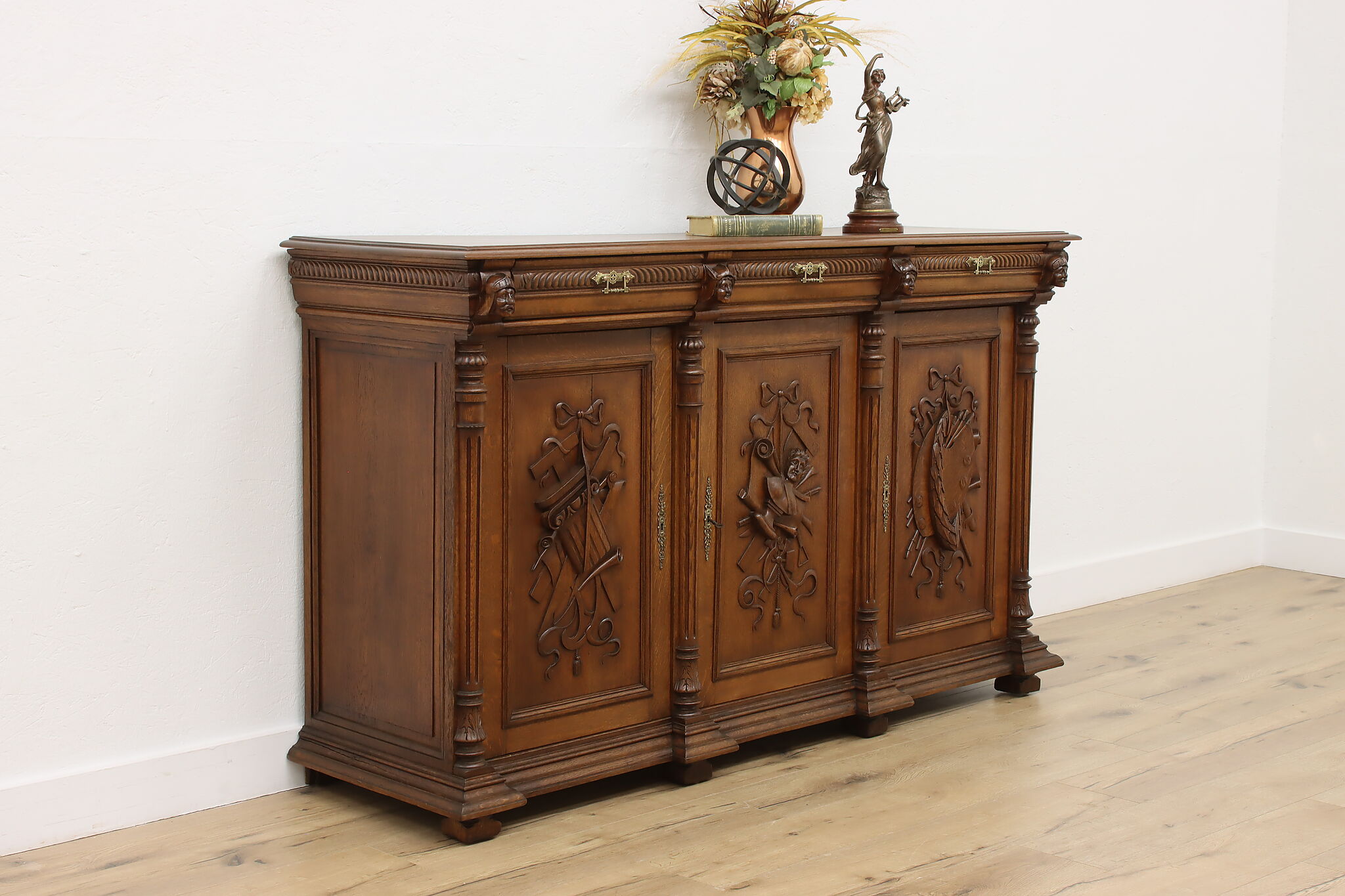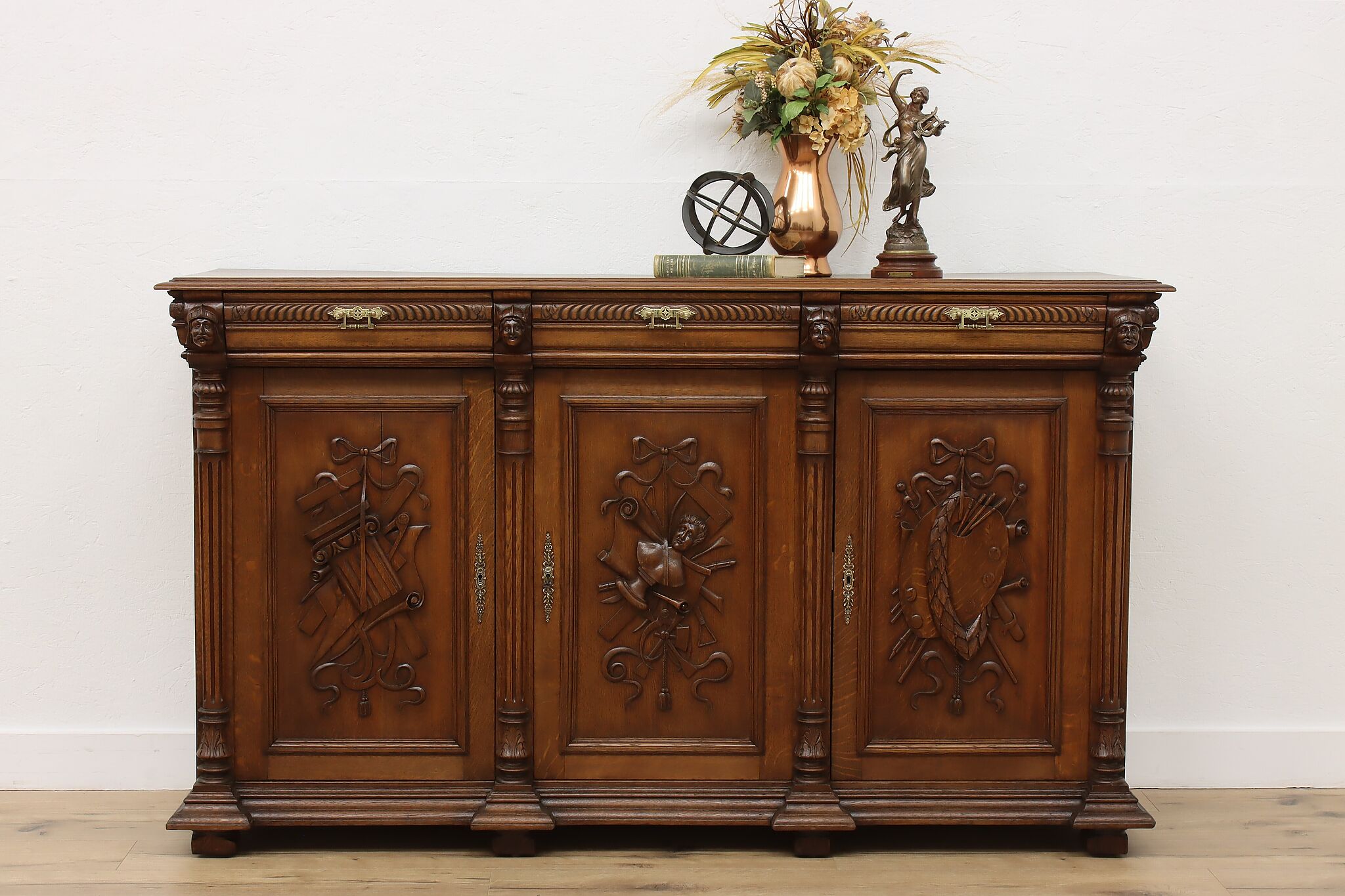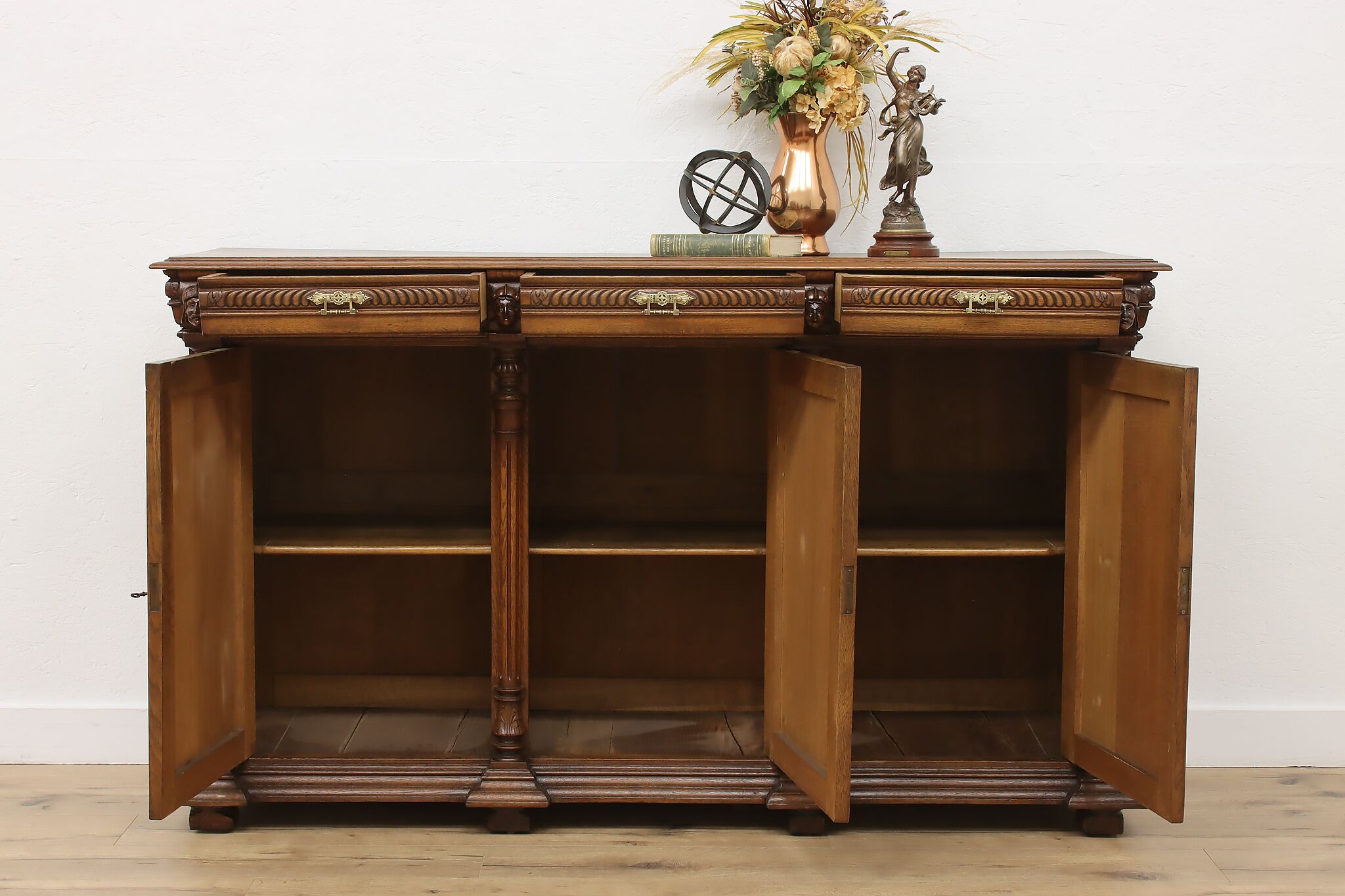 Ditch the boring TV console and upgrade to this beautiful French Renaissance cabinet which can also be used as a buffet or sideboard during large gatherings!