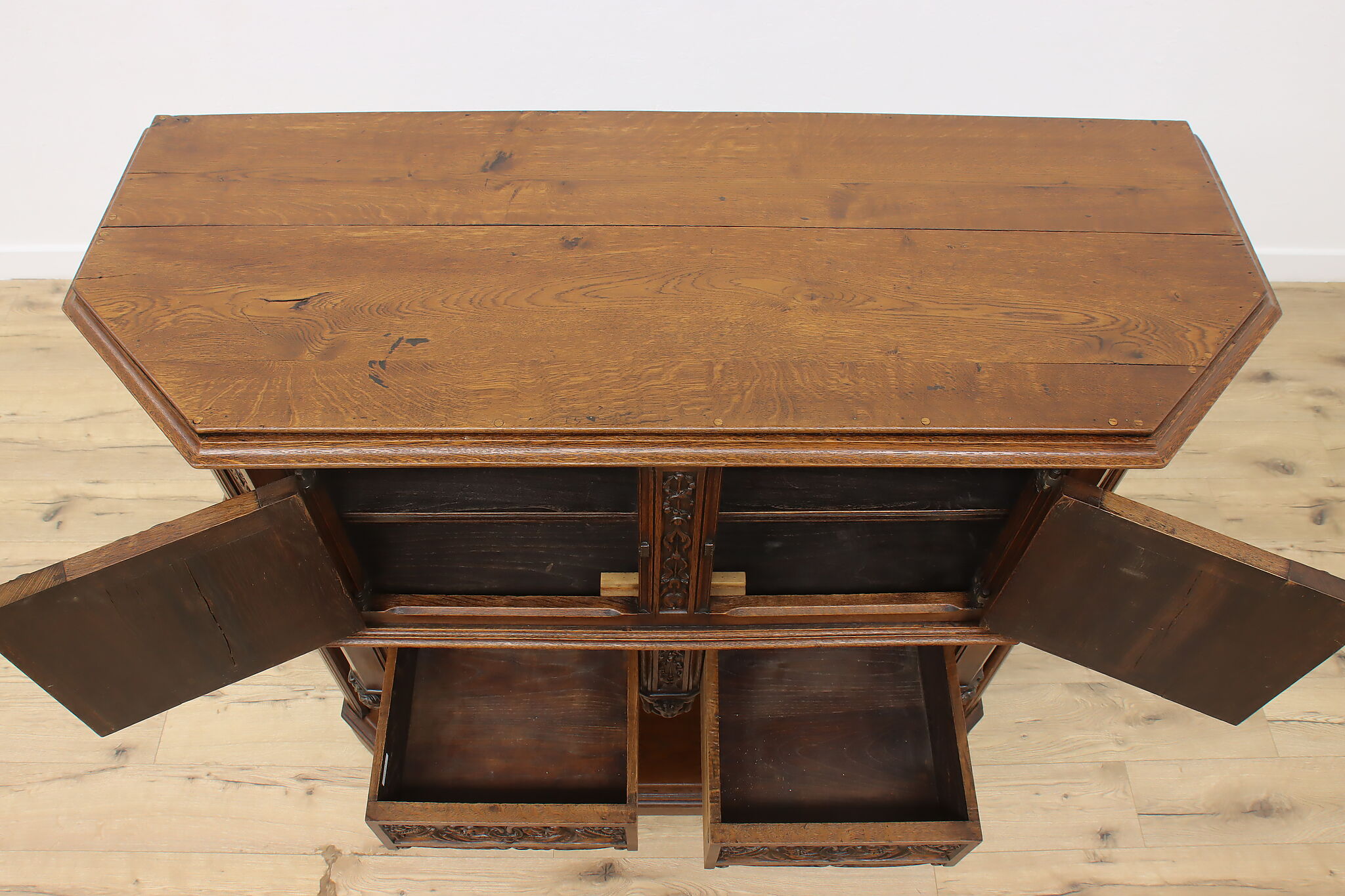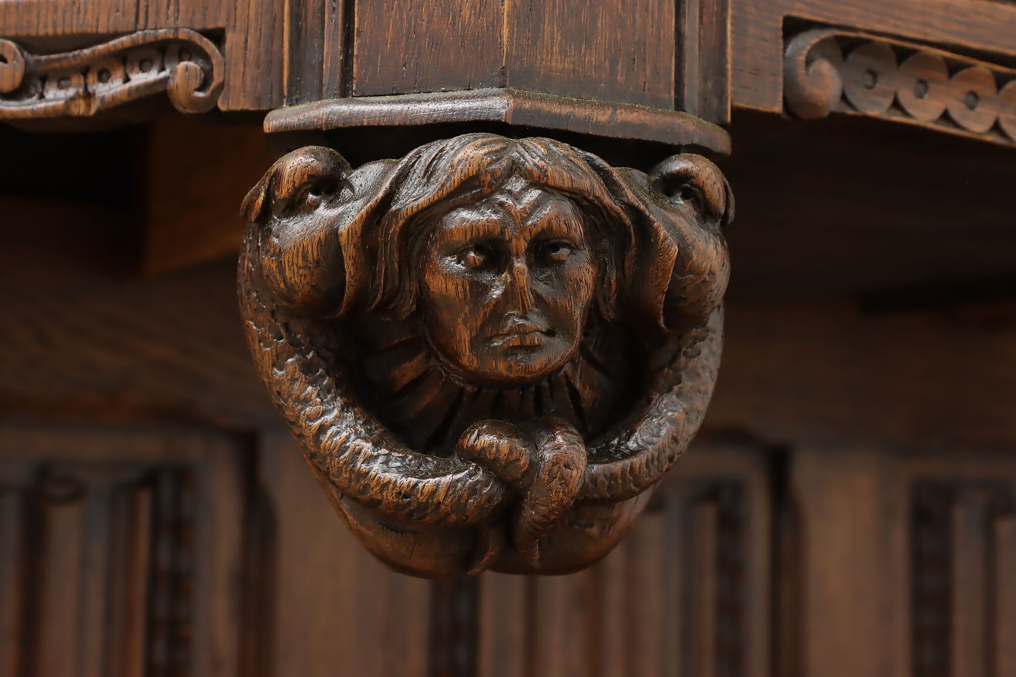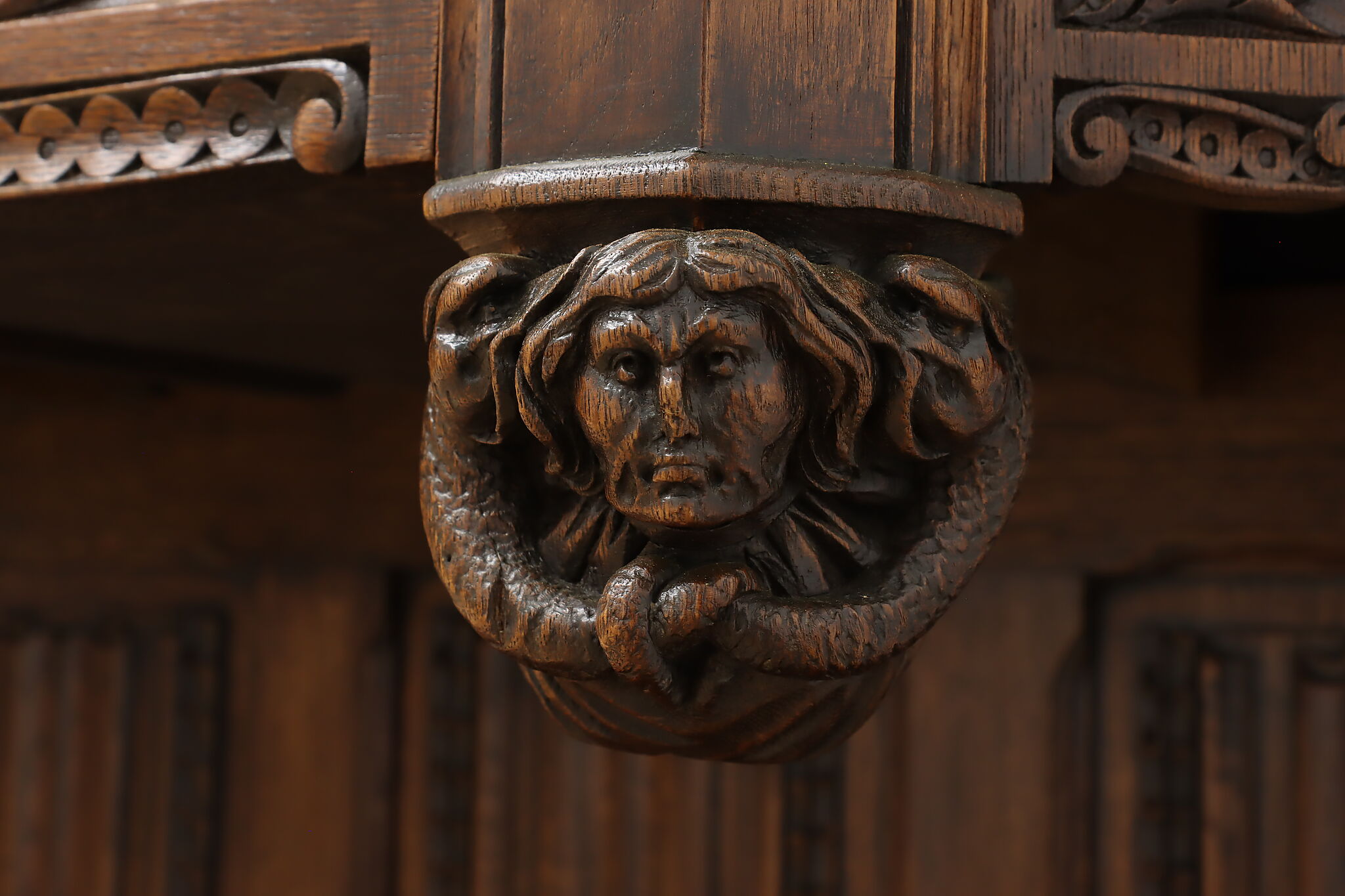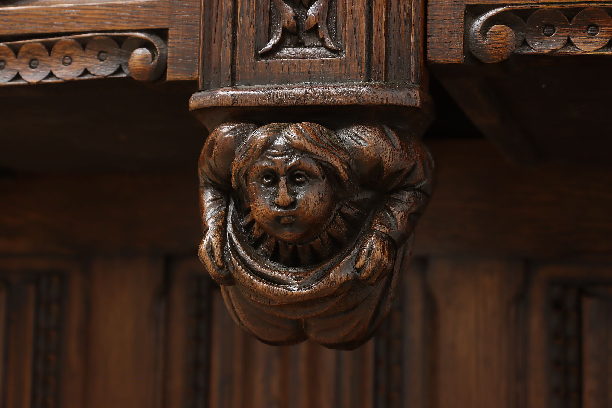 The romantic story of a knight and his beloved lady is beautifully preserved forever on this fantastic Renaissance hall or bar cabinet.