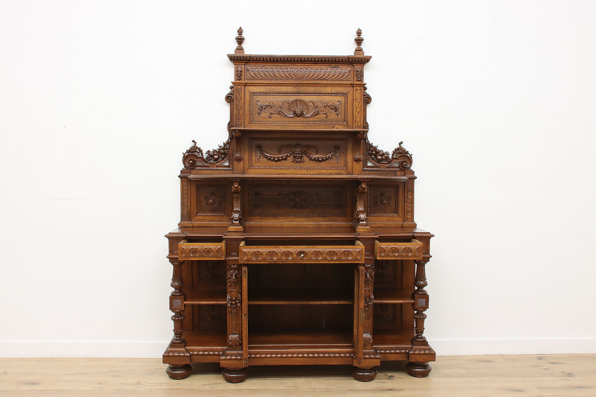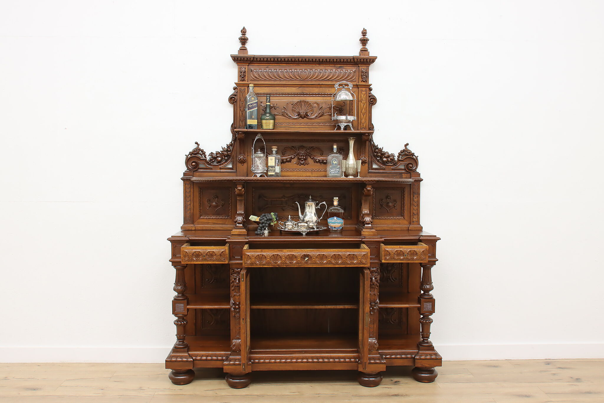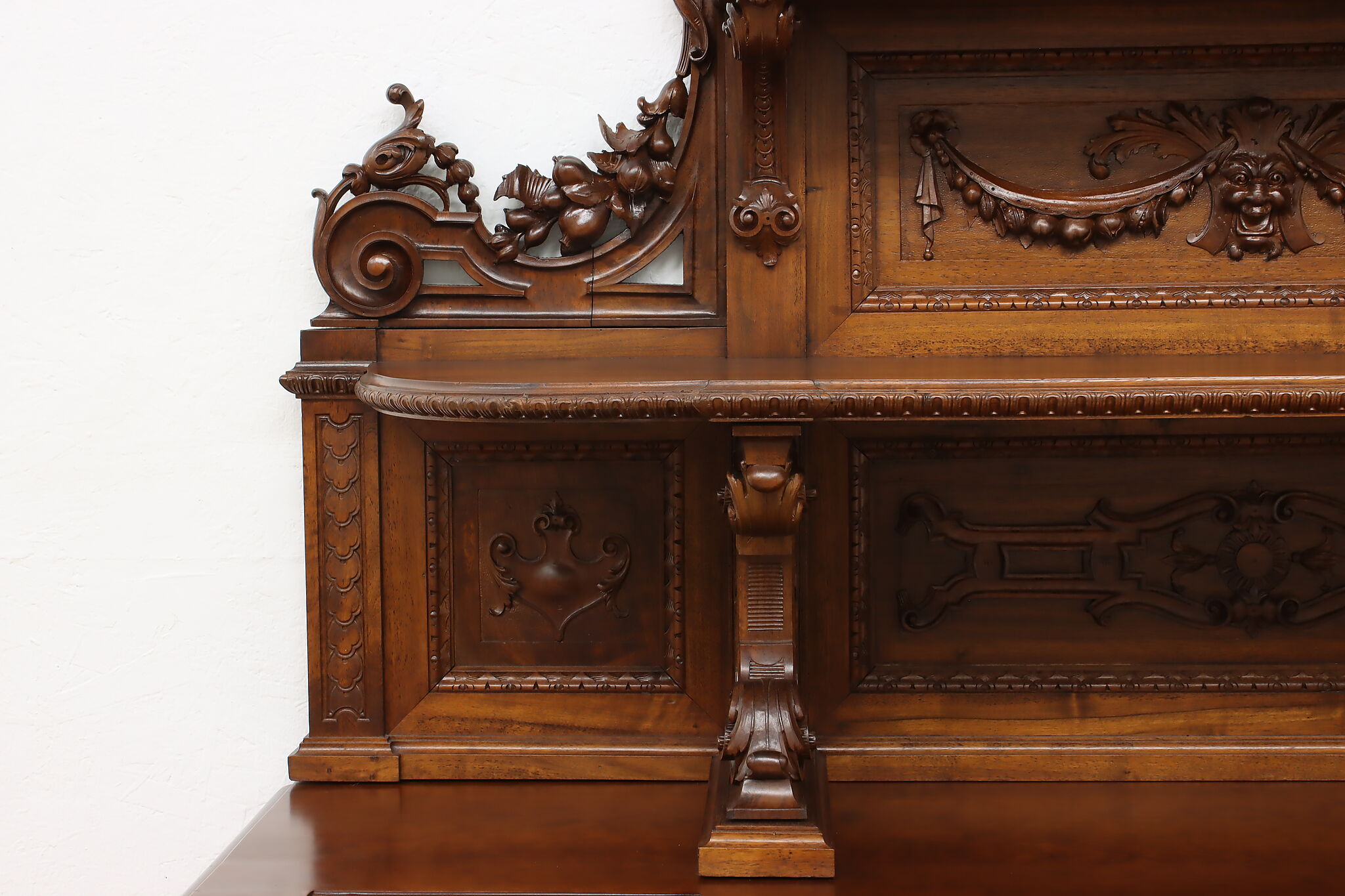 This spectacular back bar, sideboard or hall console is a stunning masterpiece of Italian craftsmanship. Designed after the lavish Renaissance period, this piece will command attention in any room where it's placed.