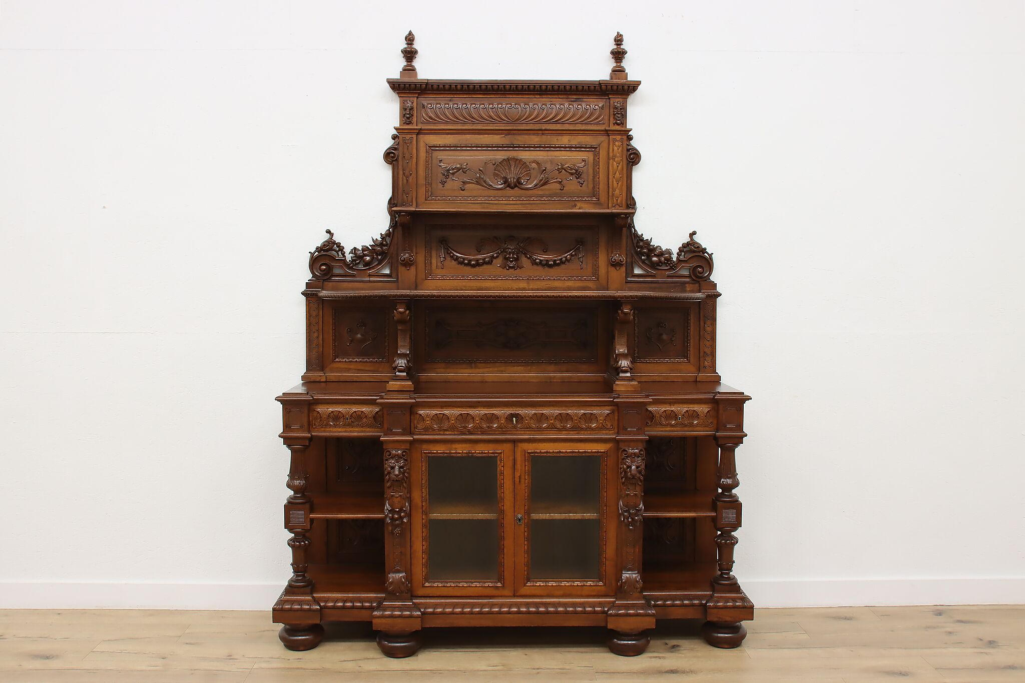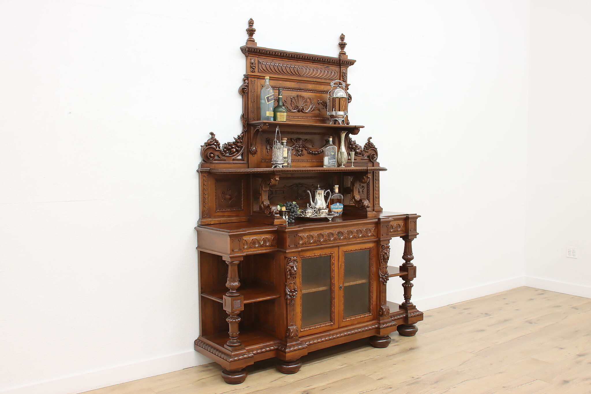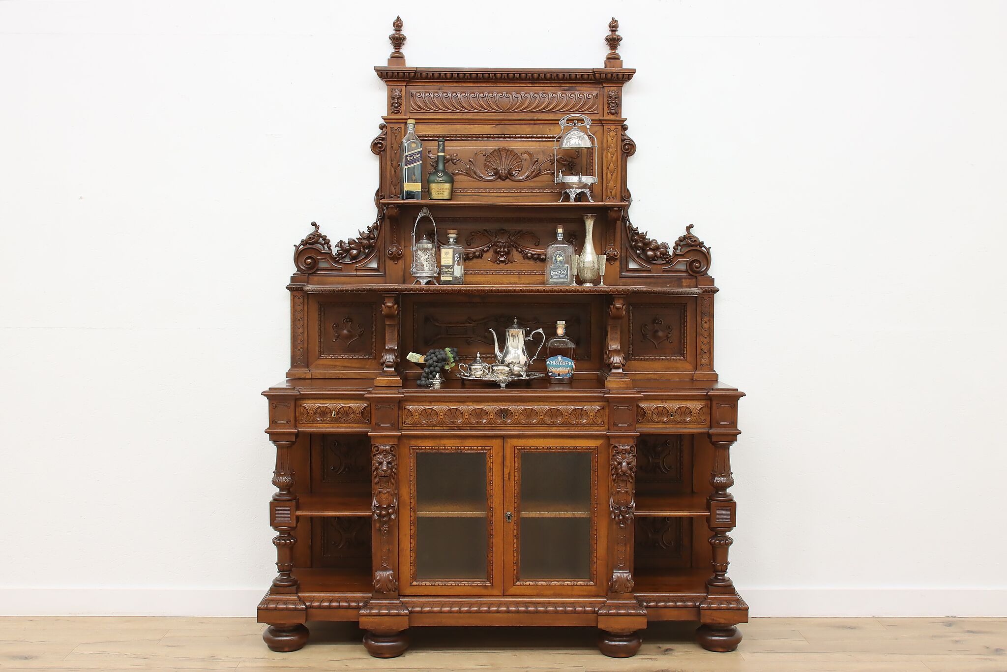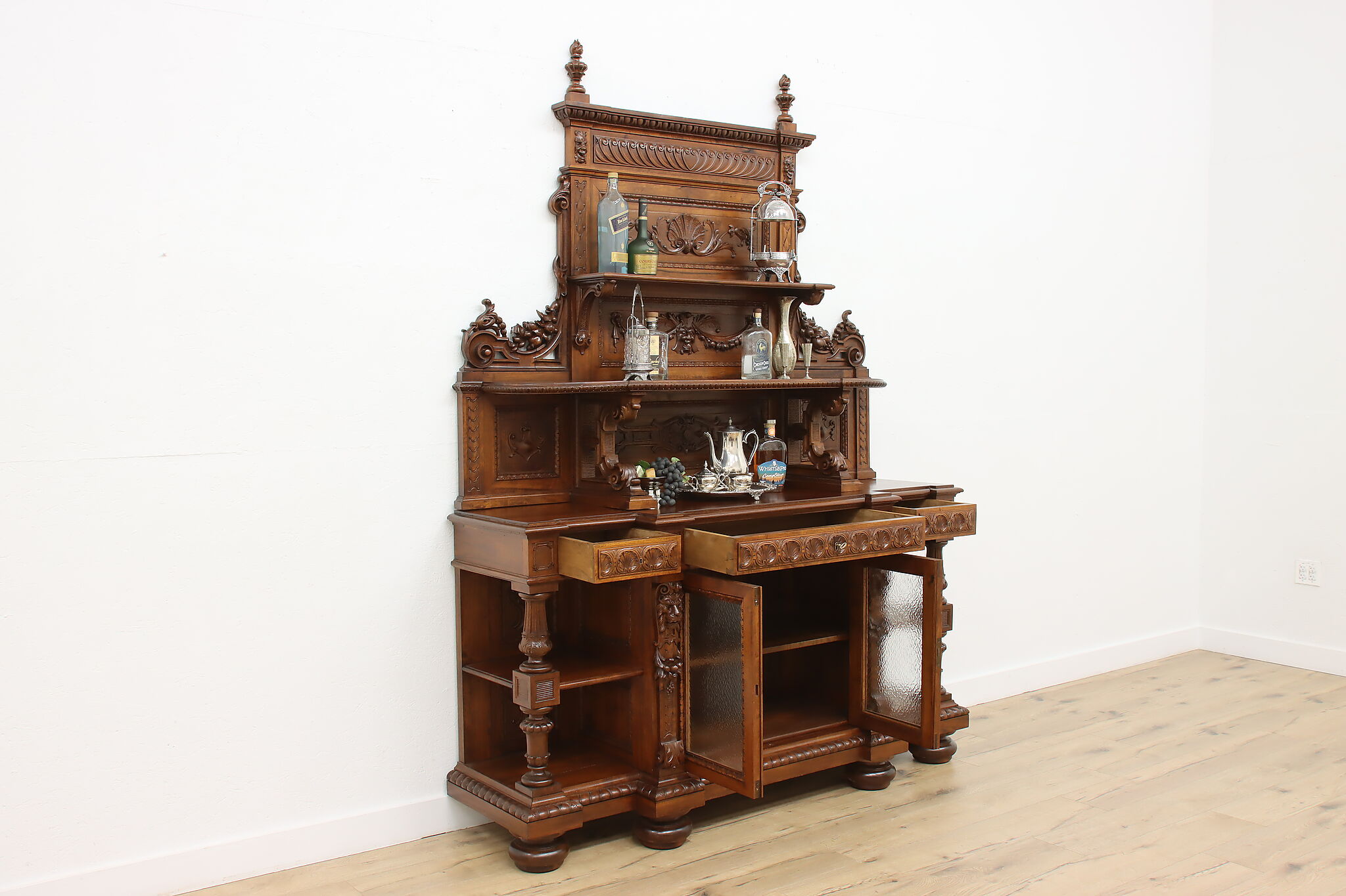 This spectacular back bar, sideboard or hall console is a stunning masterpiece of Italian craftsmanship. Designed after the lavish Renaissance period, this piece will command attention in any room where it's placed.