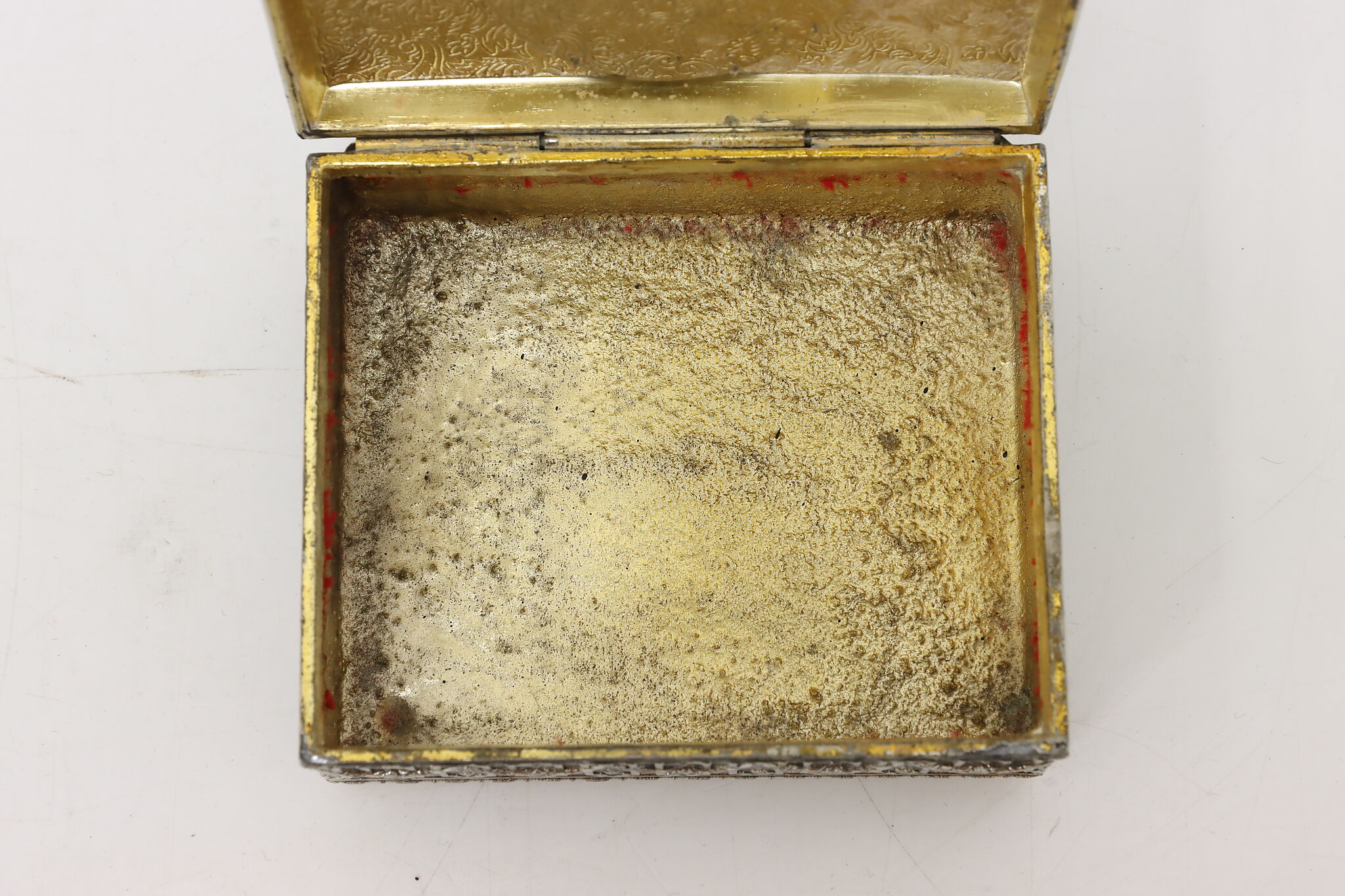 A silverplate jewelry box has a beautiful painted portrait medallion of a young girl after Renoir on its lid.