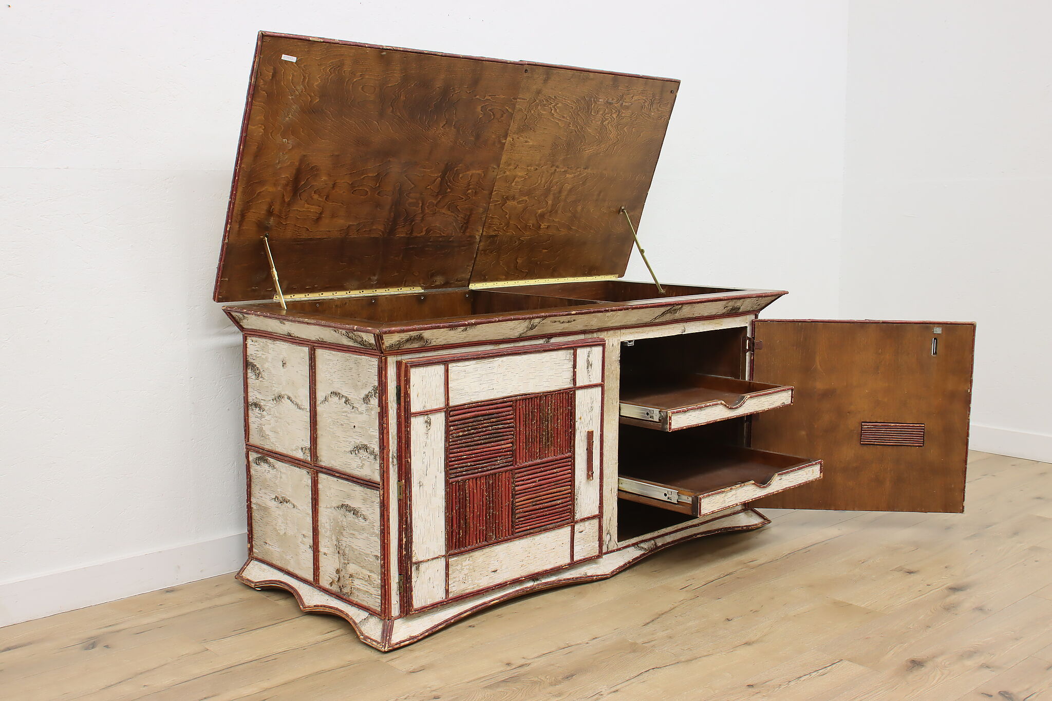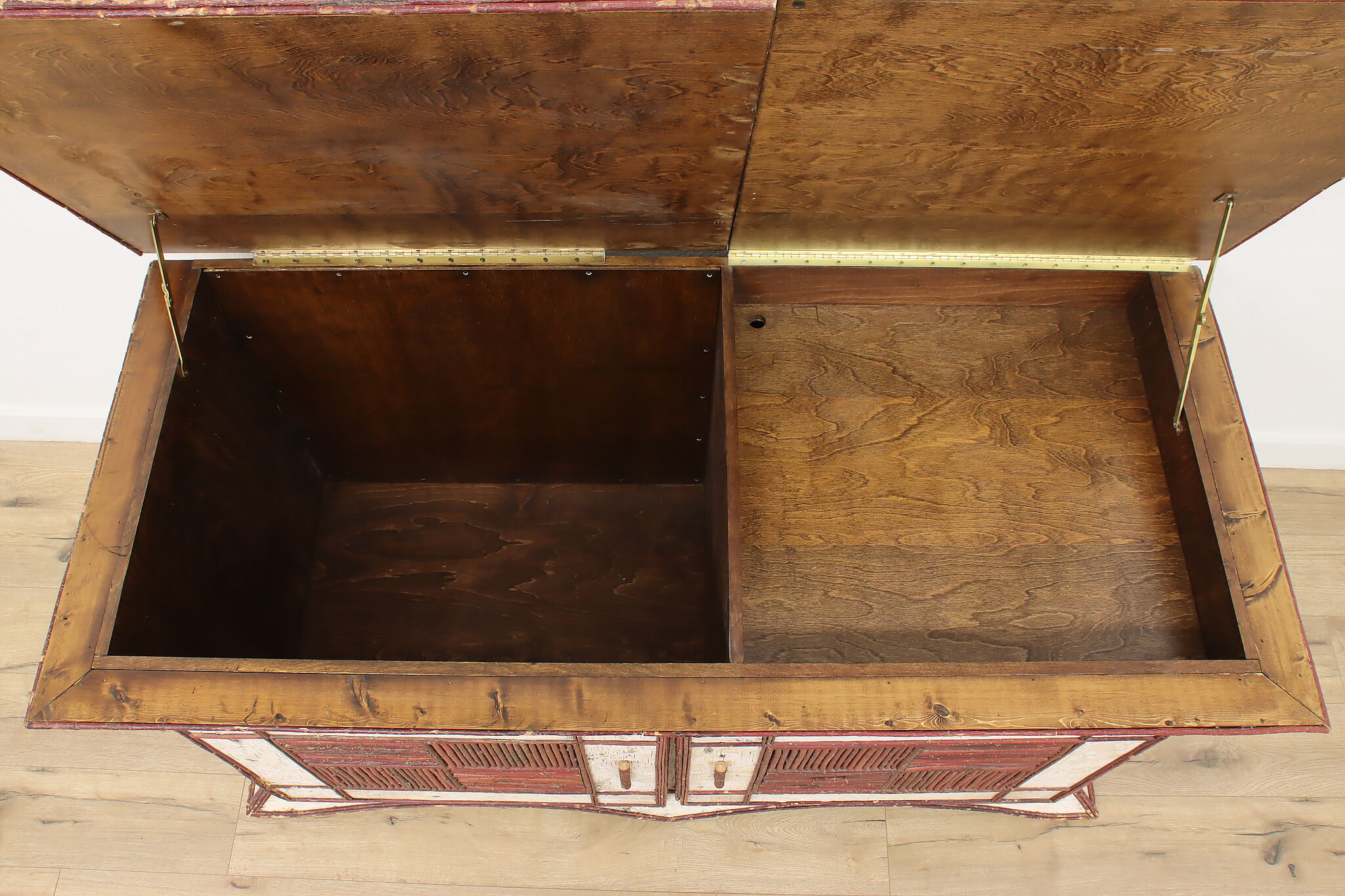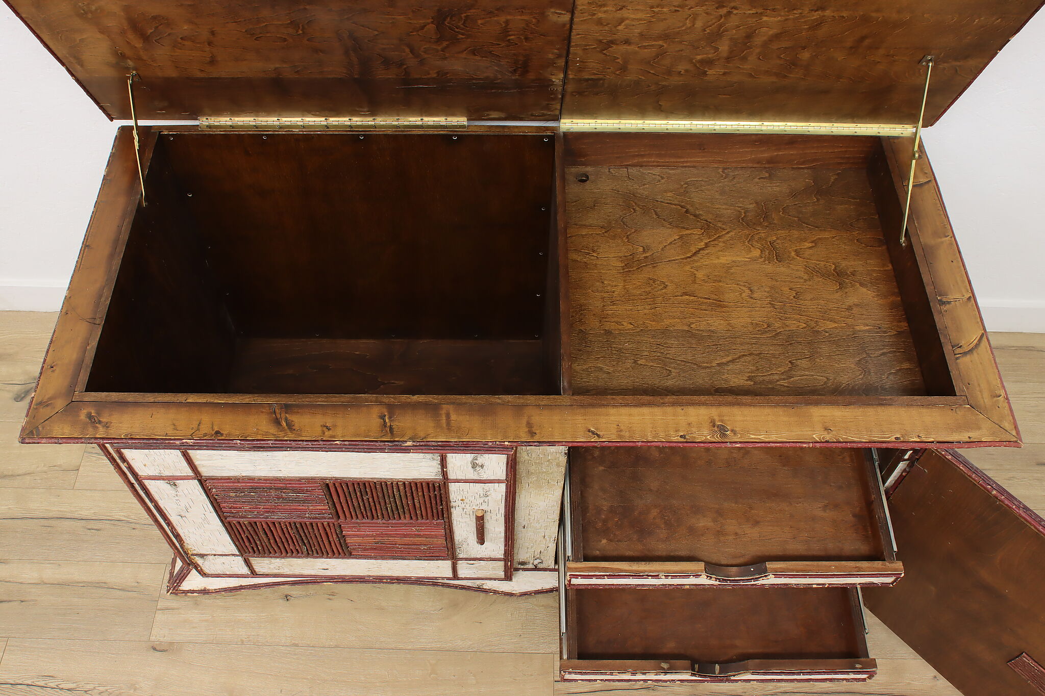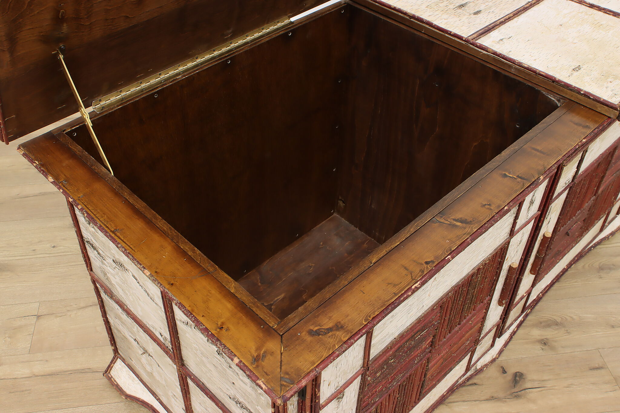 The term "adirondack" means a rustic, natural-material design often found in cabins and lodges. This storage chest or console is a fantastic example of the design and has plenty of storage space for all your needs.