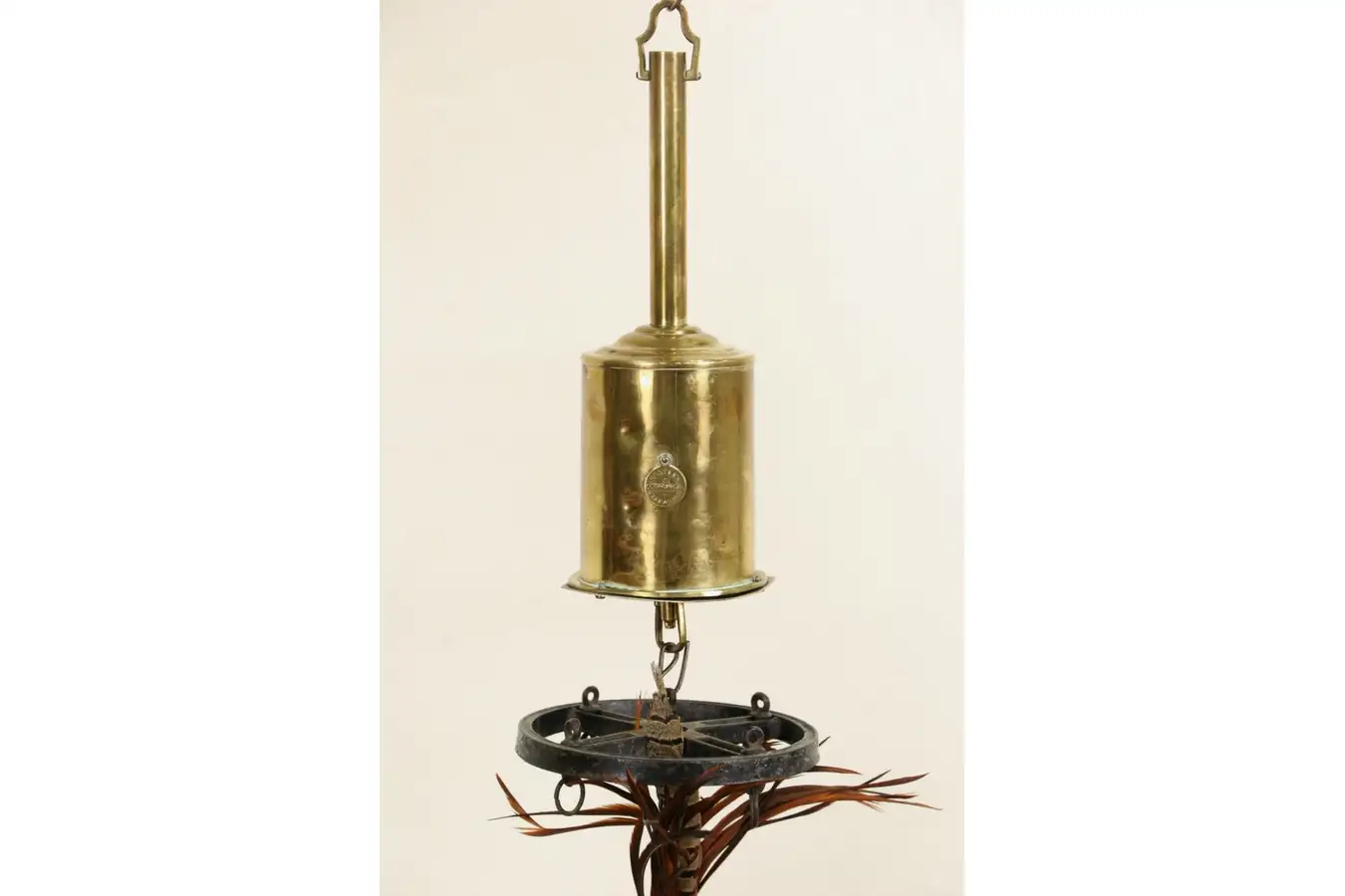 The brass "bottle" shaped motor measures 4 1/2" across and 12" tall, overall height is 16."
