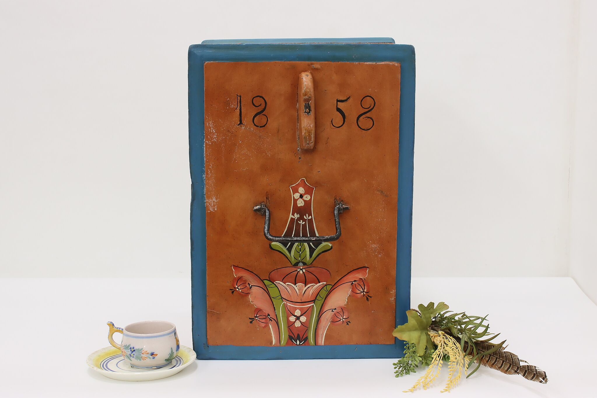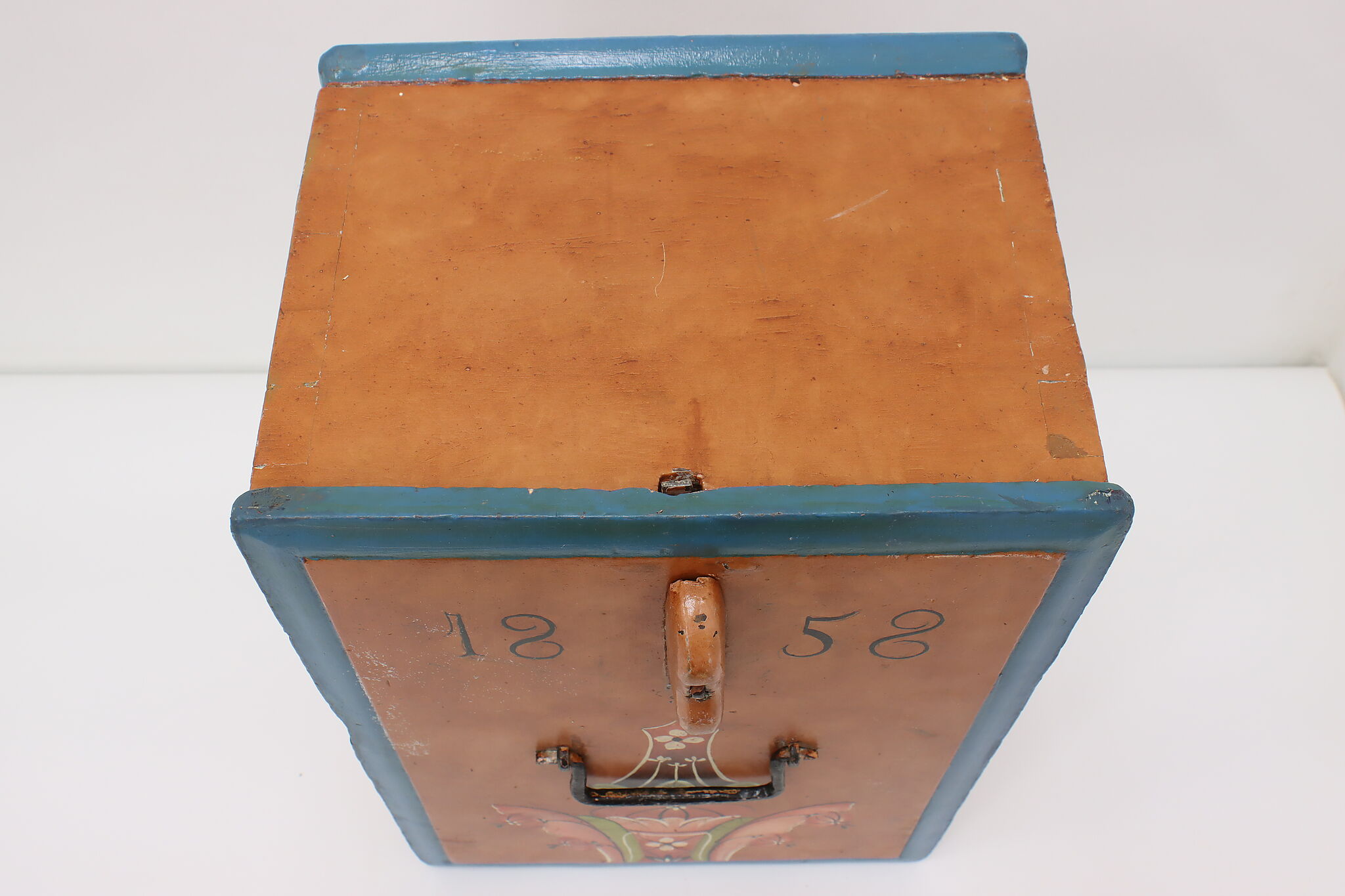 This Scandinavian keepsake chest has beautifully painted flowers with a date of 1858.
