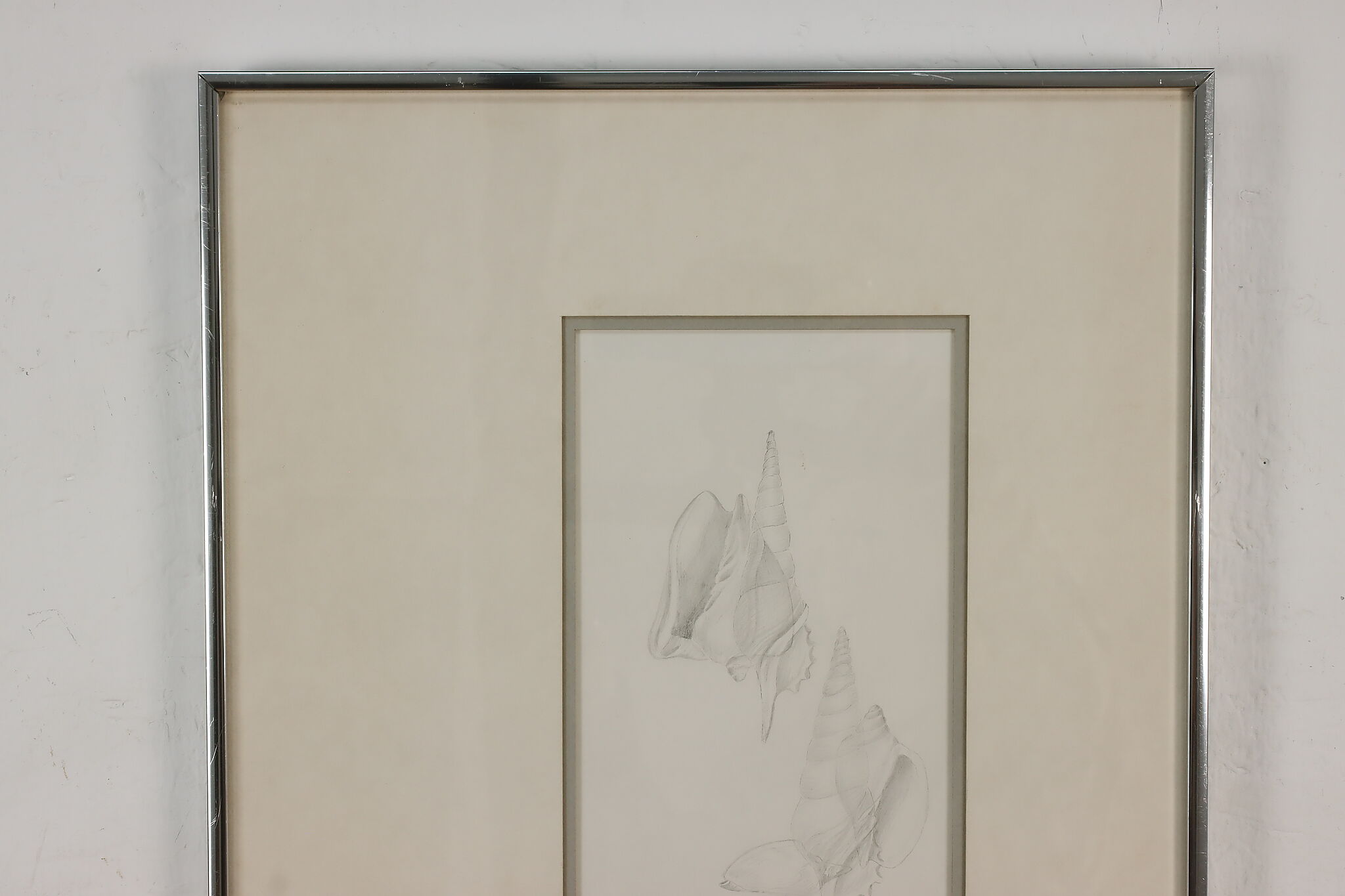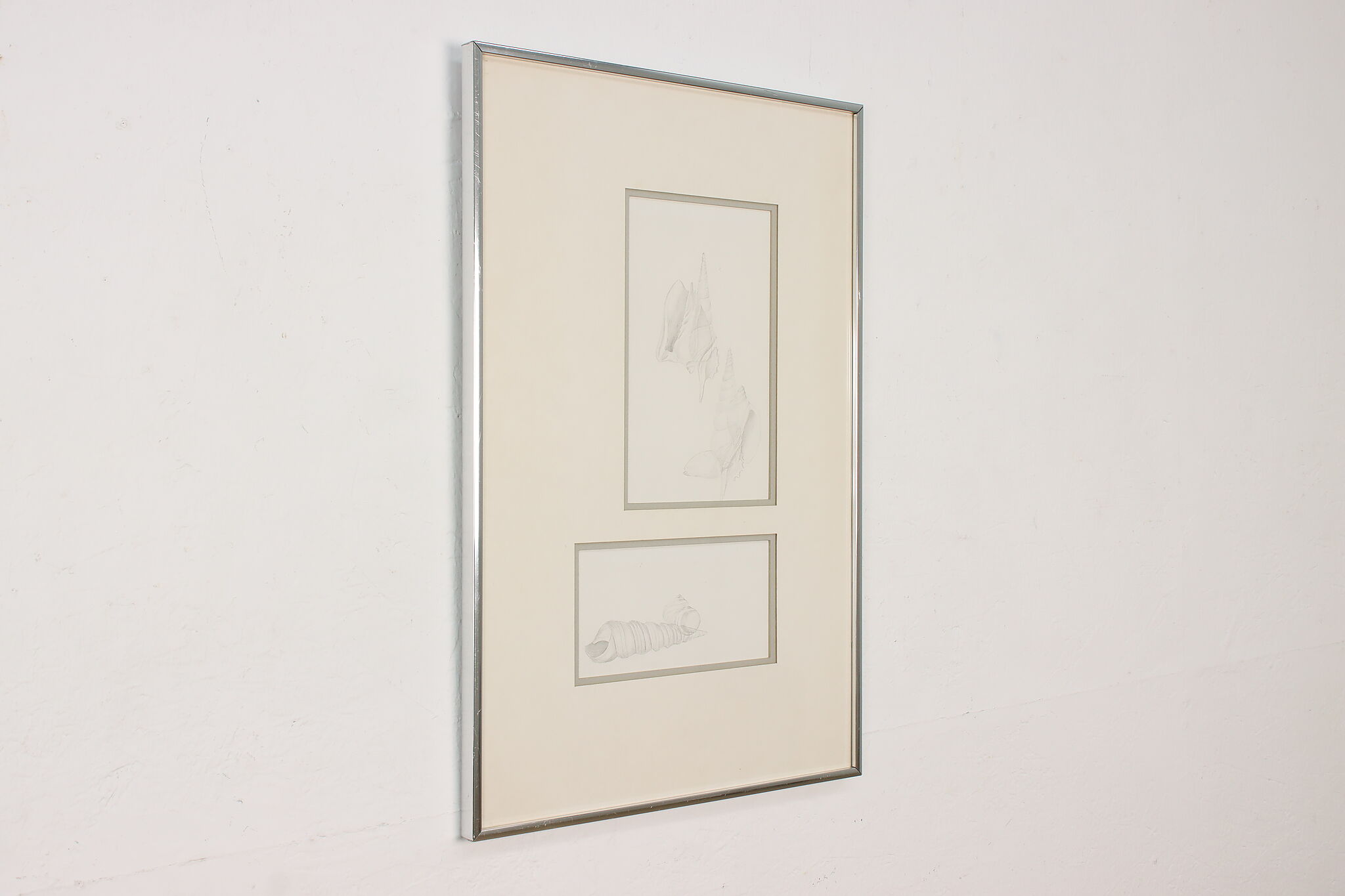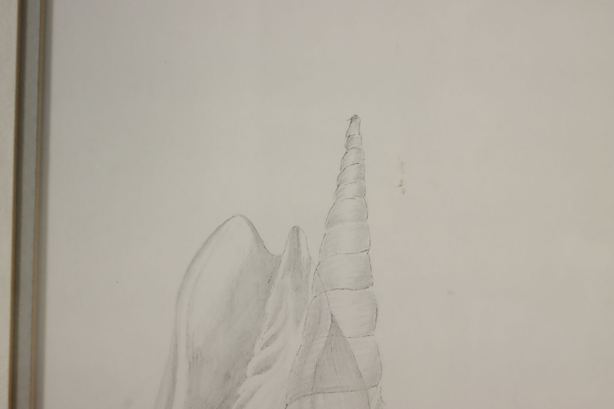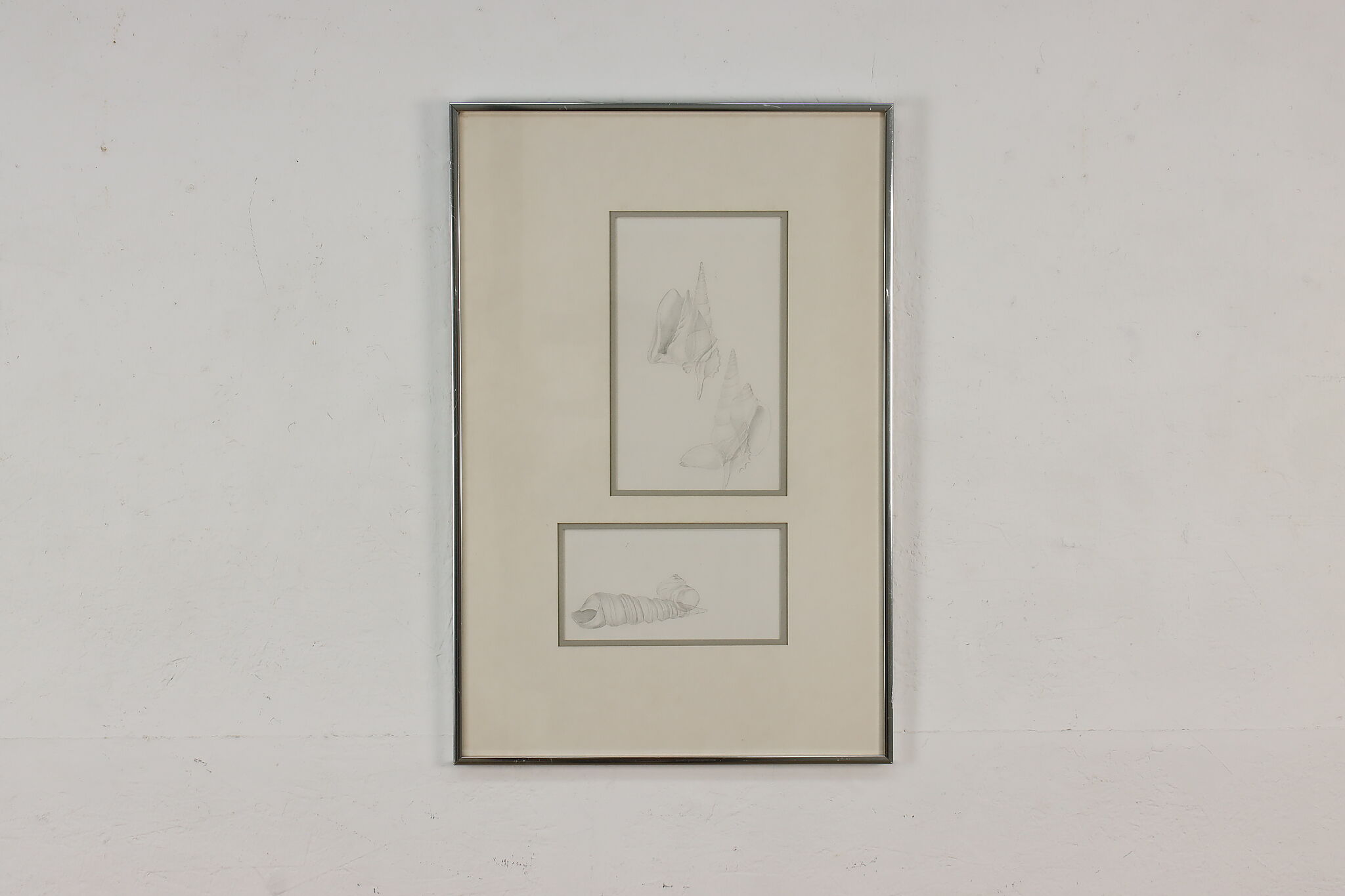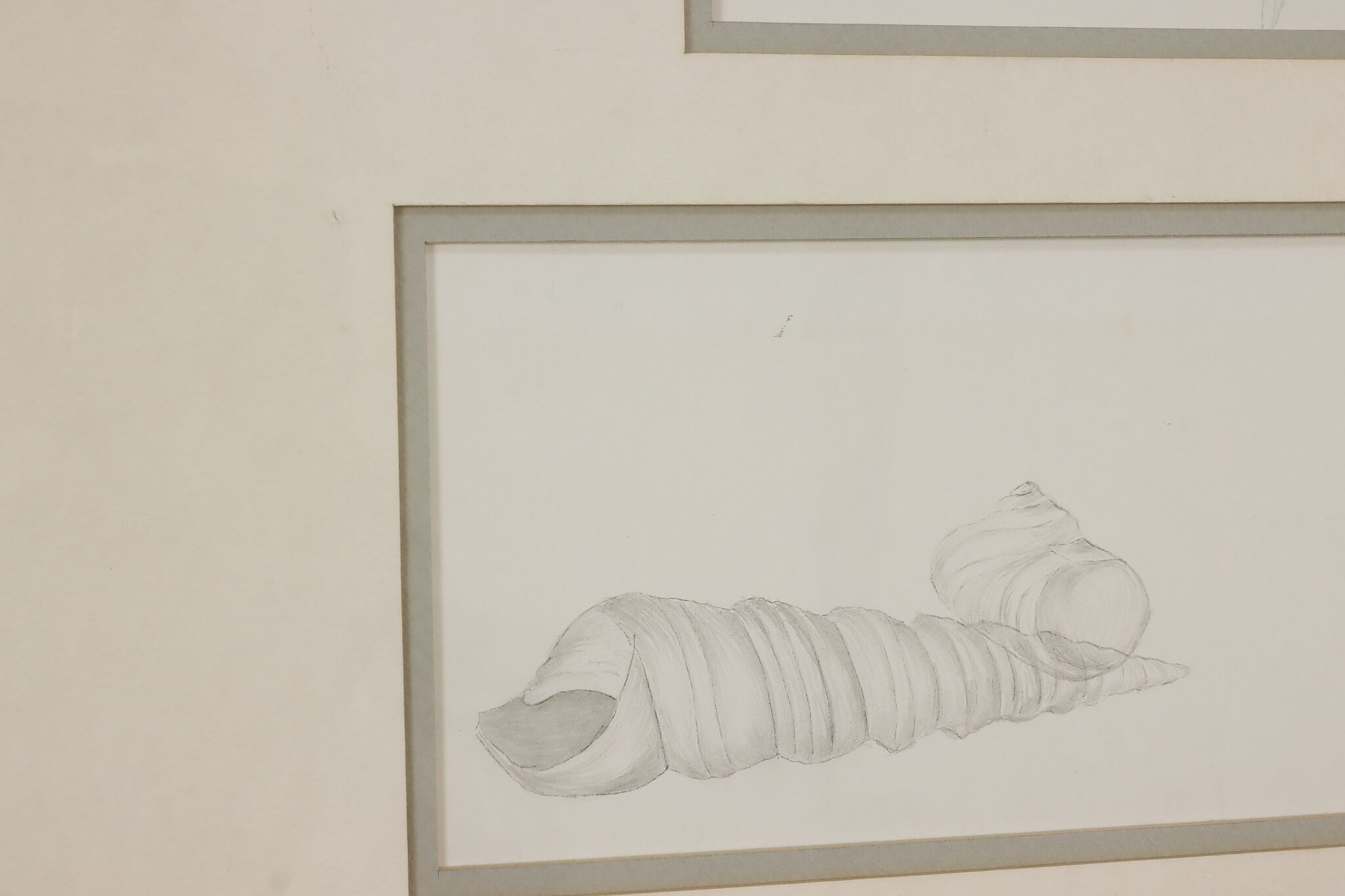 This framed pencil drawings of seashells would be a wonderful addition to a bathroom.