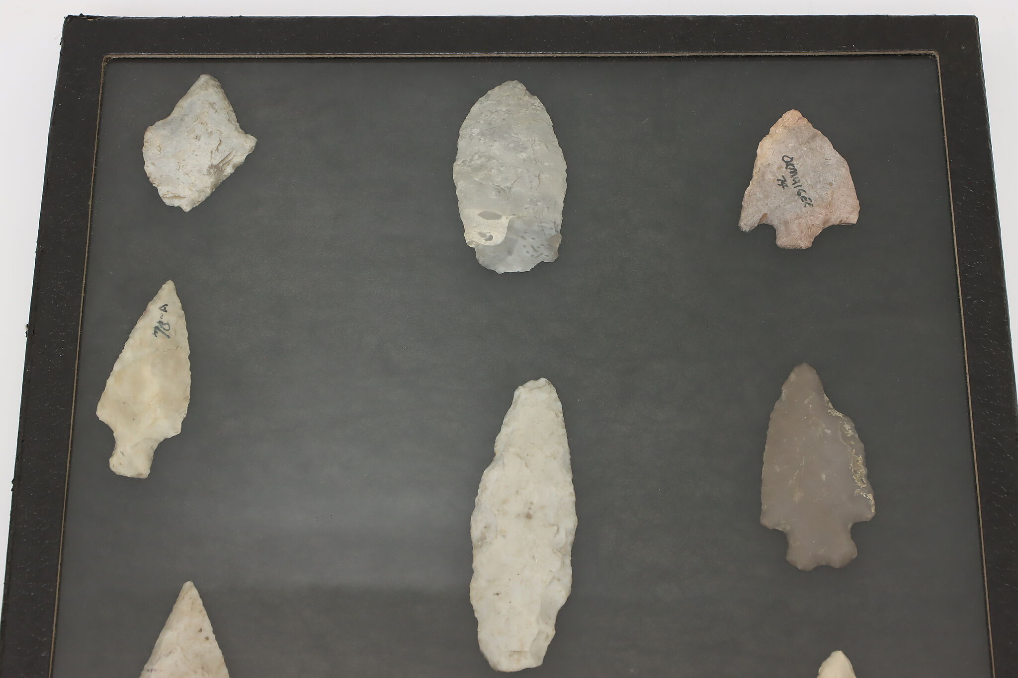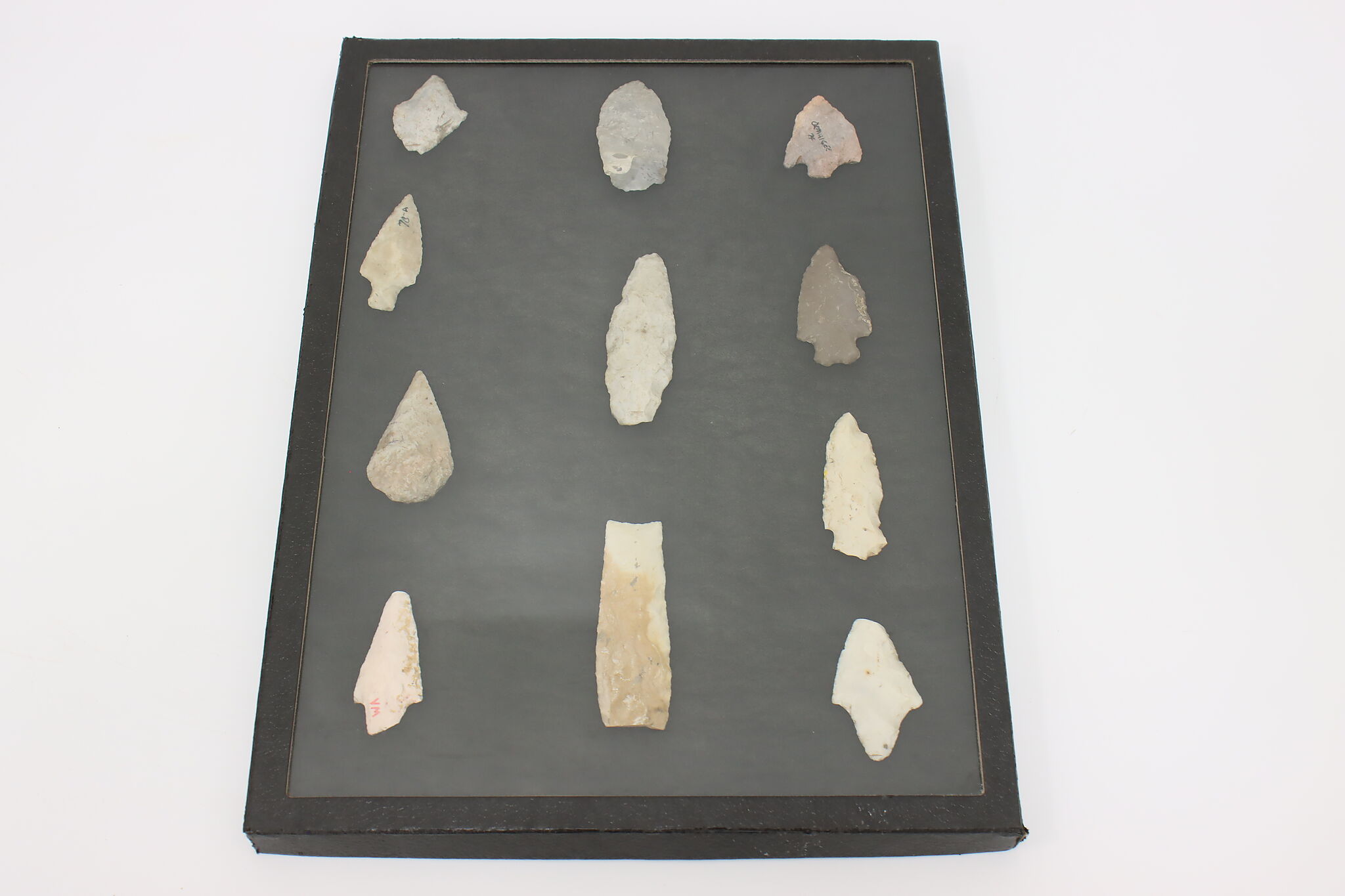 A lovely collection of eleven indigenous arrowheads and stone points make a wonderful gift for a historian.