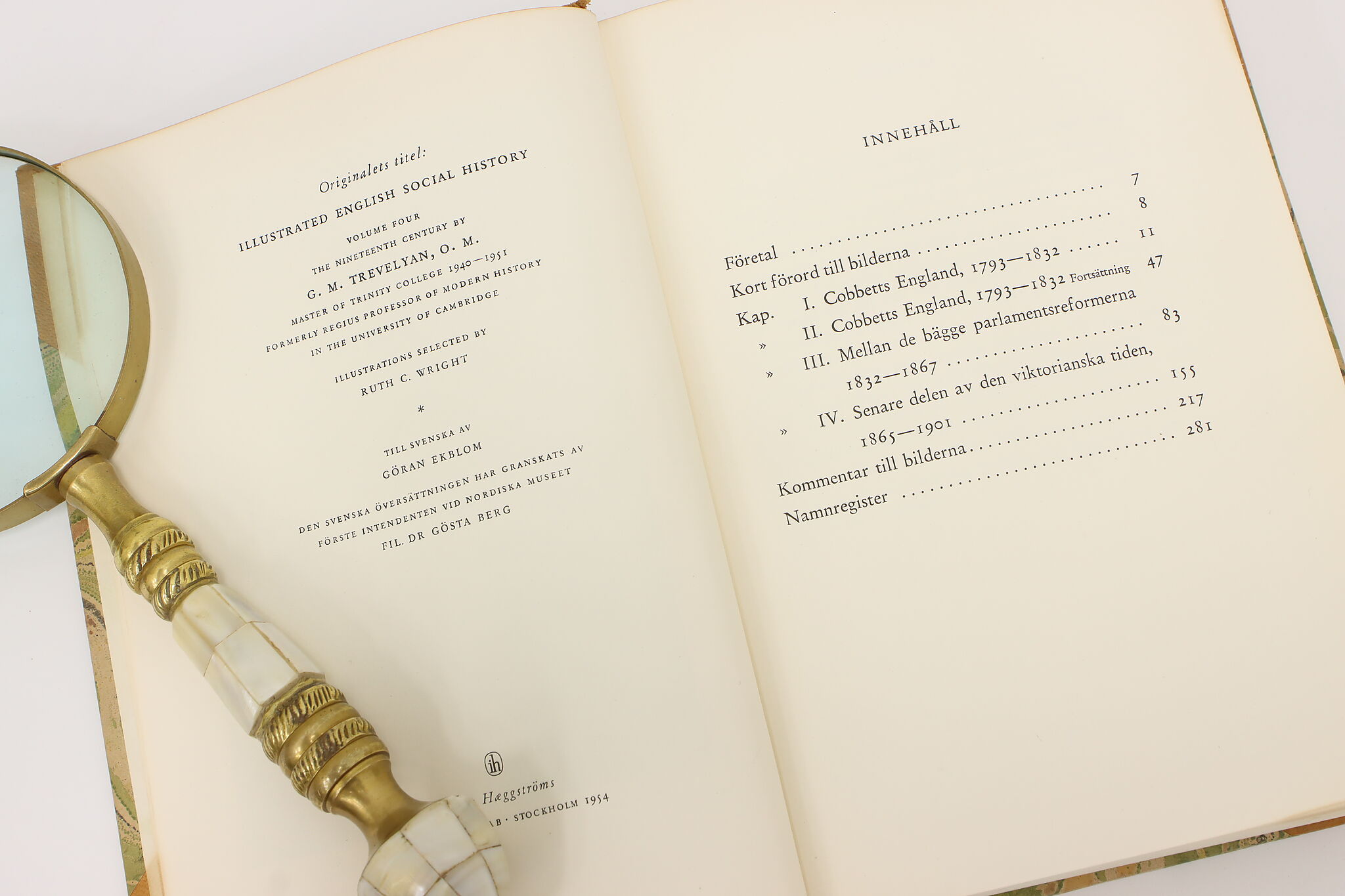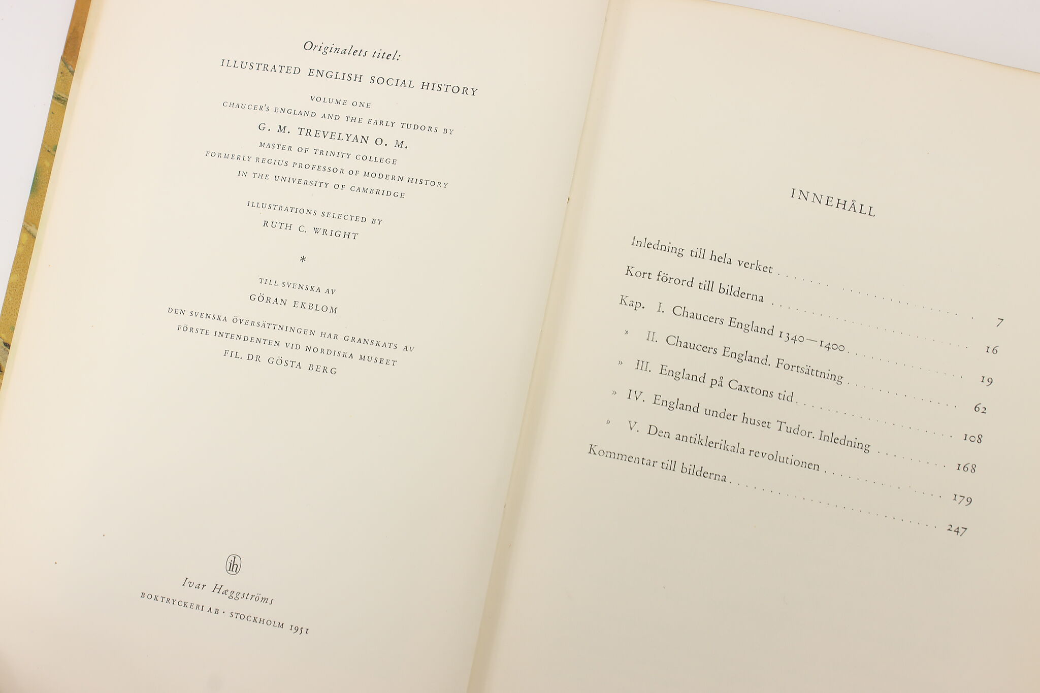 This set of three books are of Professor G. M. Trevelyan's "Illustrated English Social History" translated into Swedish.