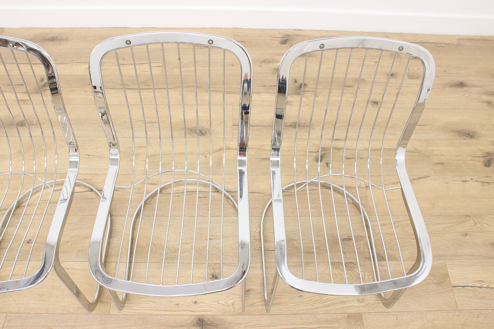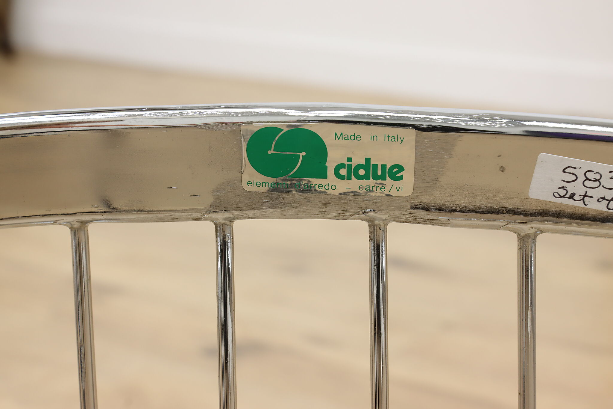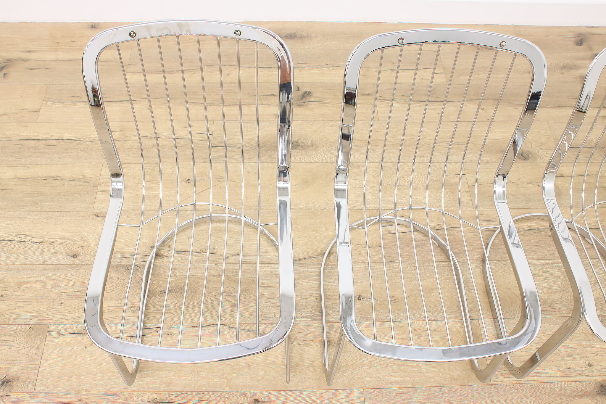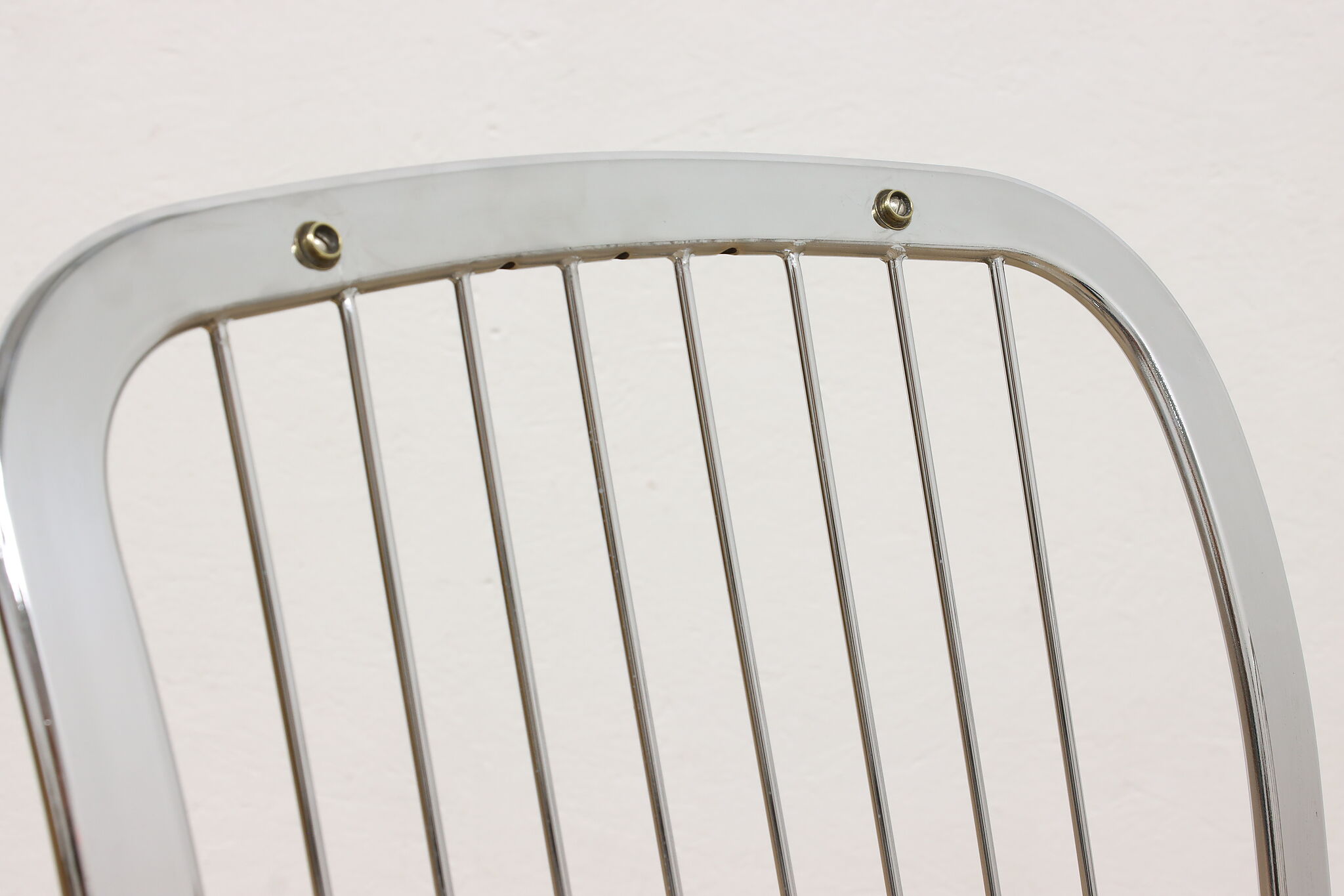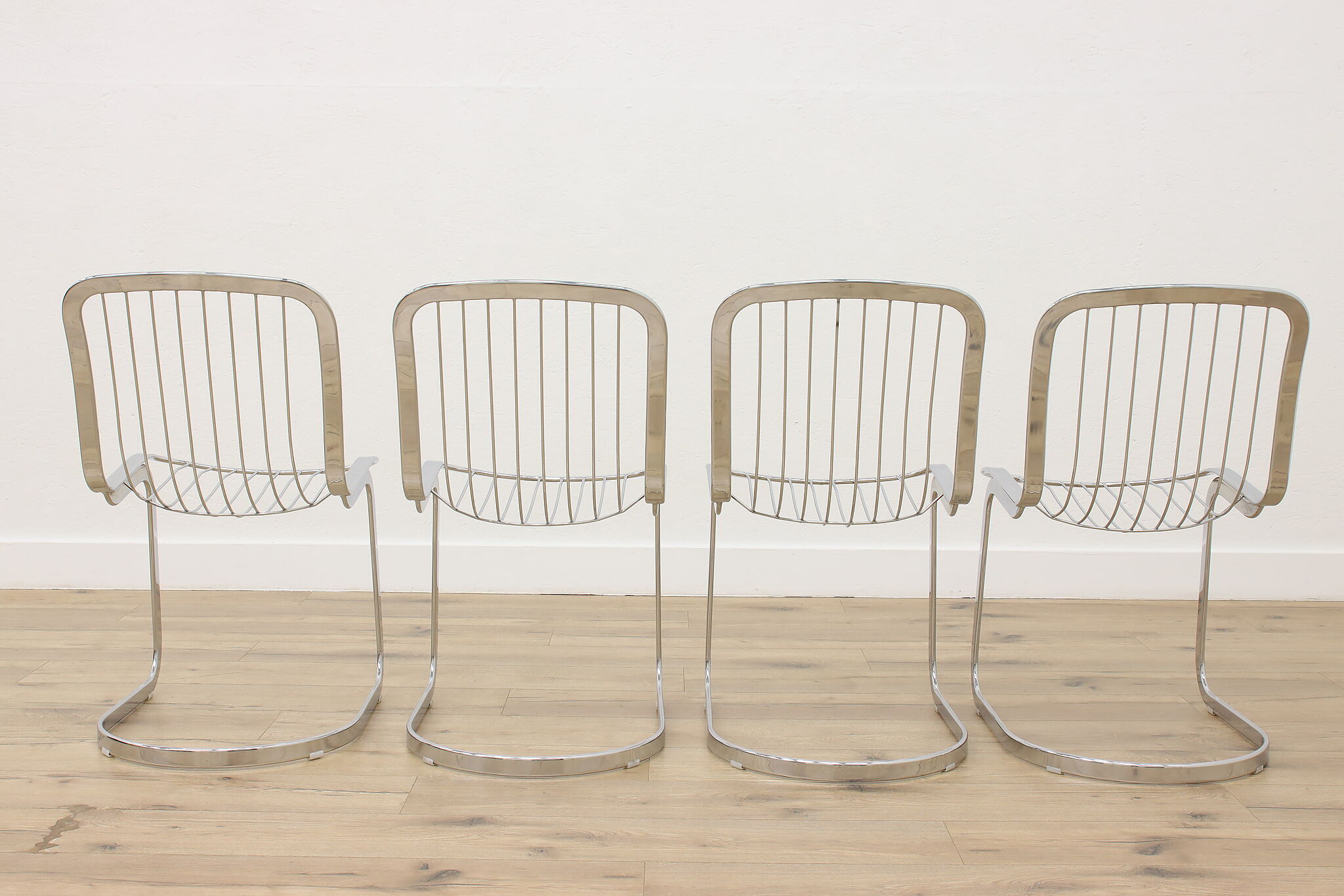 When thinking of the Midcentury Modern period, most people picture gleaming wood credenzas and open bookcases. However, the period also produced chrome pieces with different fabrics to create visual contrast. This set of four Italian chairs includes suede cloth and worn suede leather upholstery options for you to choose which one best fits your space!